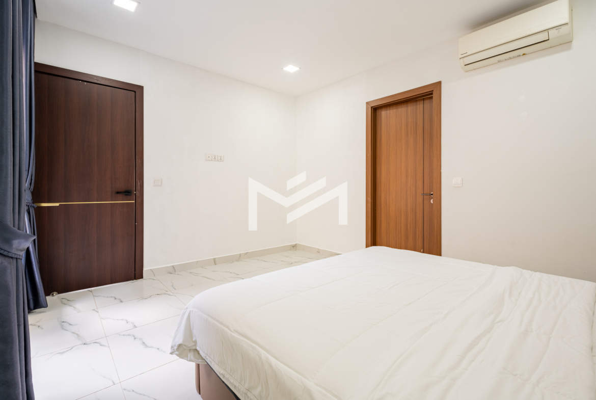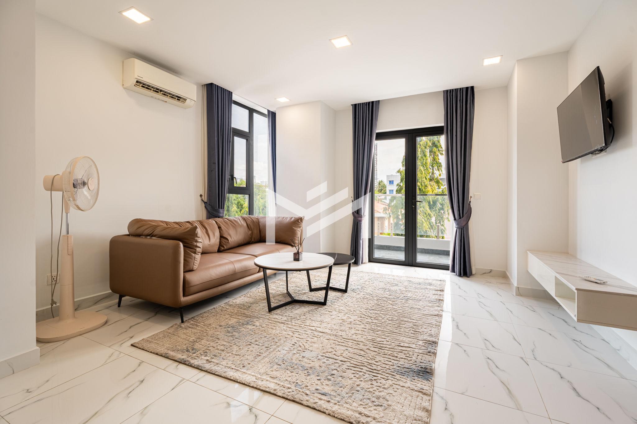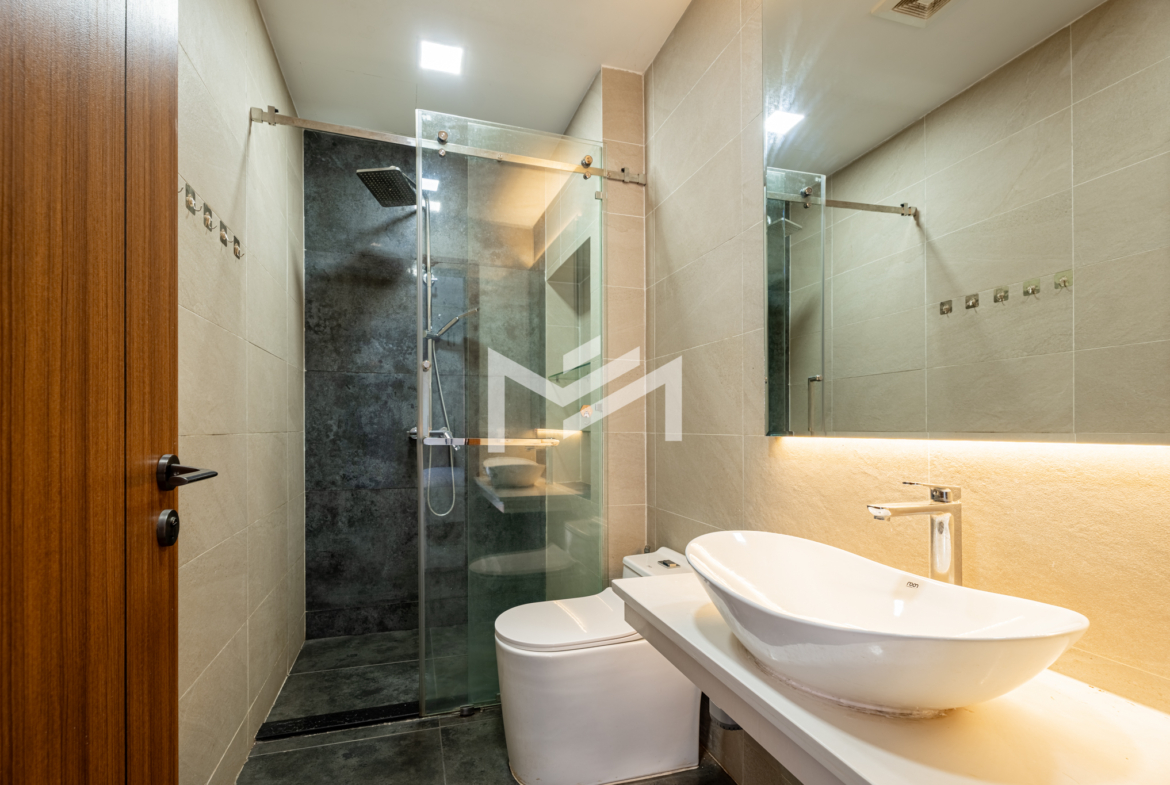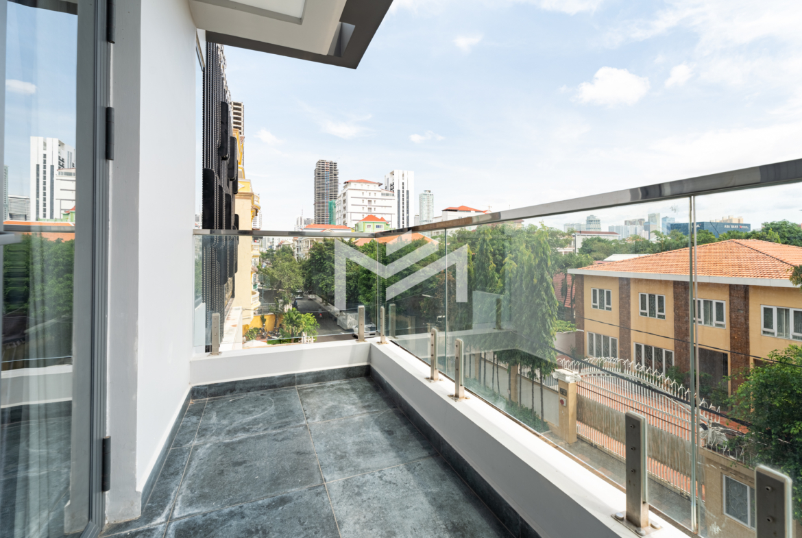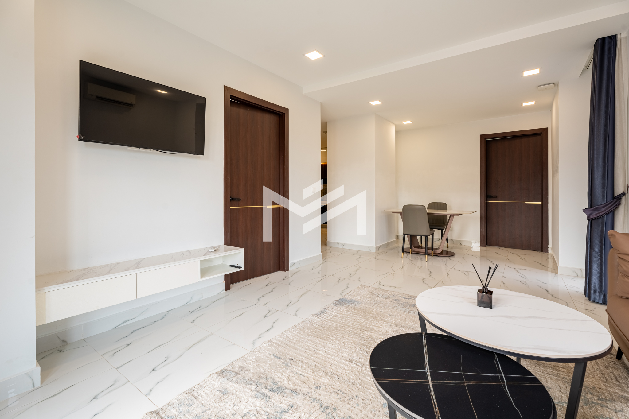 Modern design with an open living space and balcony. The kitchen comes fully equipped with a built-in oven. Large windows throughout the unit bring in plenty of natural light. Residents can enjoy access to a rooftop swimming pool, 24-hour security, and cleaning service. Located just south of BKK1 (about a 5-minute drive), this apartment offers great value — an ideal choice for singles or small families seeking a comfortable, modern home at a more economical price compared to the main expat area.