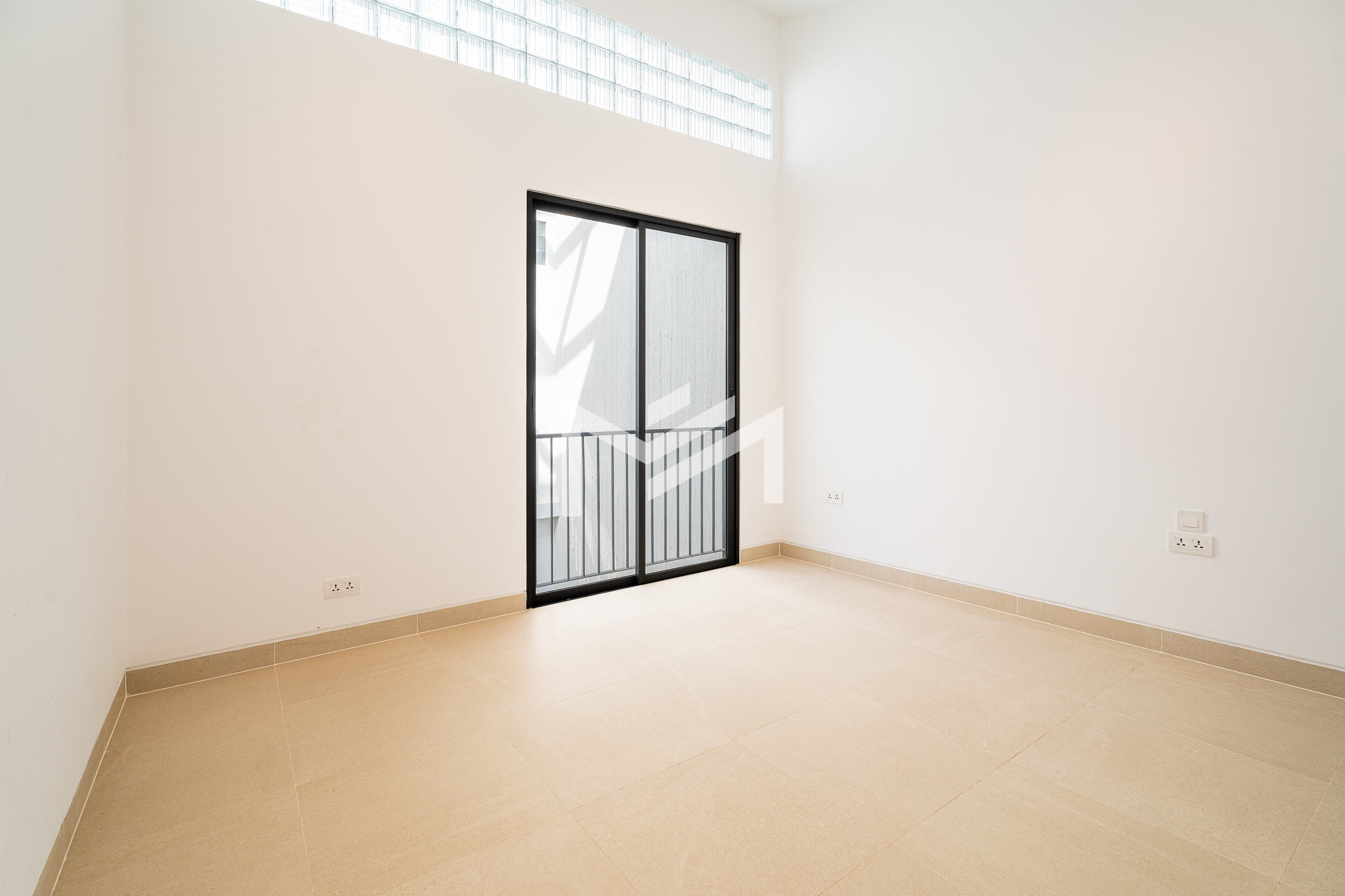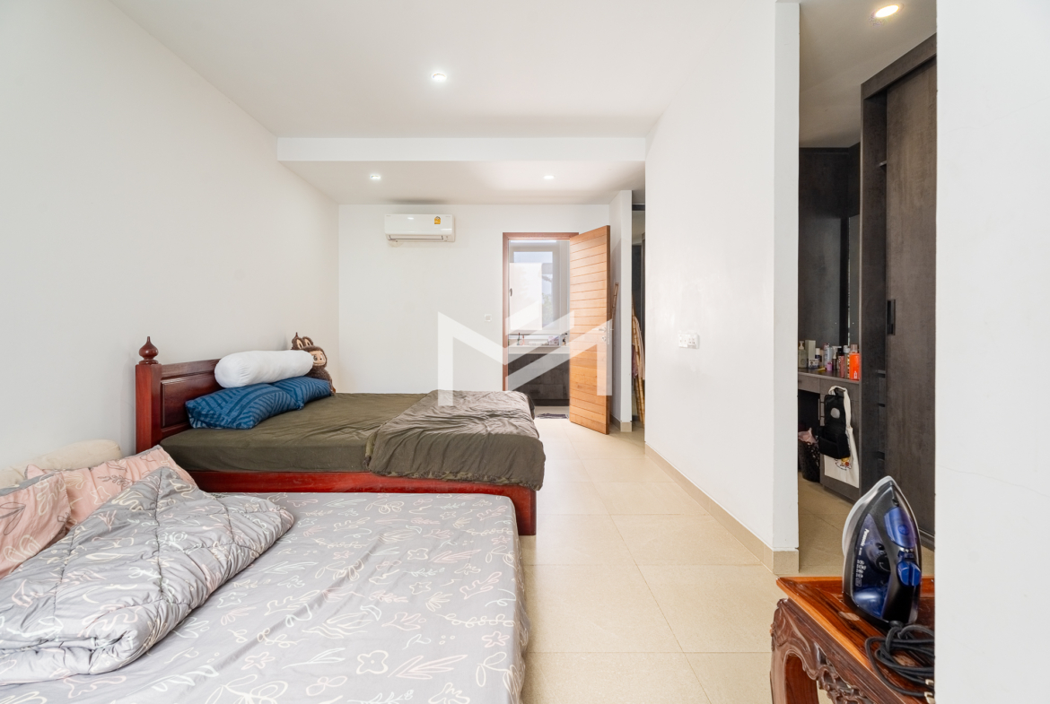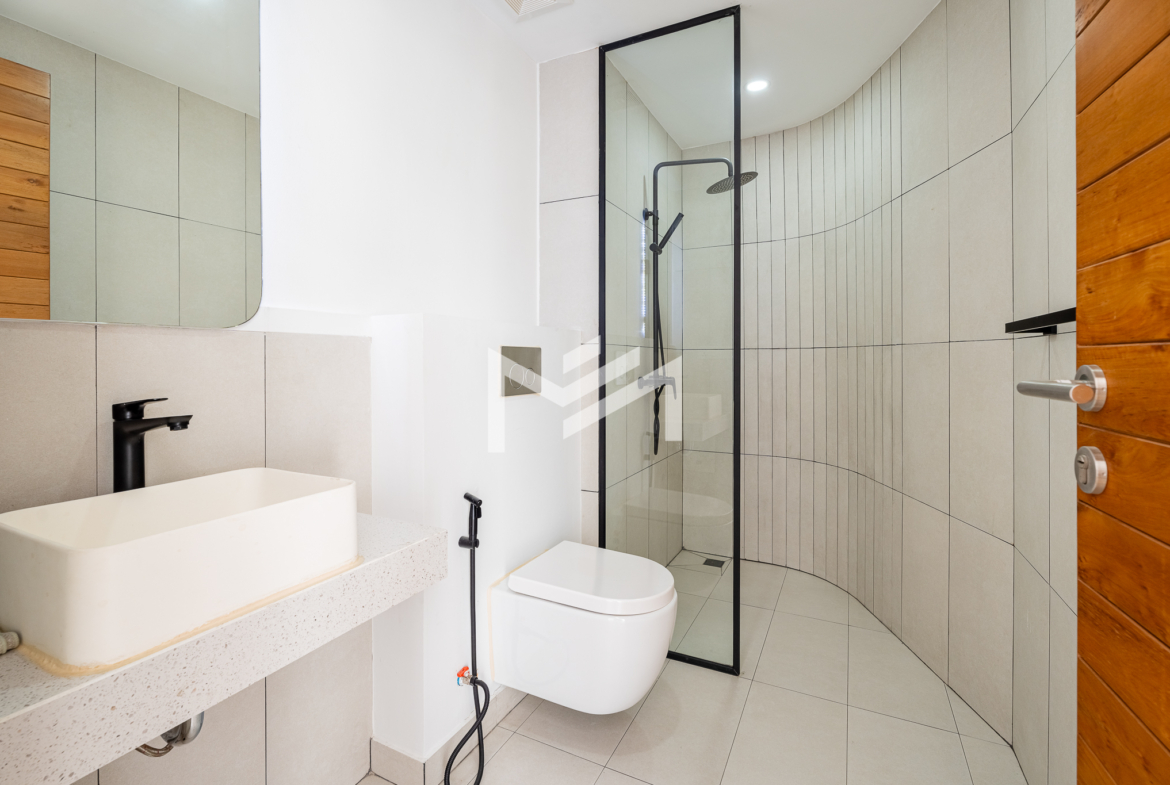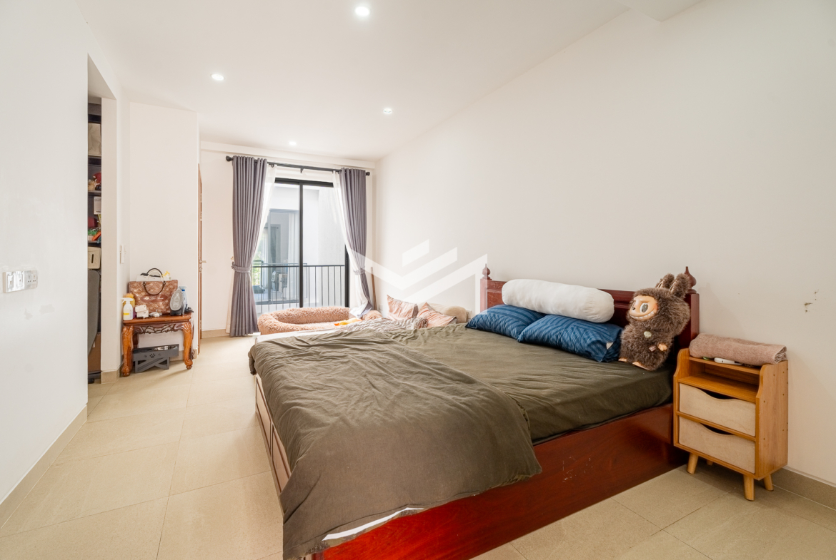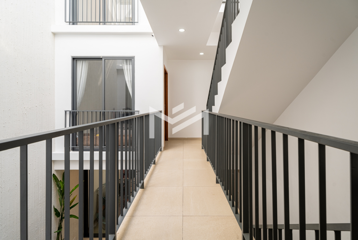 This modern link villa is built with high construction quality and a thoughtful layout across three floors, offering generous space and comfort for modern family living. The property features high ceilings and large windows, allowing abundant natural light throughout the house. The villa includes a western-style kitchen, a private backyard, and the convenience of parking one car inside the gate. Designed for both practicality and lifestyle, the layout balances openness with privacy. Located in a peaceful residential area of Veal Sbov, the home offers a quiet living environment while remaining highly accessible—approximately 15 minutes’ drive to the city. The property comes with a hard title (L-Map), making it suitable for both end-users and long-term investors. An excellent option for those seeking a modern home close to Phnom Penh, with quality construction, natural light, and strong ownership security.