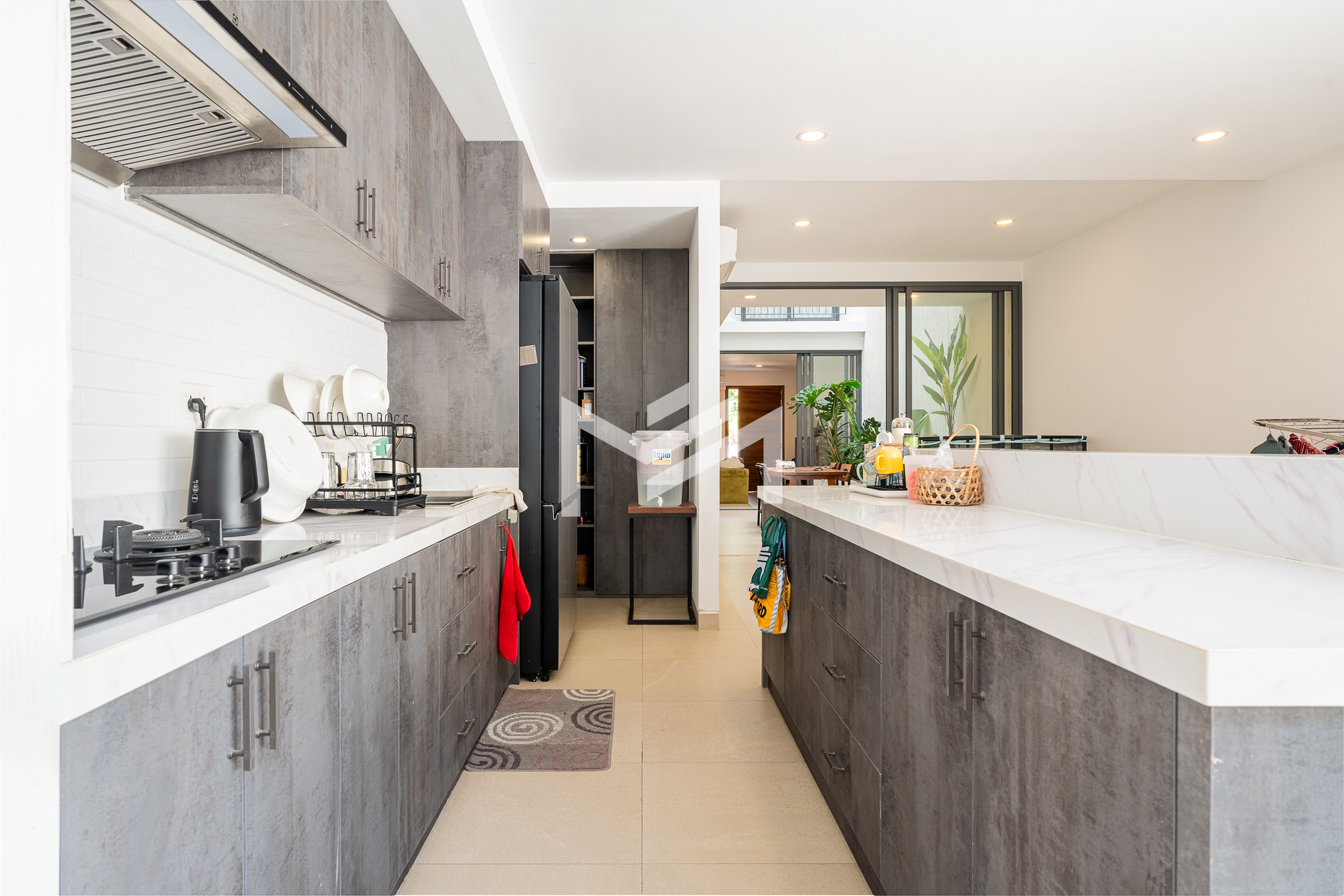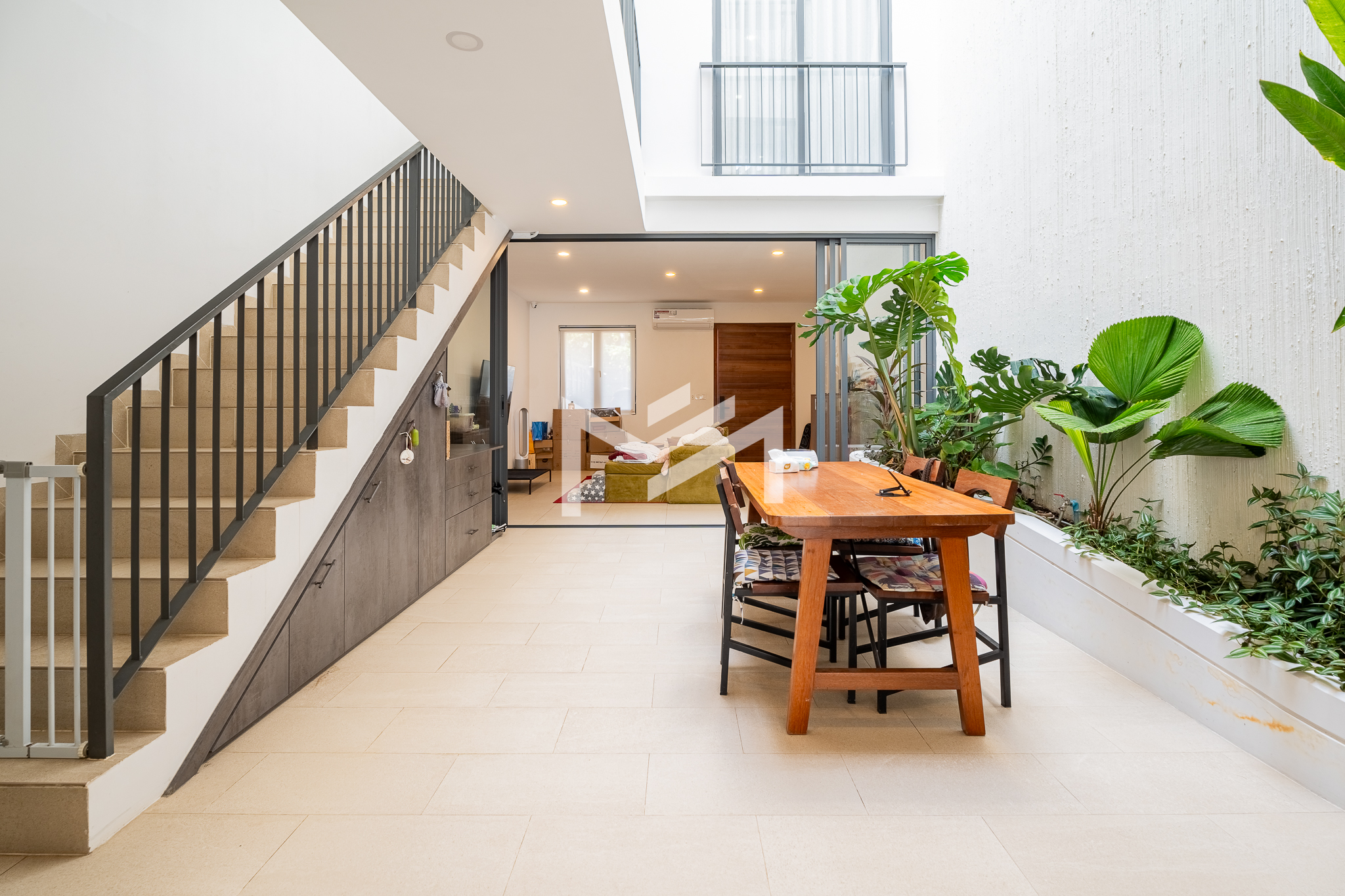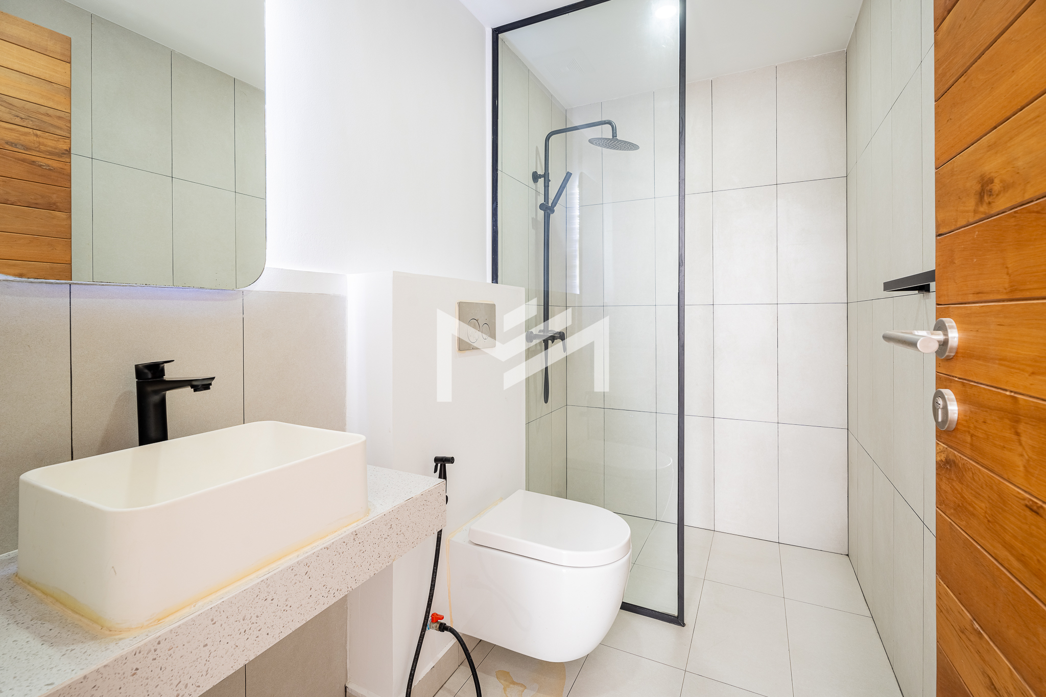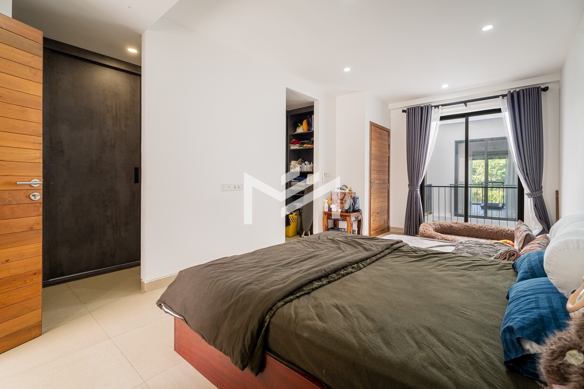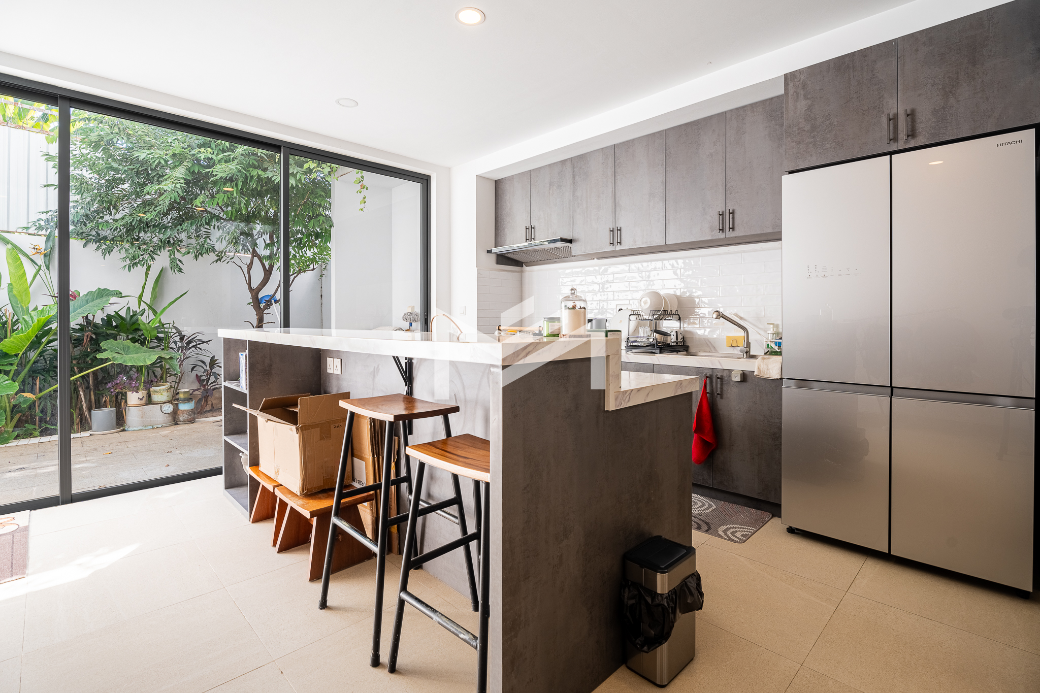 This modern link villa is built with high construction quality and a thoughtful layout across three floors, offering generous space and comfort for modern family living. The property features high ceilings and large windows, allowing abundant natural light throughout the house. The villa includes a western-style kitchen, a private backyard, and the convenience of parking one car inside the gate. Designed for both practicality and lifestyle, the layout balances openness with privacy. Located in a peaceful residential area of Veal Sbov, the home offers a quiet living environment while remaining highly accessible—approximately 15 minutes’ drive to the city. The property comes with a hard title (L-Map), making it suitable for both end-users and long-term investors. An excellent option for those seeking a modern home close to Phnom Penh, with quality construction, natural light, and strong ownership security.