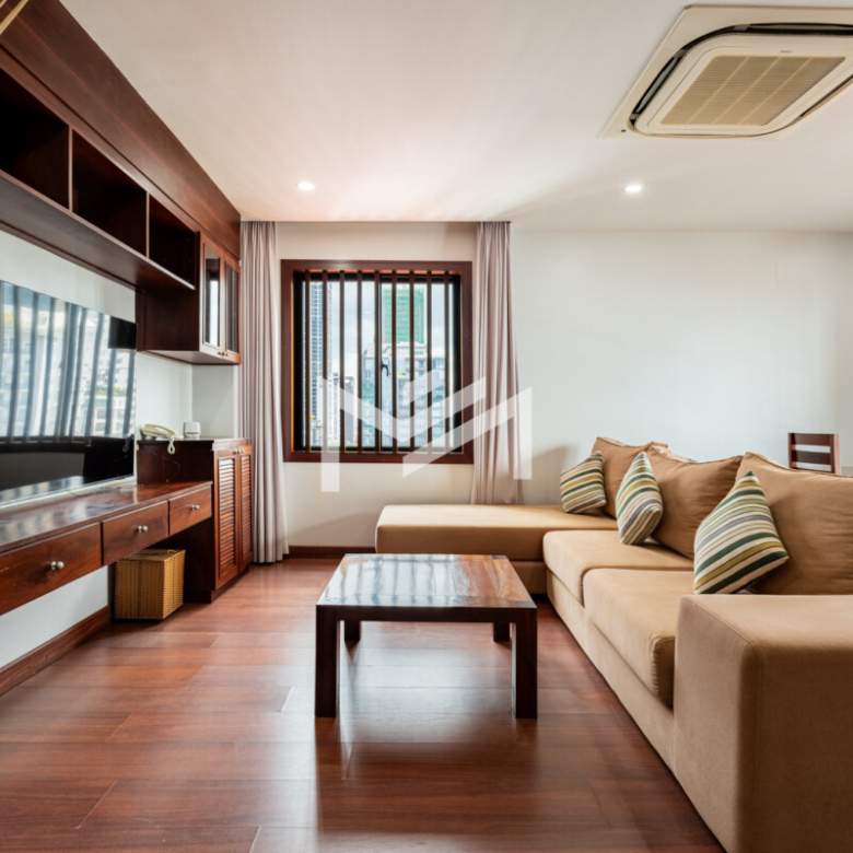 Centrally located in BKK1, this fully equipped serviced apartment features wooden floors, a cozy living room, and bedrooms with decent-sized closets. Residents can enjoy a rooftop swimming pool with stunning views over the BKK1 area. Ready to move in—just bring your luggage.