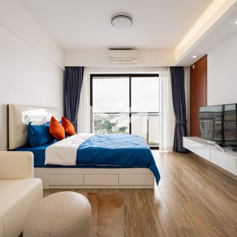 This charming studio features nice flooring and bright, warm-toned furniture, creating a welcoming atmosphere filled with natural light and refreshing airflow. From your bedroom, enjoy a serene view of the Mekong River. Compact yet practical, it offers a truly peaceful home in the quiet Chroy Changvar neighborhood—just 15 minutes from the CBD. Perfect for a single professional or couple seeking affordable living with full amenities and stunning river views.
