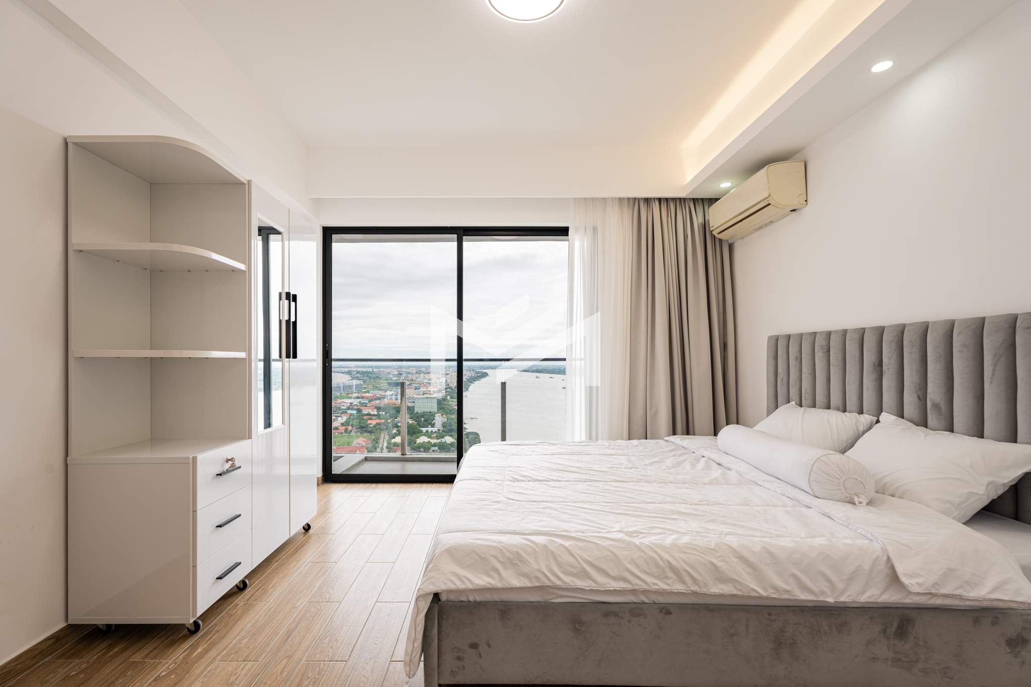 Beautiful 2-Bedroom High-Floor Unit with Stunning Mekong Views. Designed in a clean minimalist style and fitted with brand-new furniture, this bright home enjoys abundant natural light and excellent airflow. Fully furnished and move-in ready, it’s ideal for a single professional, couple, or small family seeking a peaceful and green environment. Residents can enjoy modern amenities including a gym and swimming pool, all within just 15 minutes of the CBD.