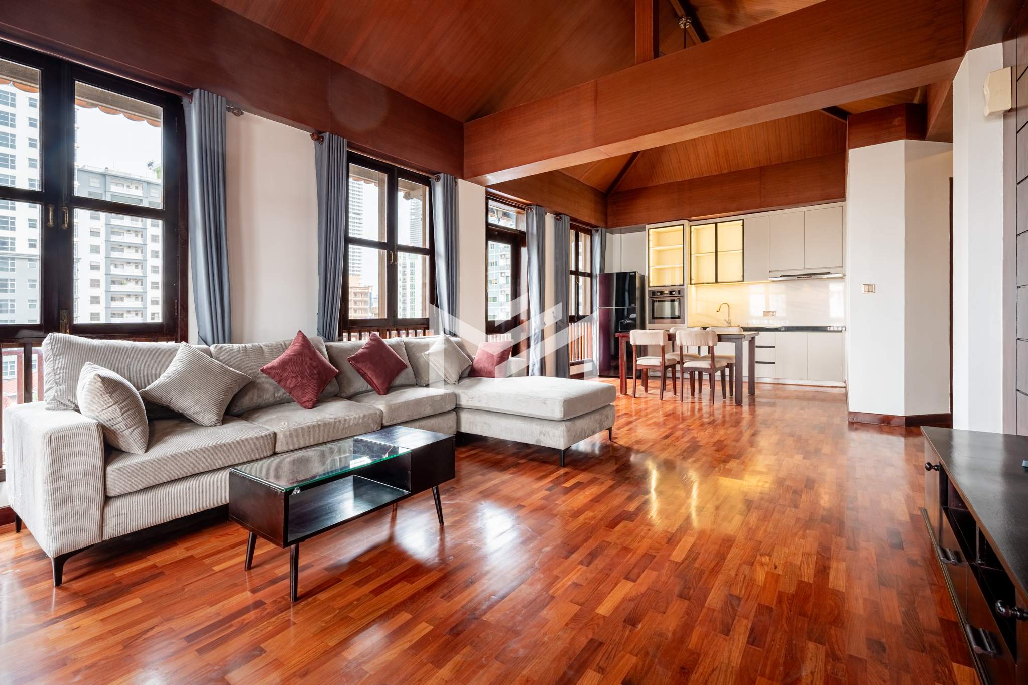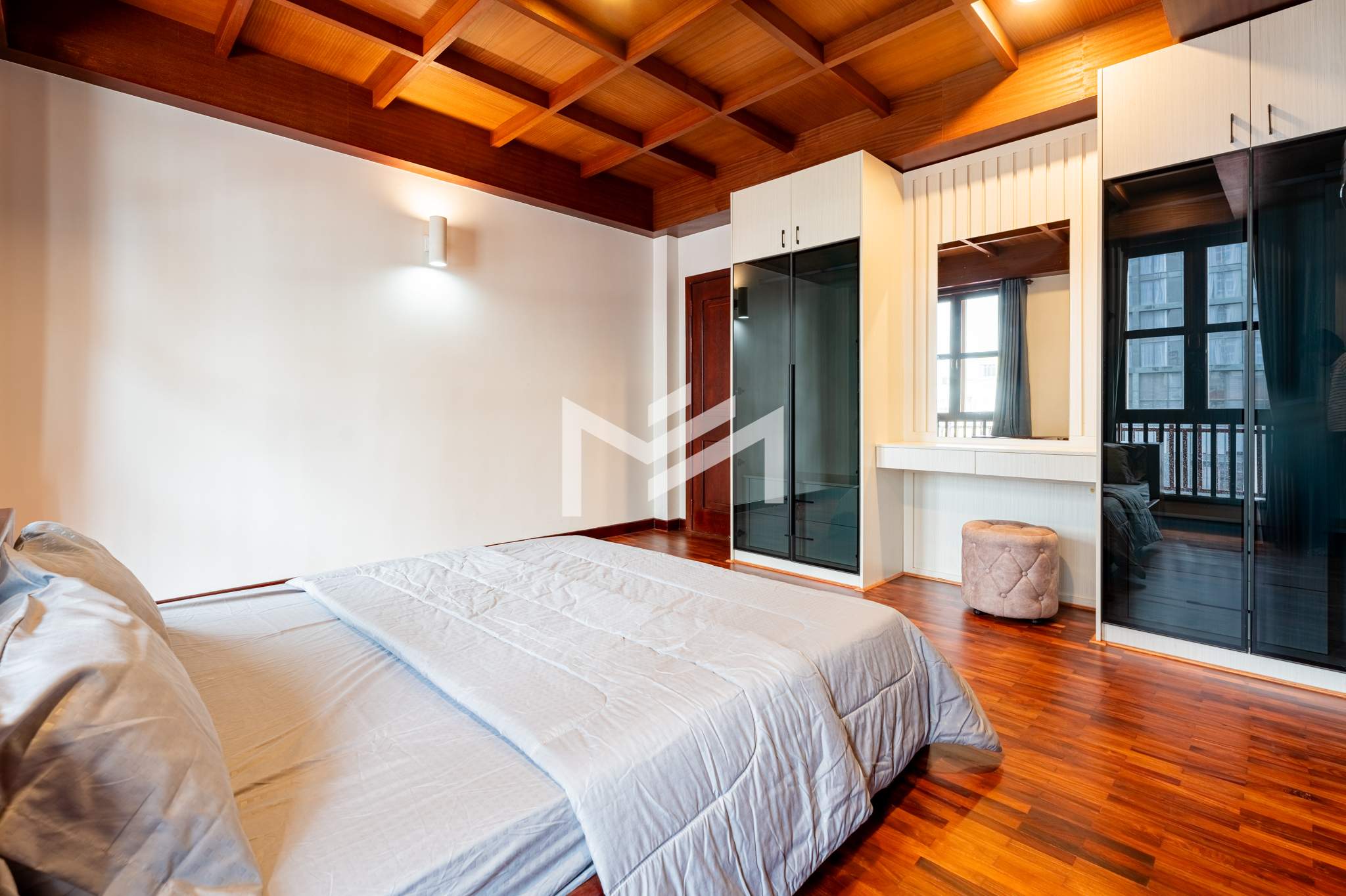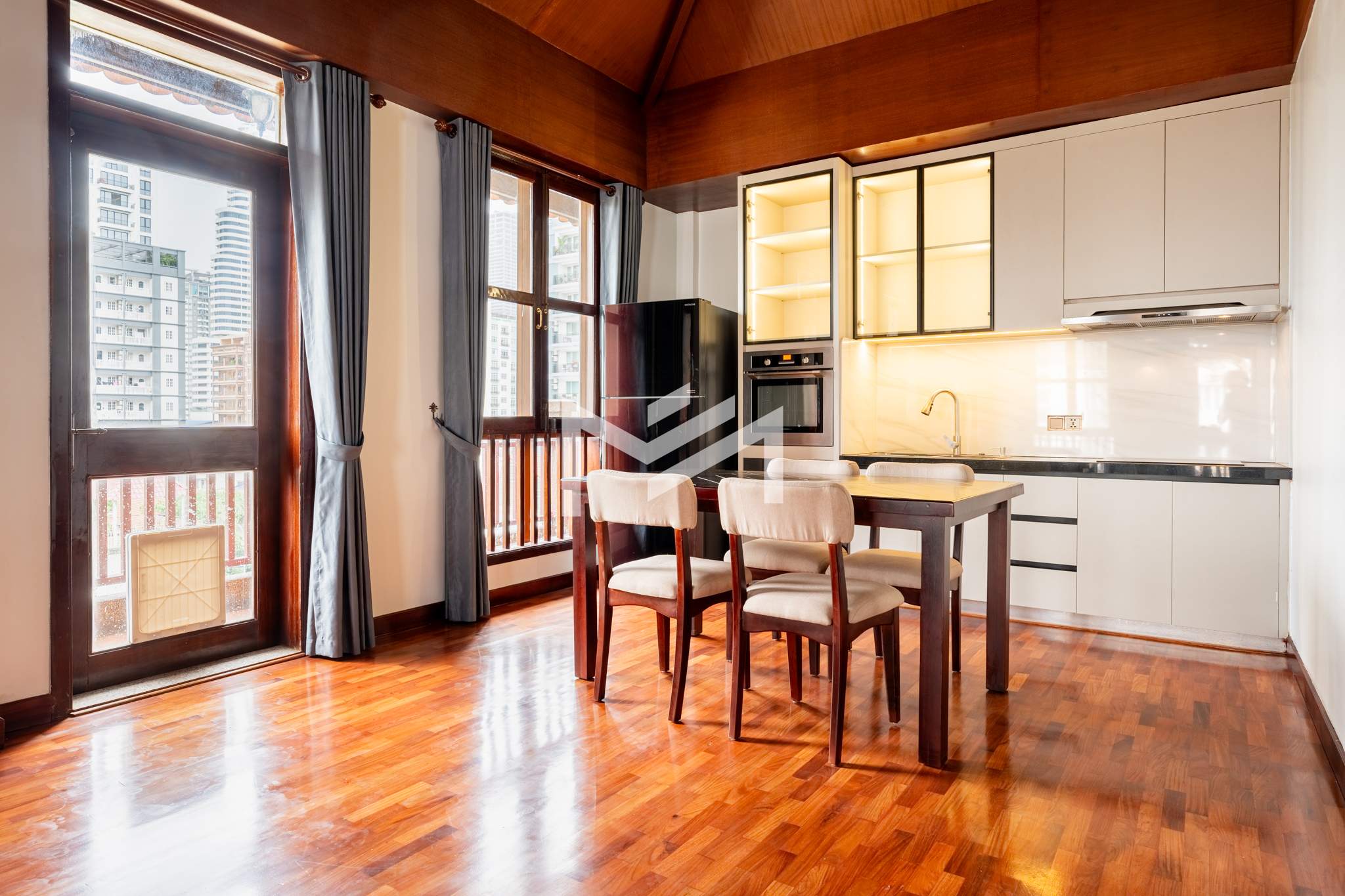 Spacious penthouse on the top floor of a low-rise residential building with only 6 floors. Featuring elegant wooden flooring, a large kitchen with built-in oven, and wide glass windows that fill the home with natural light. The residence offers a generously sized bedroom with a big closet and a modern bathroom complete with both overhead shower and bathtub.