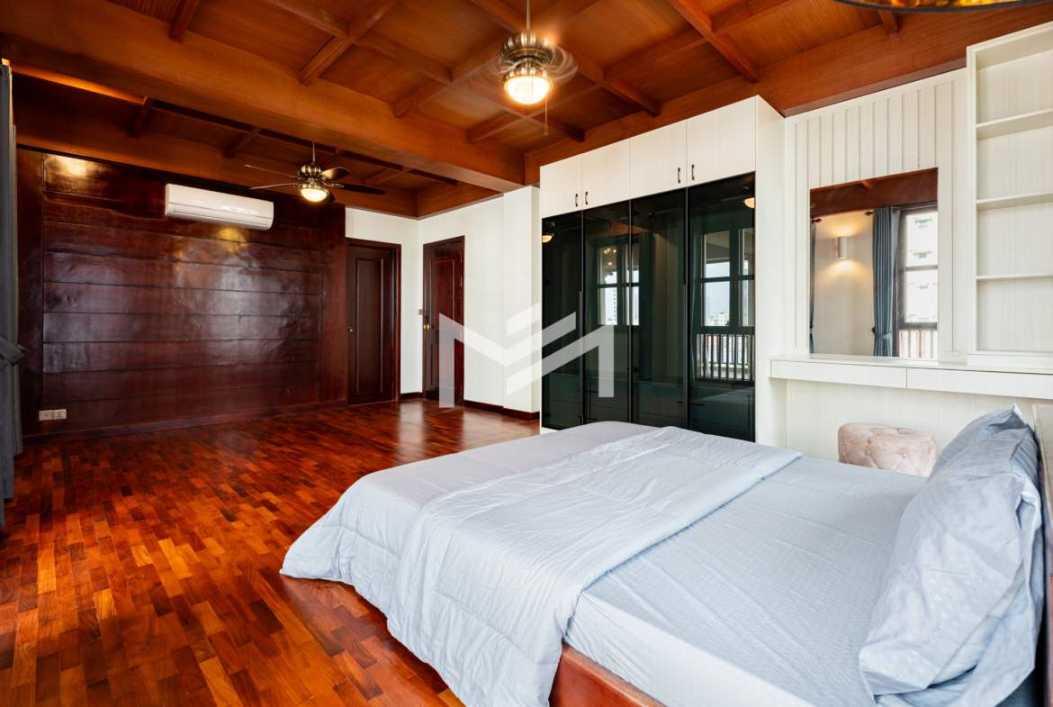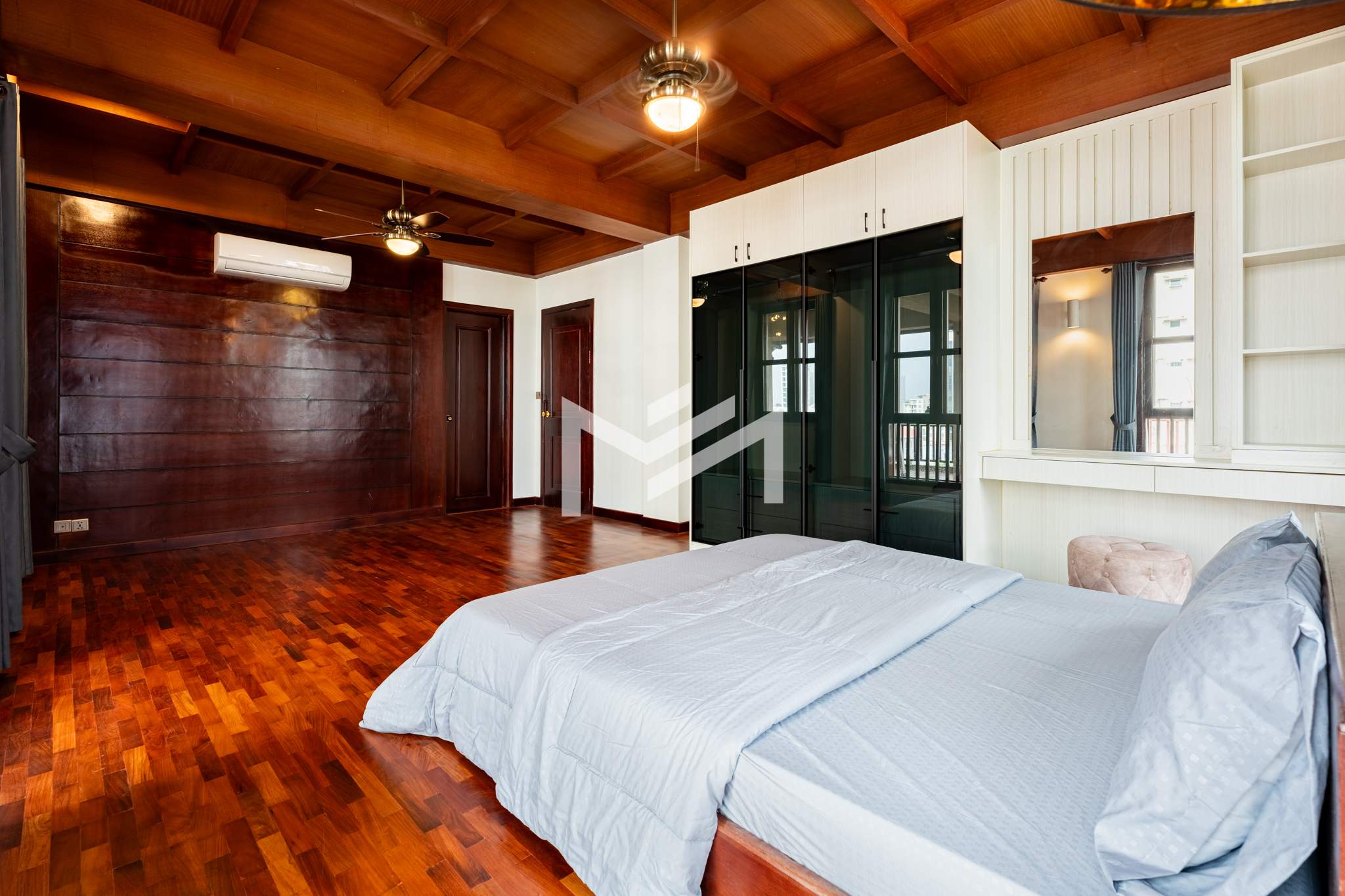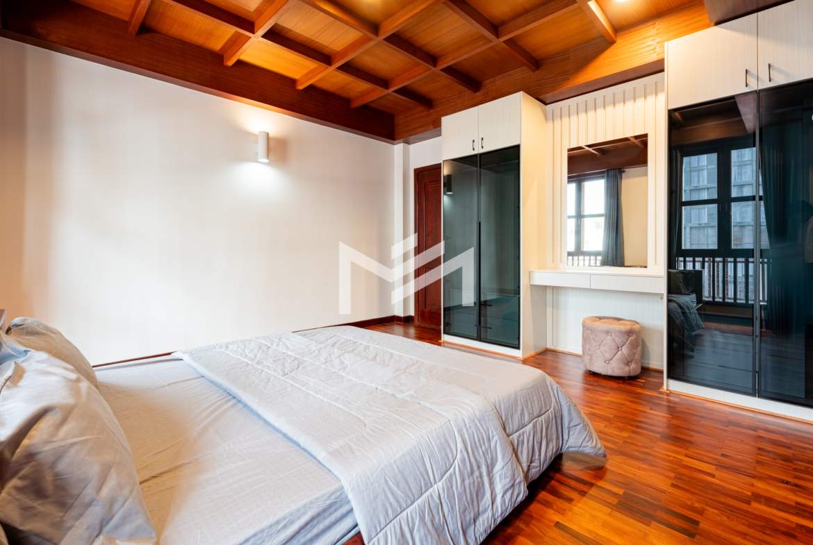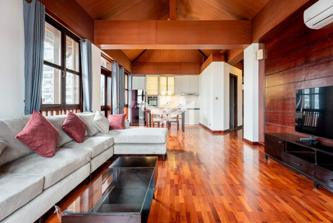 Spacious penthouse on the top floor of a low-rise residential building with only 6 floors. Featuring elegant wooden flooring, a large kitchen with built-in oven, and wide glass windows that fill the home with natural light. The residence offers a generously sized bedroom with a big closet and a modern bathroom complete with both overhead shower and bathtub.