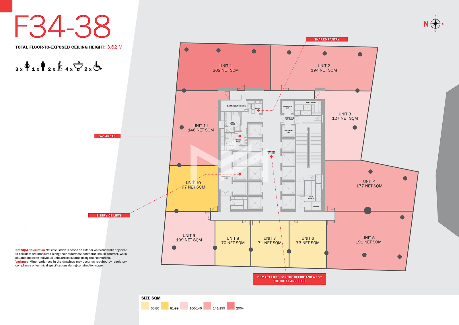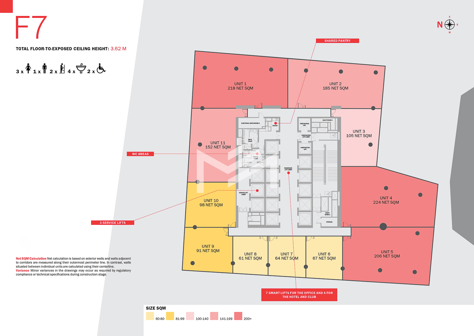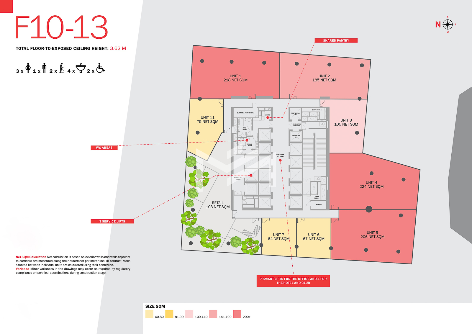 Odom Tower is the only strata-title office space available for sale, offering freehold ownership in a Grade A building. The development features five floors of retail space, underground parking, and office units from Levels 5 to 38, with sizes ranging from 62 sqm to 217 sqm net, or up to 1,515 sqm for a whole floor.