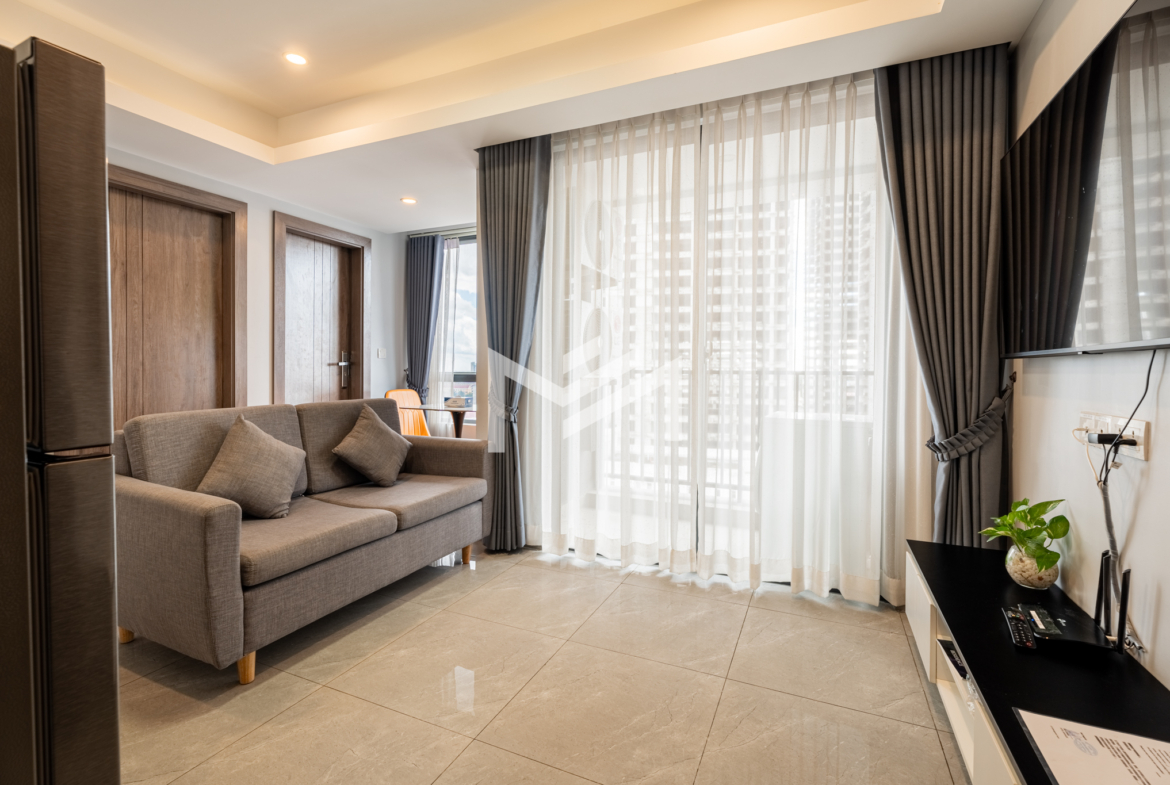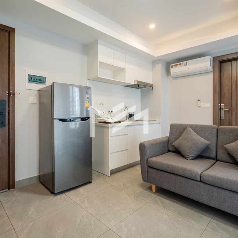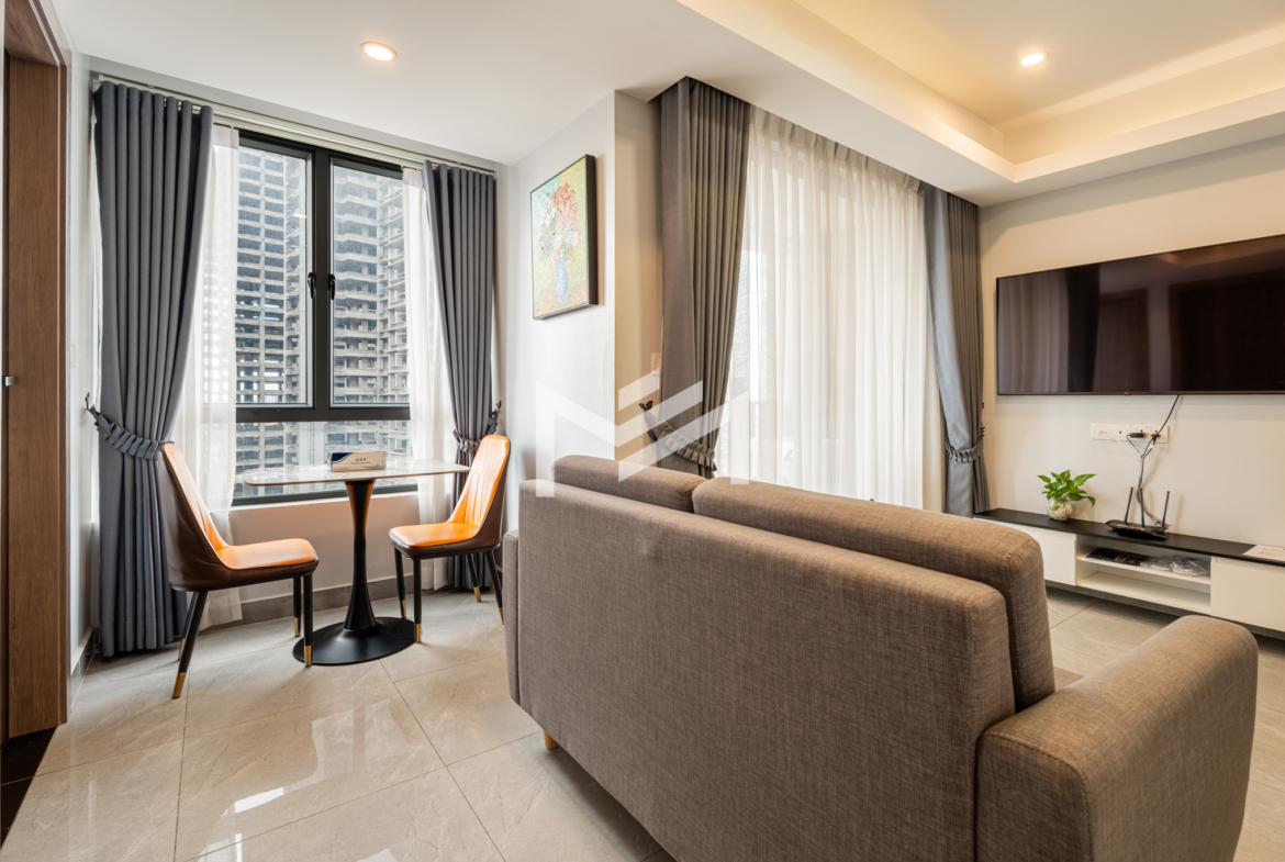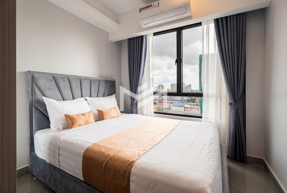 A cozy and fully furnished unit, ready for immediate move-in, ideal for a single tenant or a couple. The rental includes cleaning service, internet wifi, and regular bed linen change, with only utilities charged separately. Located just southwest of BKK1 within a 10-minute drive, the property sits in a peaceful local neighborhood offering privacy and comfort while remaining close to the city center. Residents can enjoy a rooftop gym and swimming pool with beautiful views, along with 24-hour security for complete peace of mind.