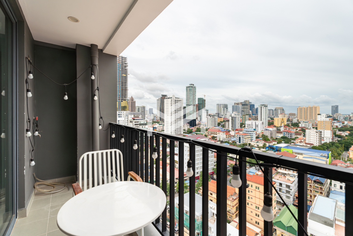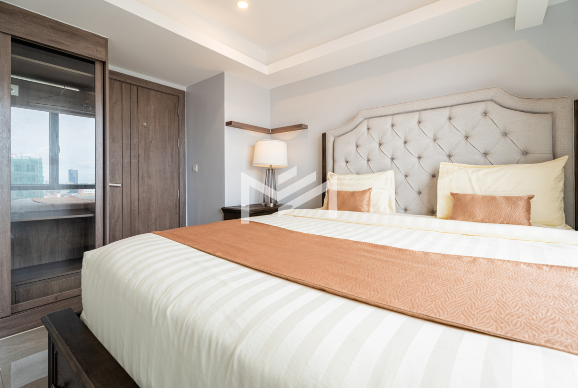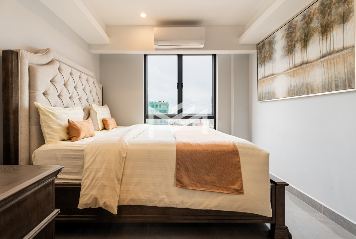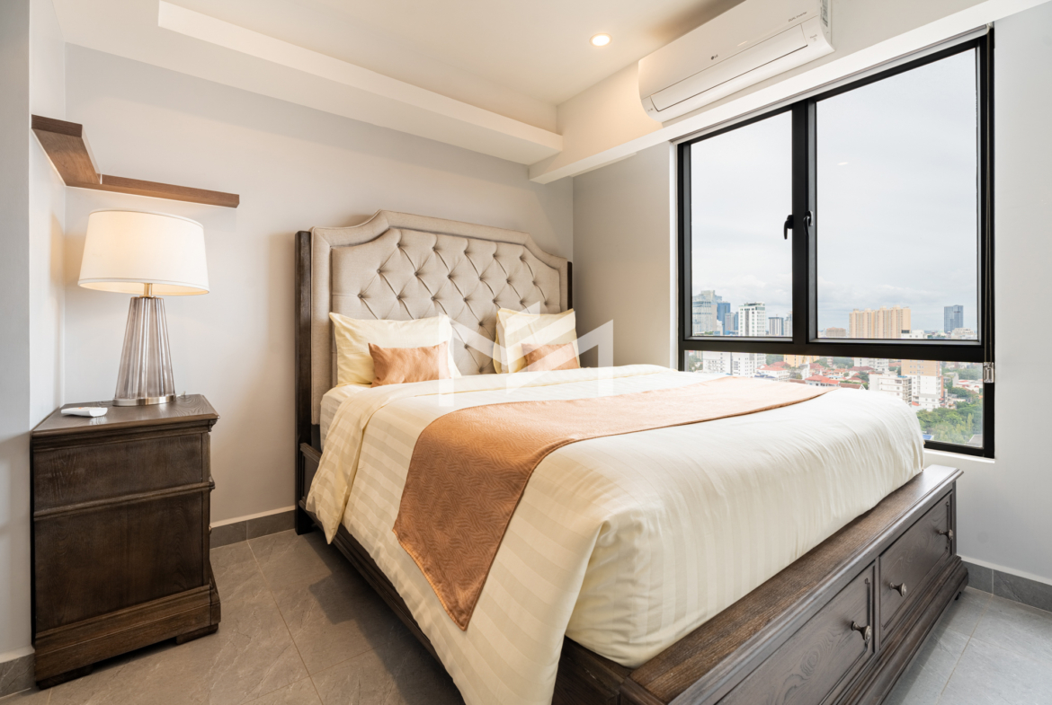A cozy and fully furnished unit, ready for immediate move-in, ideal for a couple or family. The rental includes internet wifi and management fee with only utilities charged separately. Located just southwest of BKK1 within a 10-minute drive, the property sits in a peaceful local neighborhood offering privacy and comfort while remaining close to the city center. Residents can enjoy a rooftop gym and swimming pool with beautiful views, along with 24-hour security for complete peace of mind.