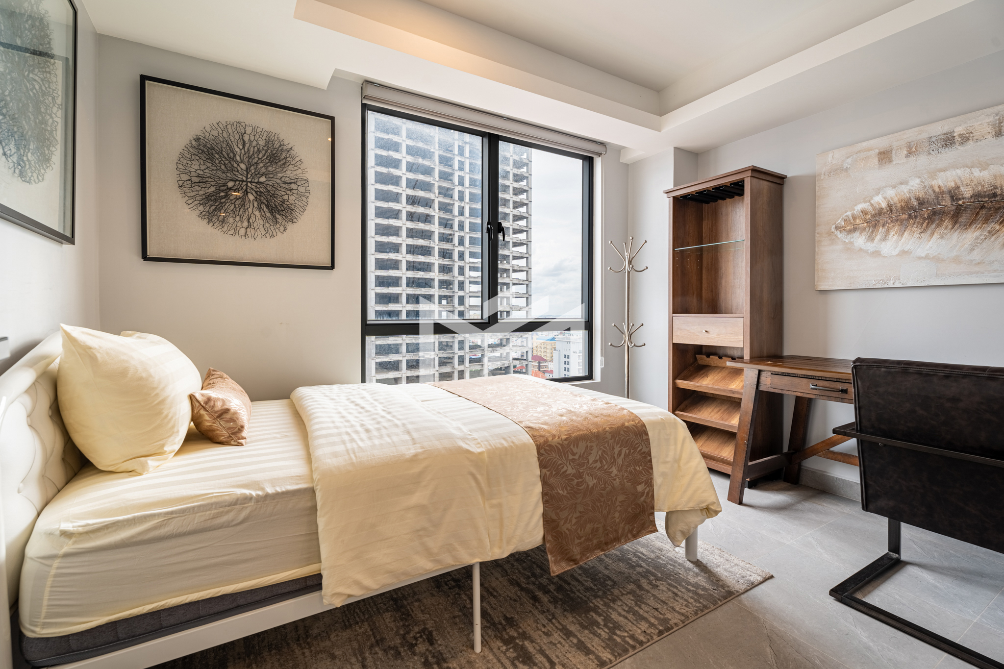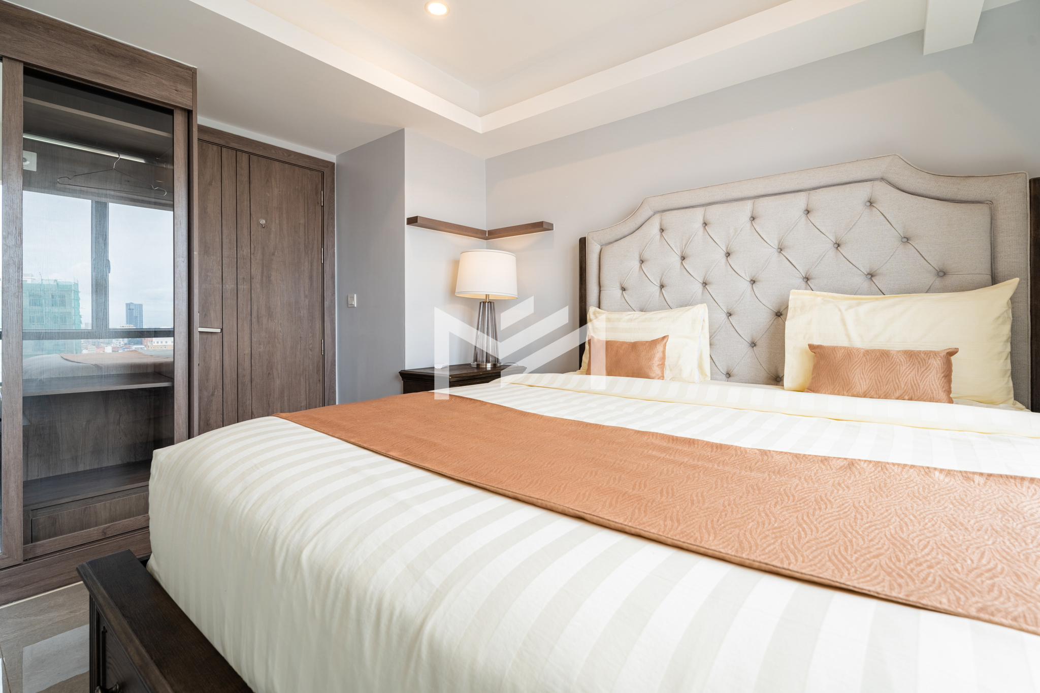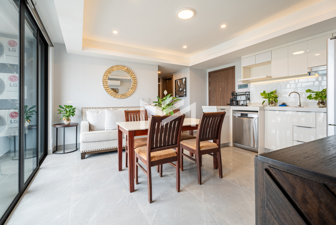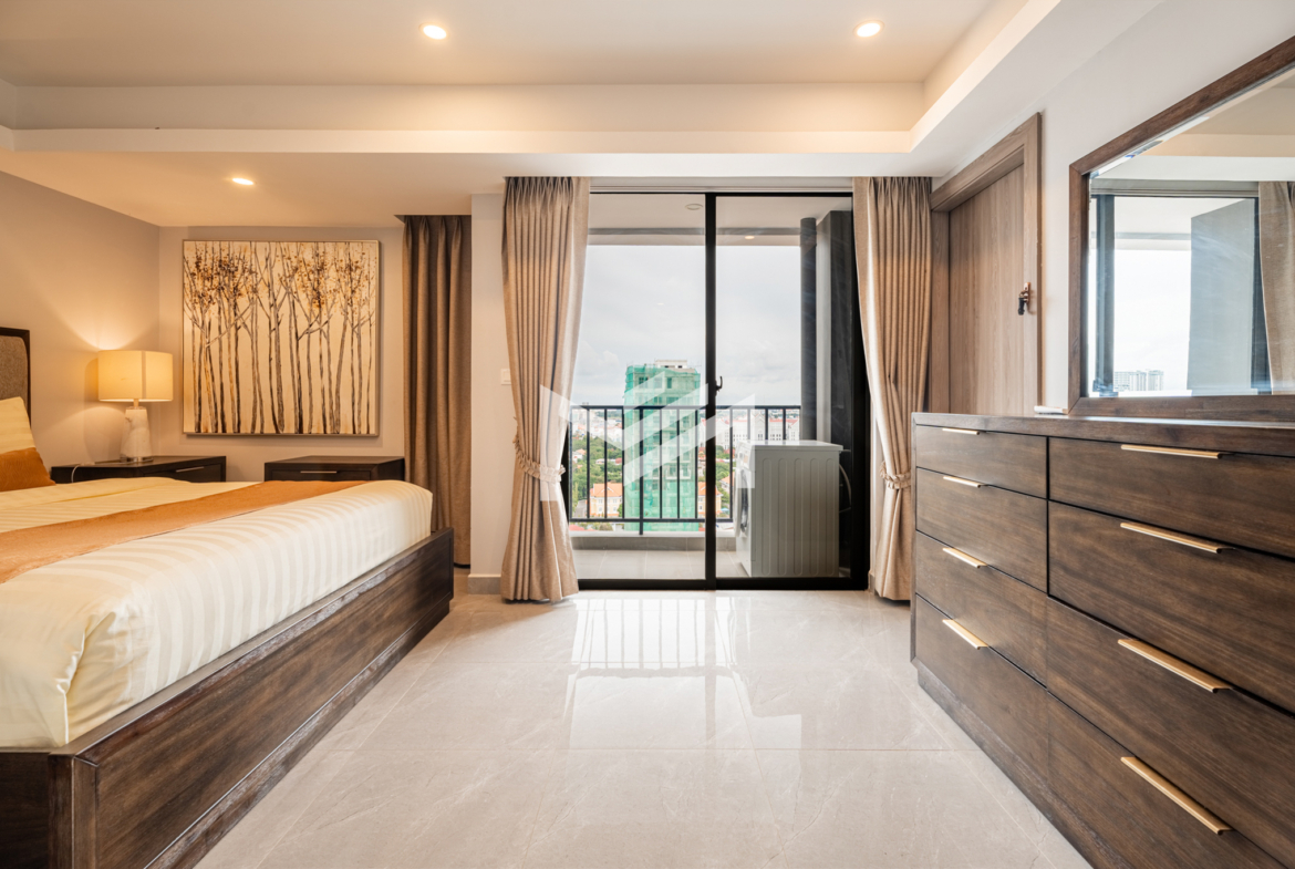 A cozy and fully furnished unit, ready for immediate move-in, ideal for a couple or family. The rental includes internet wifi and management fee with only utilities charged separately. Located just southwest of BKK1 within a 10-minute drive, the property sits in a peaceful local neighborhood offering privacy and comfort while remaining close to the city center. Residents can enjoy a rooftop gym and swimming pool with beautiful views, along with 24-hour security for complete peace of mind.