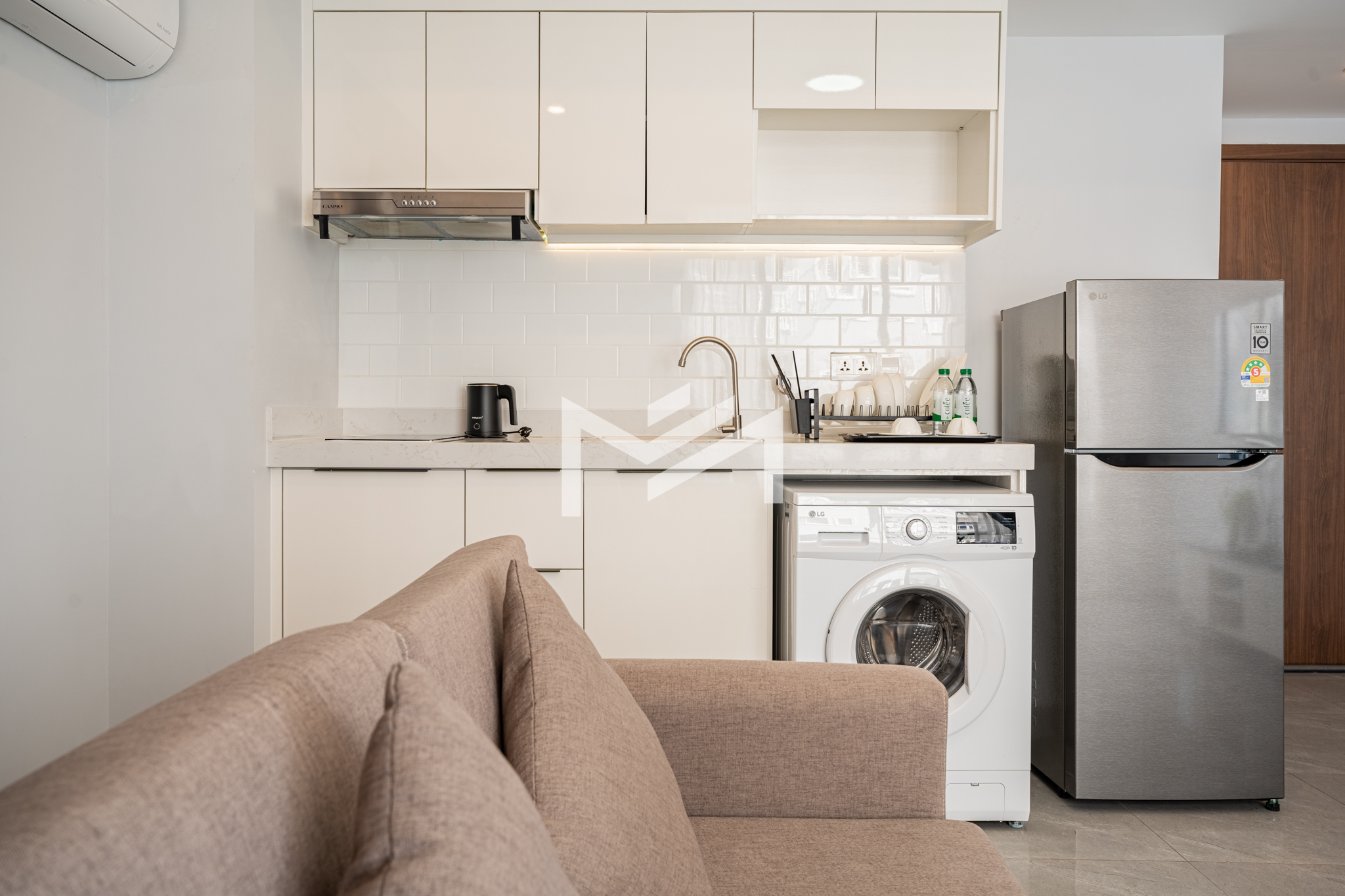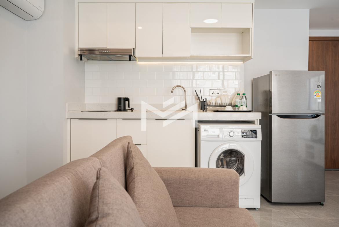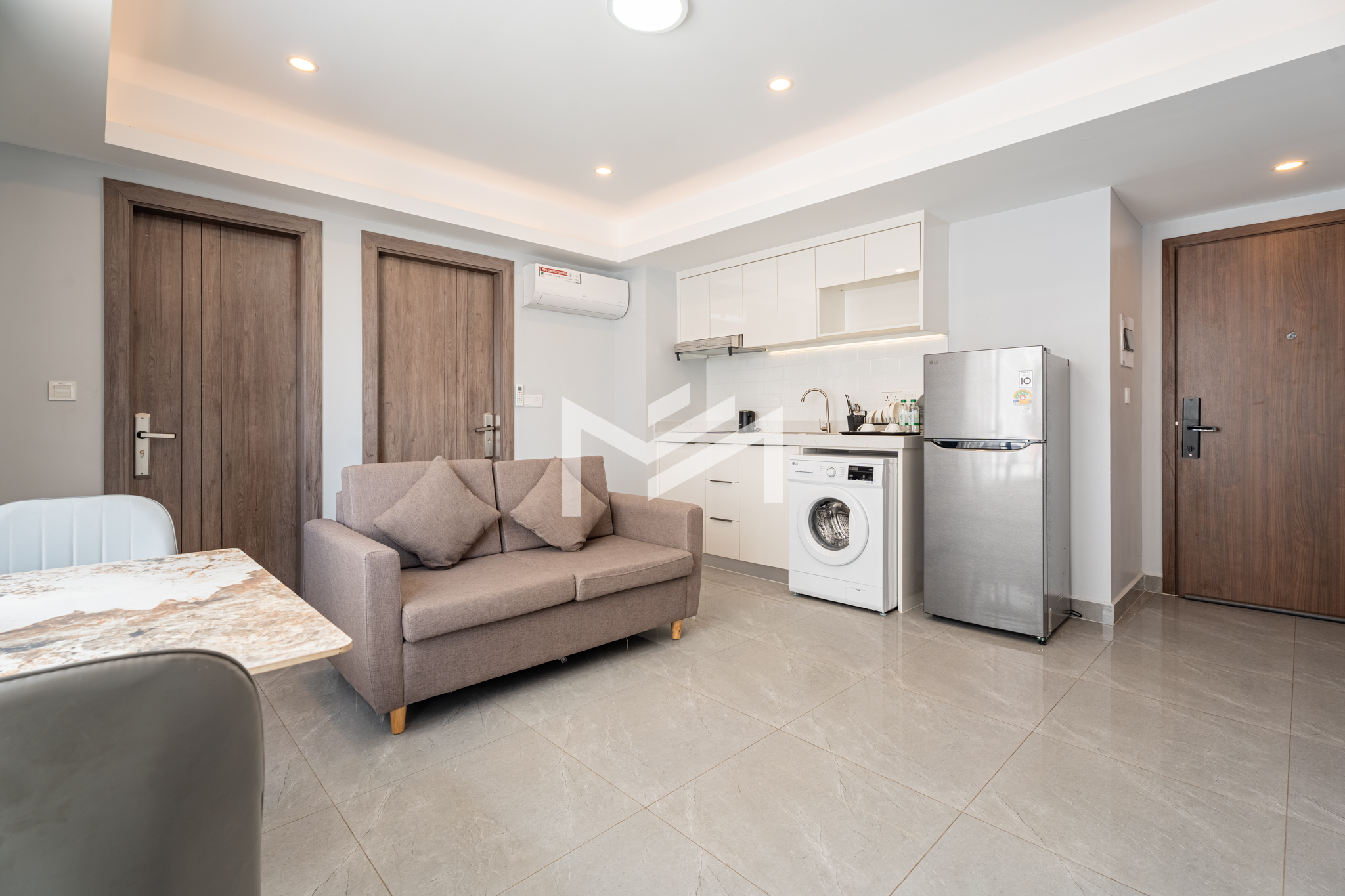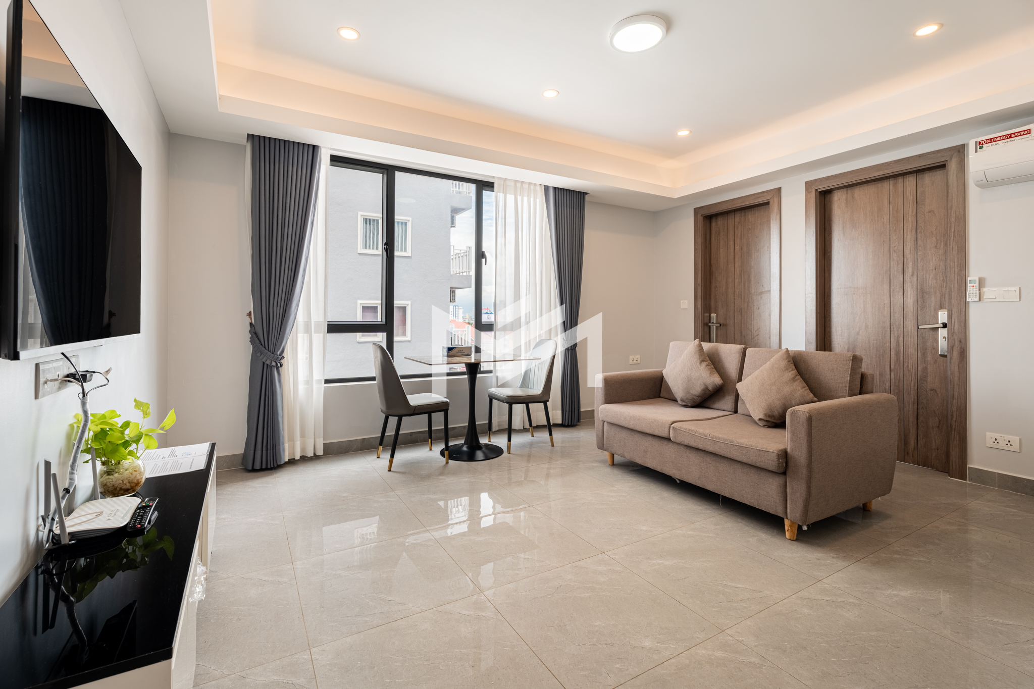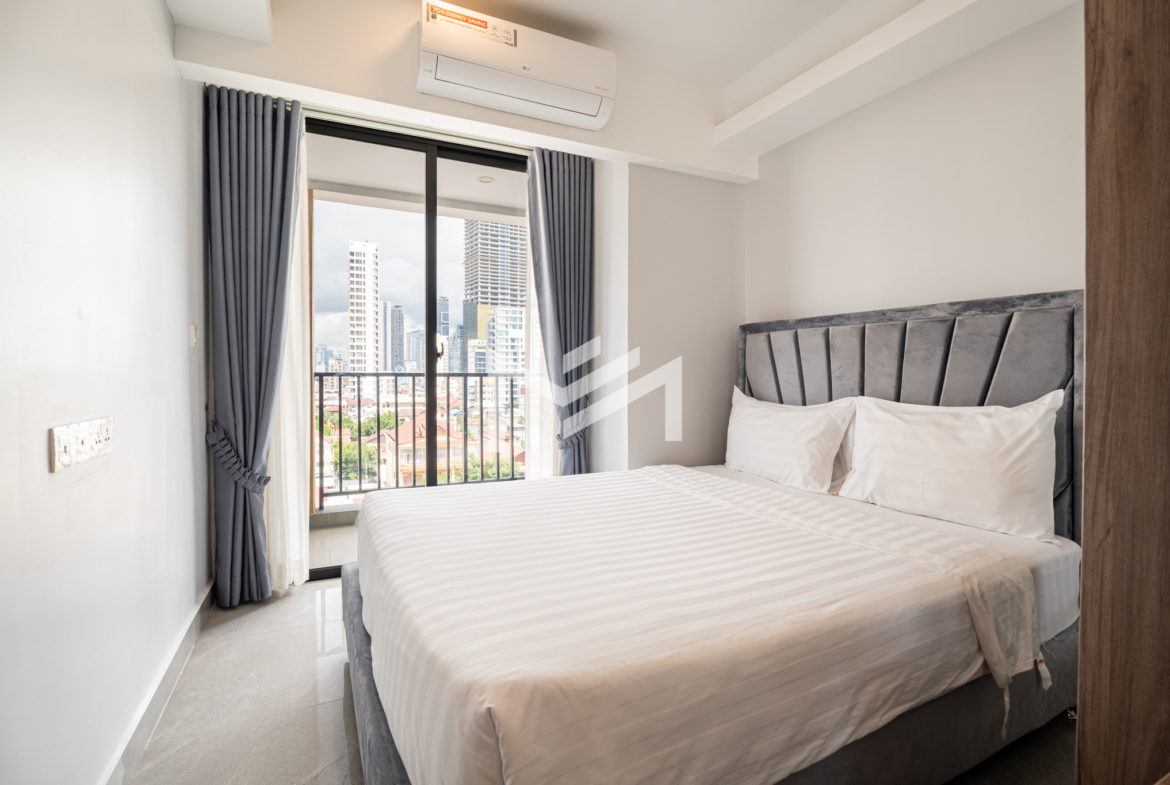 A cozy and fully furnished unit, ready for immediate move-in, ideal for a single tenant or a couple. The rental includes cleaning service, high-speed internet, and regular bed linen change, with only utilities charged separately. Located just southwest of BKK1 within a 10-minute drive, the property sits in a peaceful local neighborhood offering privacy and comfort while remaining close to the city center. Residents can enjoy a rooftop gym and swimming pool with beautiful views, along with 24-hour security for complete peace of mind.