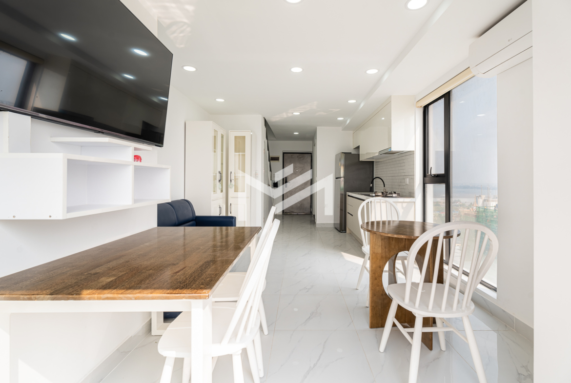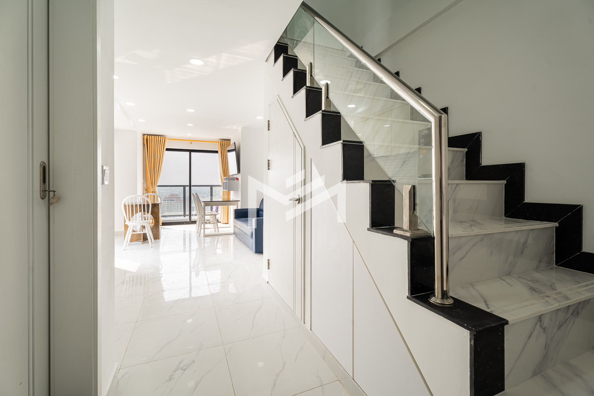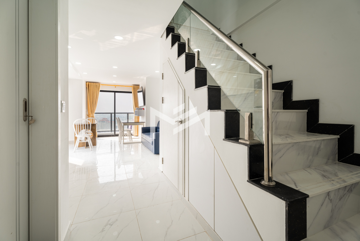 This duplex corner unit is fully furnished and filled with natural light, offering excellent airflow and a bright, comfortable living environment. Residents can enjoy on-site facilities including a gym, swimming pool, and jogging area. The unit is well suited for a single professional or a couple seeking comfort, convenience, and a prime city lifestyle.