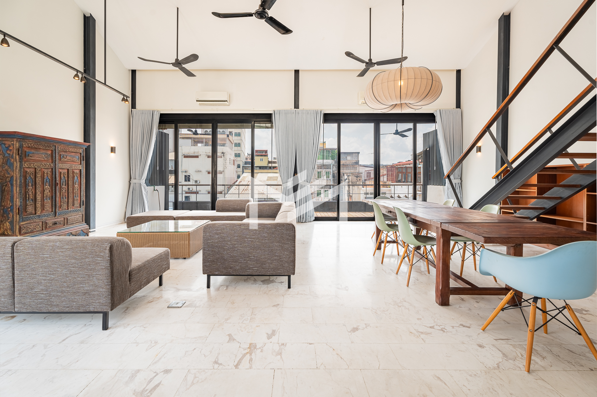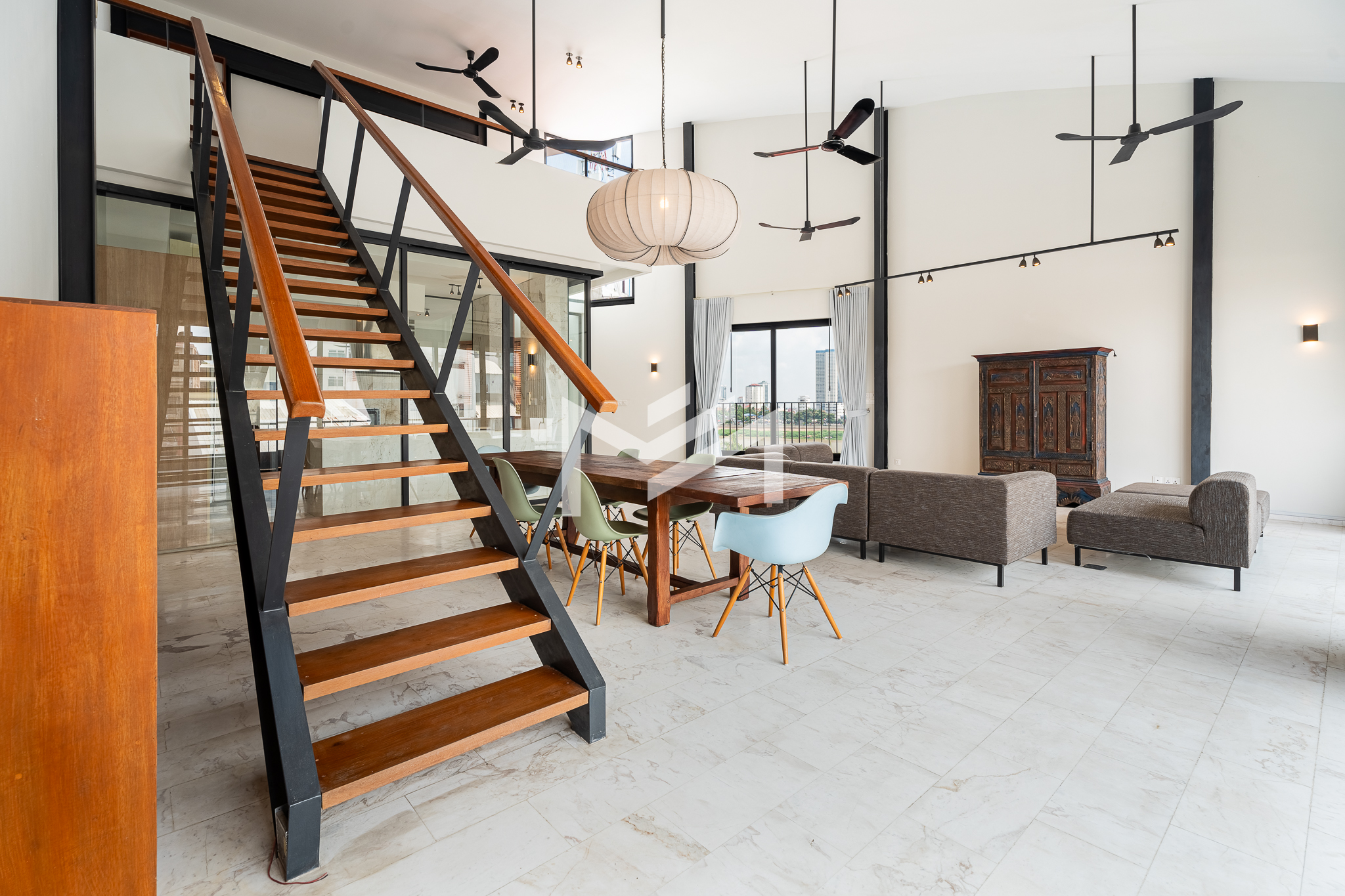 Newly renovated and fully furnished, this two-floor unit is located near the Riverside area and offers a practical and well-designed layout. The living room and kitchen are positioned on the 4th floor, creating a bright and open main living space. The 3rd floor features three bedrooms and three bathrooms, while an additional bedroom and bathroom are arranged as a mezzanine on the 4th floor, providing flexibility for guests or private use. The property also includes a spacious terrace ideal for relaxing or entertaining, along with clean and easy-access stairs that enhance daily convenience. Combining generous living space with a central riverside location, this home offers a comfortable and unique residential experience.