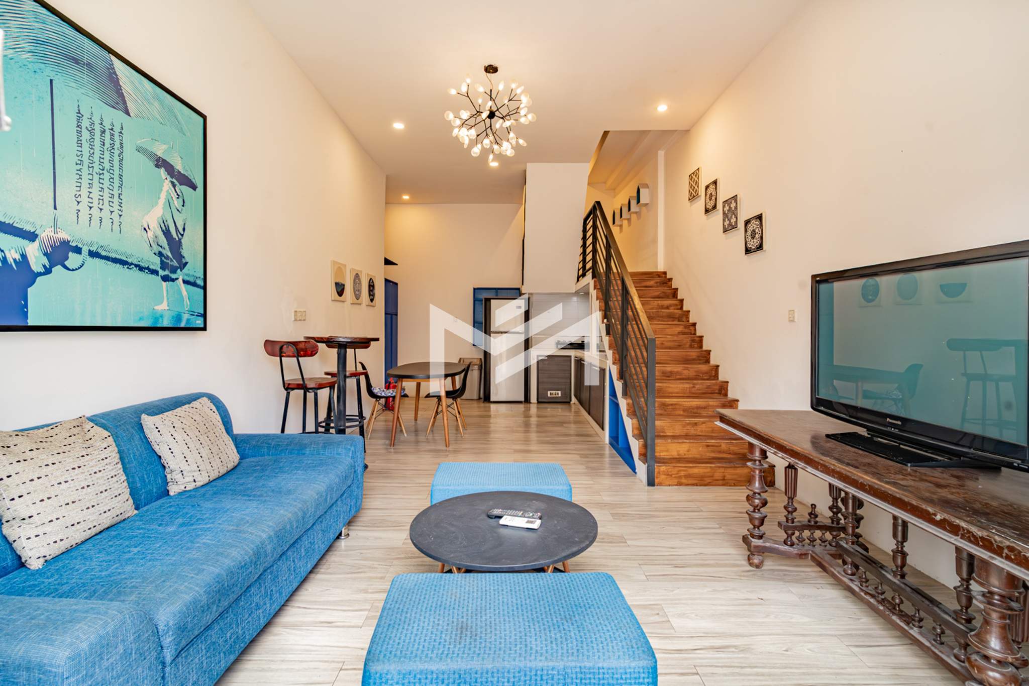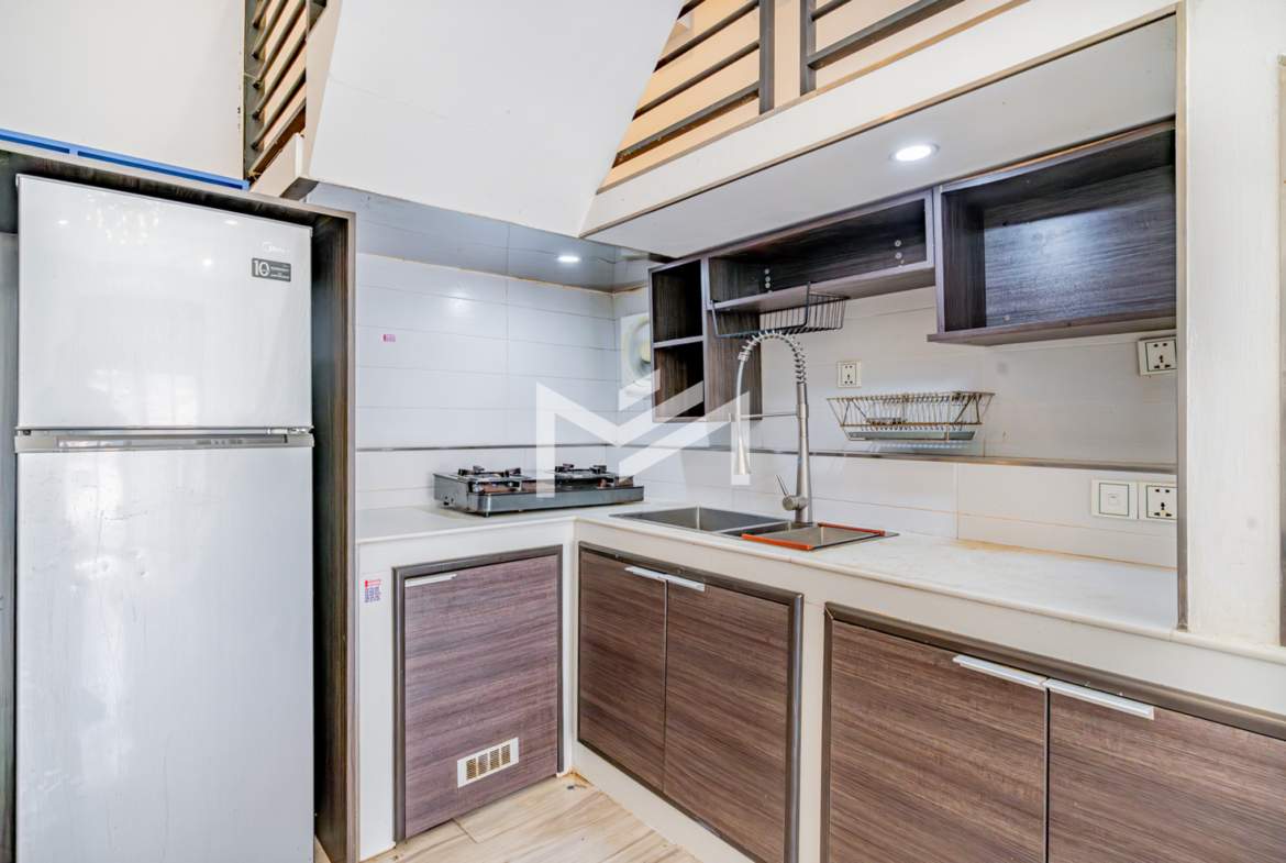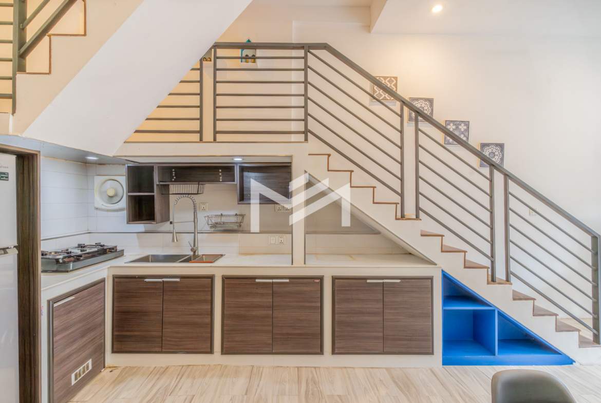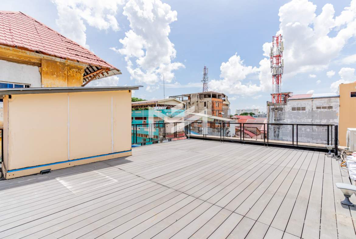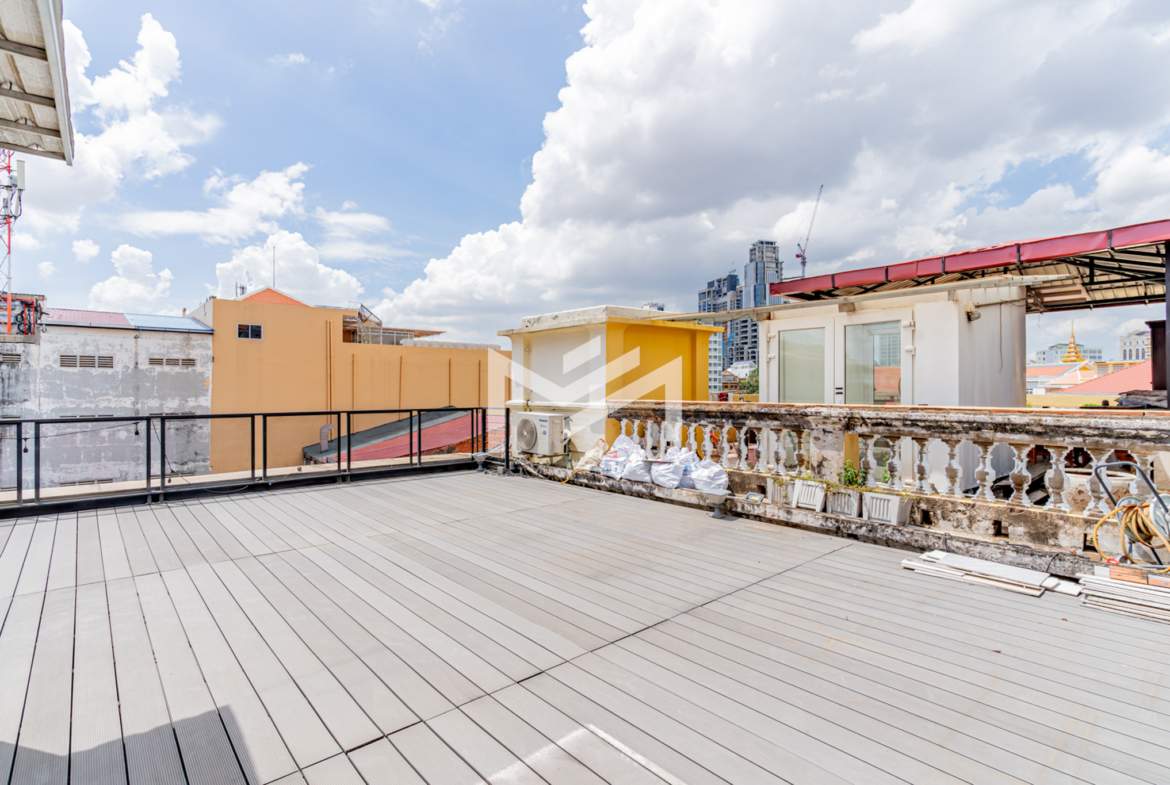A charming flat with colonial-style exterior and newly renovated interior. This duplex home features a characterful mix of modern furnishings and classic details. Bright and airy with plenty of natural light and good airflow throughout. Easy stair access, located in the prime Wat Phnom area within Phnom Penh CBD—just steps away from Exchange Square, Vattanac Capital, and Wat Phnom.