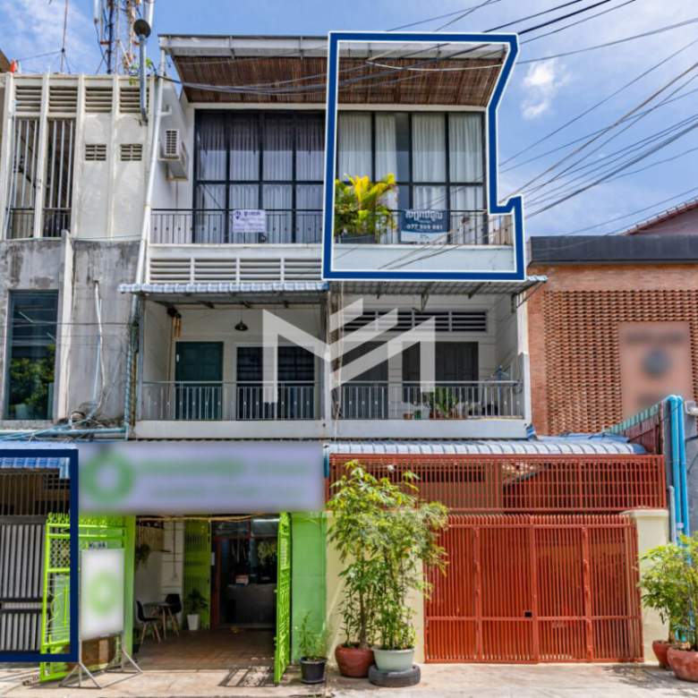 This side unit loft offers practical living across two floors. The lower level features a kitchen, living room, bathroom, and storage area, while the upper floor includes a spacious bedroom with a large closet and en-suite bathroom—so there's no need to go downstairs. A good-sized balcony brings in the fresh morning sunlight. The unit is semi-furnished, with the option to purchase the existing furniture from the seller at a reasonable offer. There is a designated space for motorbike parking secured with a lockable gate. Located just near BKK Market, the property enjoys easy access and a highly convenient location.