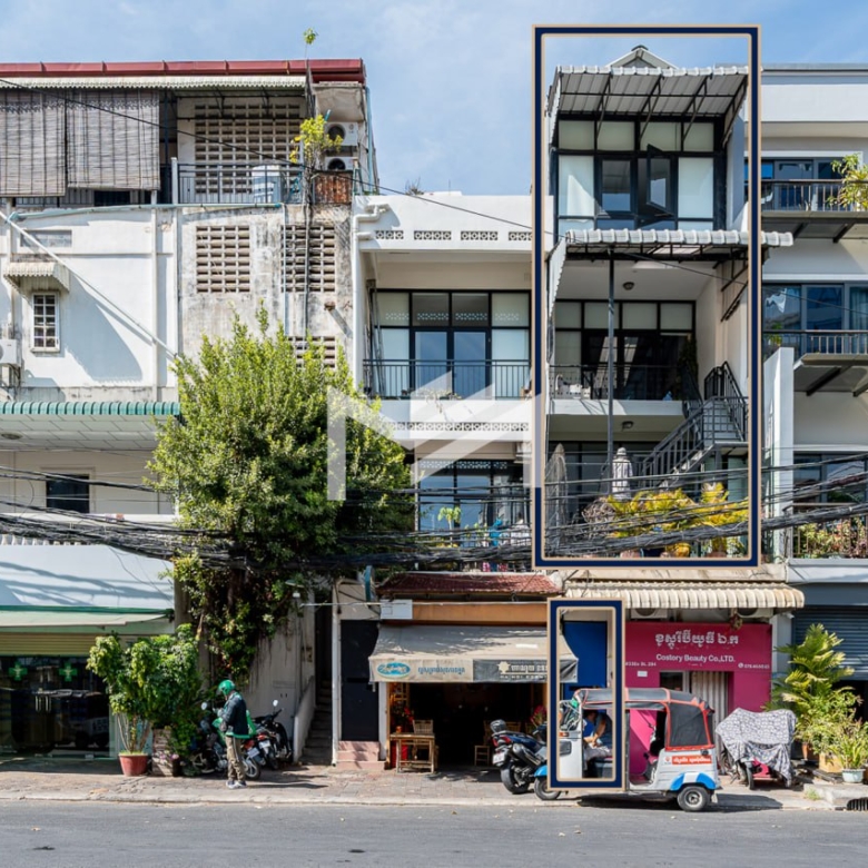 Approx. 168 sqm of floor area (excluding balcony). Each floor measures 4m x 14m, with a 3m x 4m balcony on the first floor. The property has convenient street access with a secure gate. The first floor is currently used as an open-plan office with one bathroom, but it can easily be converted into a one-bedroom apartment for own use or rental income. The 2nd and 3rd floors feature a 2-bedroom duplex layout. Located just about 200 meters from Independence Monument, this well-renovated property offers an excellent central location — ready for immediate use. The duplex is tenanted, while the first floor is owner-occupied.