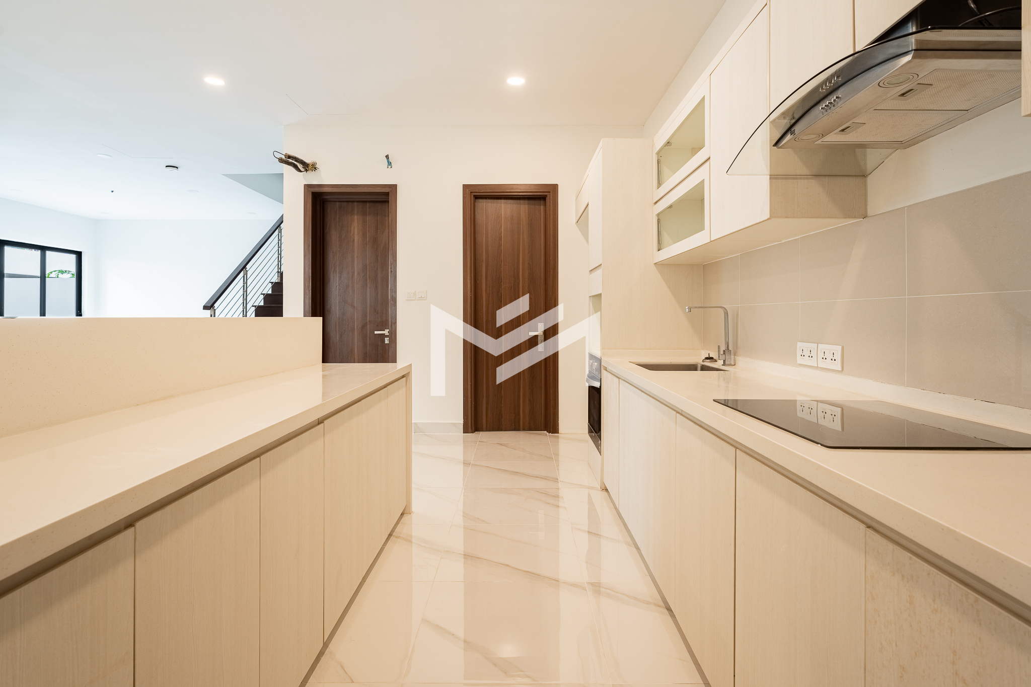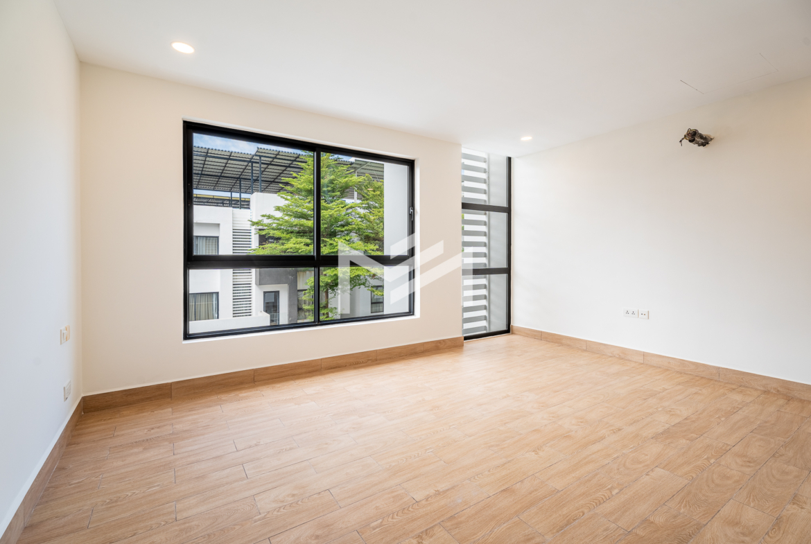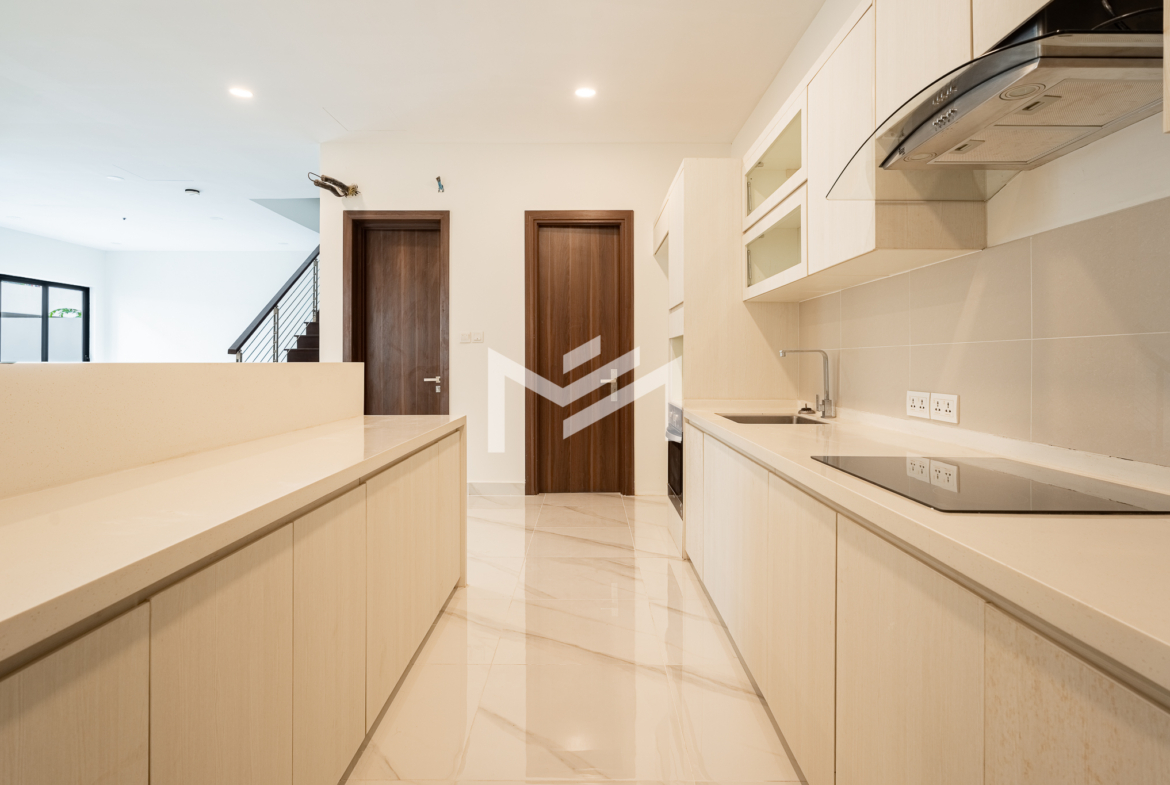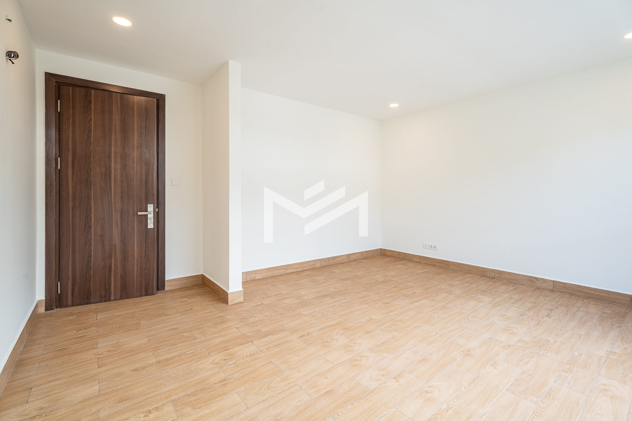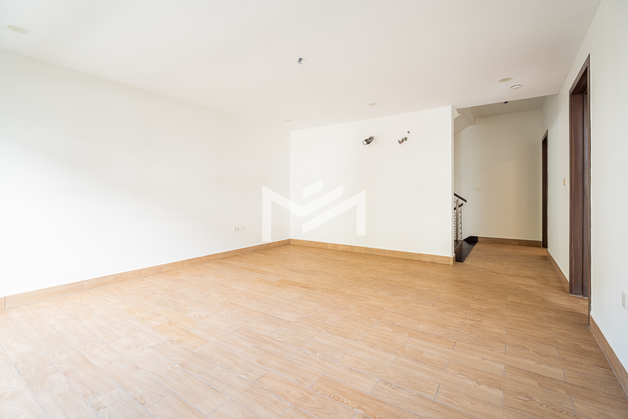 Newly renovated villa in unfurnished condition, ideal for expats relocating to Phnom Penh with their own container. The villa is delivered in a clean, plain, and empty condition, making it easy to set up and personalize your home simply by adding your own furniture. The ground floor features a large open-plan living area, a spacious kitchen, a helper’s room, and a guest toilet. Each upper floor is designed with two bedrooms per floor, offering comfortable space and privacy for family living. Conveniently located in central Phnom Penh, the villa is close to Vattanac Capital and Exchange Square, and within a 15-minute drive to BKK1. Situated in a secure gated community with 24-hour security, residents also enjoy access to a shared swimming pool, providing a balanced city lifestyle with comfort and peace of mind.
