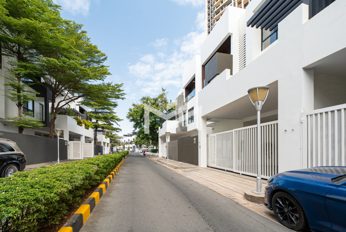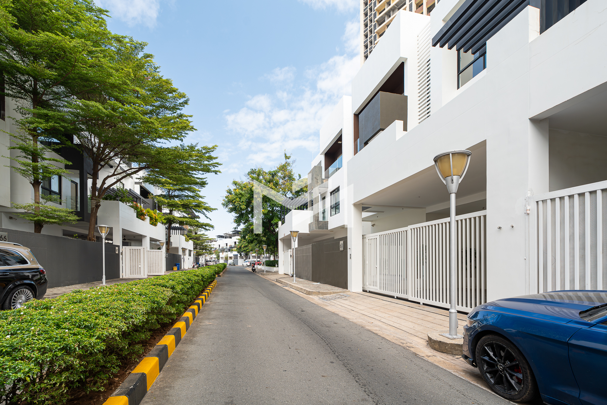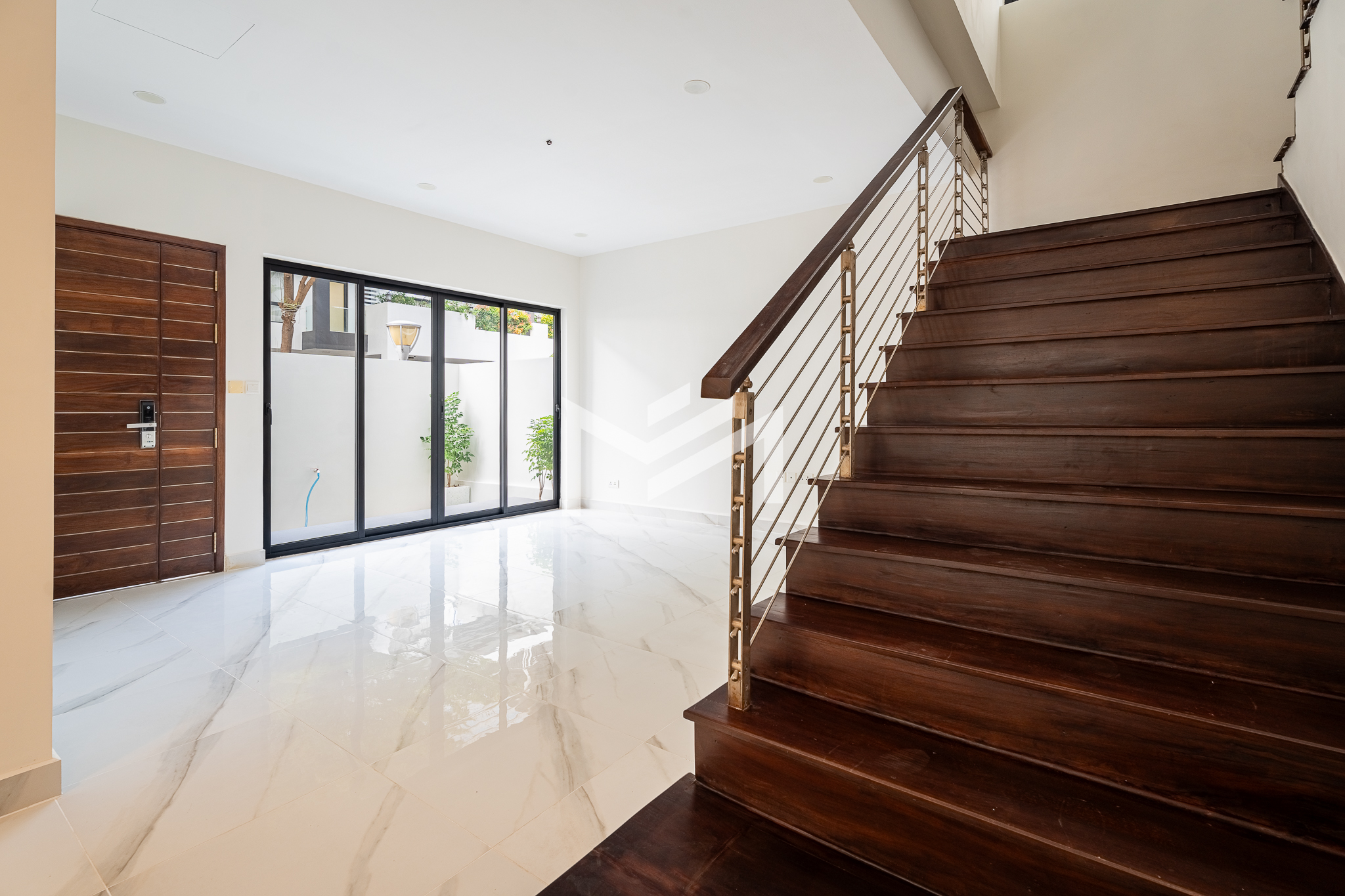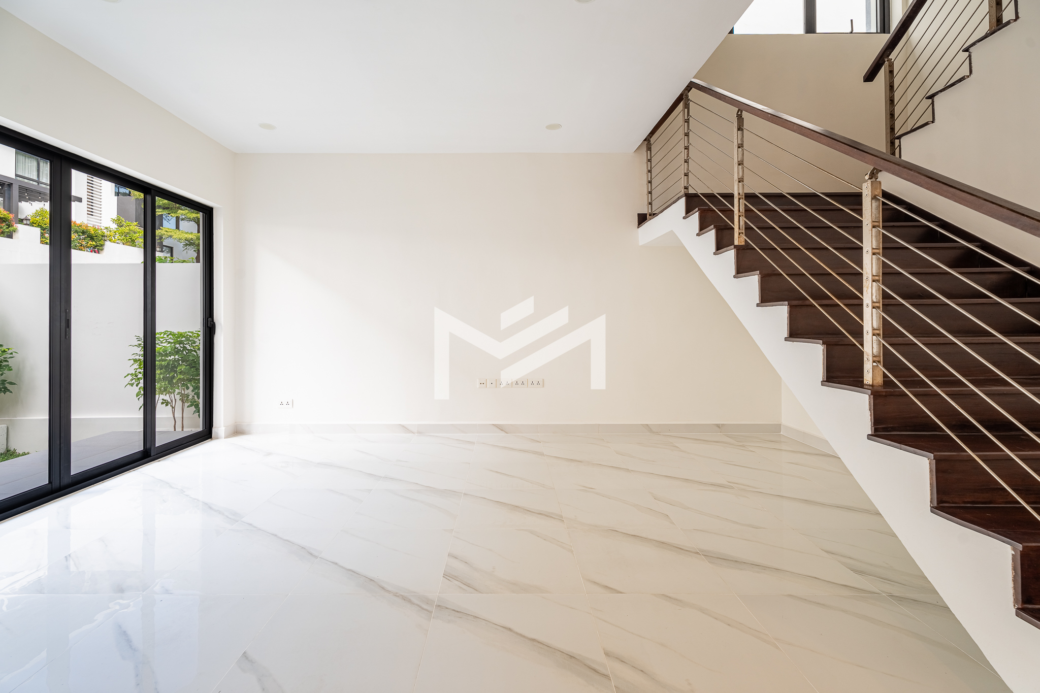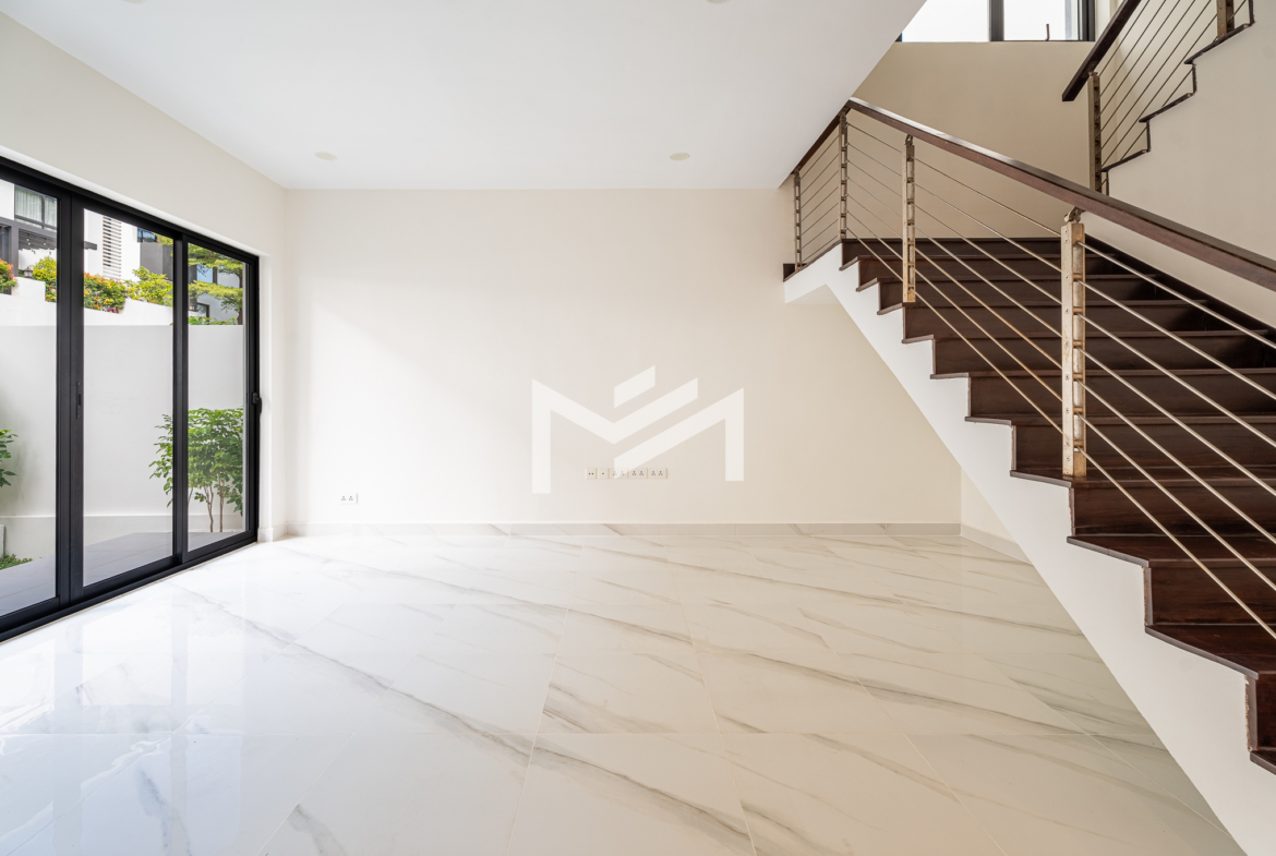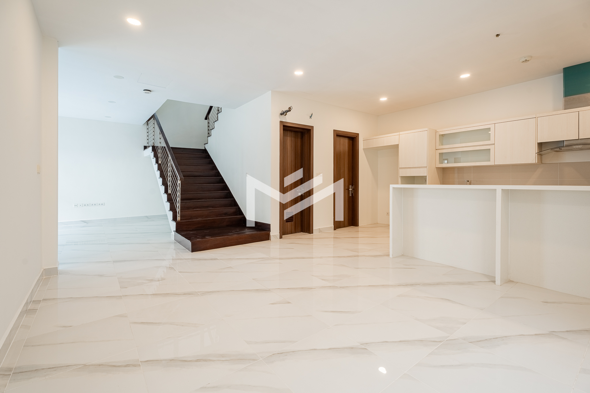 Newly renovated villa in unfurnished condition, ideal for expats relocating to Phnom Penh with their own container. The villa is delivered in a clean, plain, and empty condition, making it easy to set up and personalize your home simply by adding your own furniture. The ground floor features a large open-plan living area, a spacious kitchen, a helper’s room, and a guest toilet. Each upper floor is designed with two bedrooms per floor, offering comfortable space and privacy for family living. Conveniently located in central Phnom Penh, the villa is close to Vattanac Capital and Exchange Square, and within a 15-minute drive to BKK1. Situated in a secure gated community with 24-hour security, residents also enjoy access to a shared swimming pool, providing a balanced city lifestyle with comfort and peace of mind.