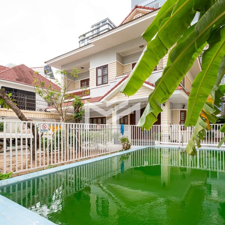 A rare private villa with a swimming pool, offered unfurnished—perfect for tenants who wish to bring their own furniture and design to their preference. The property is equipped with air conditioning, curtains, and a water heater. An excellent choice for expats or locals with children studying in the city and working nearby, providing the comfort of a home right in the city without the need for daily commuting. It is also a great option for rental conversion into a Montessori school, pet clinic, or other businesses that do not require major renovations—only minor touch-ups to get started. Located in expat-friendly BKK1.