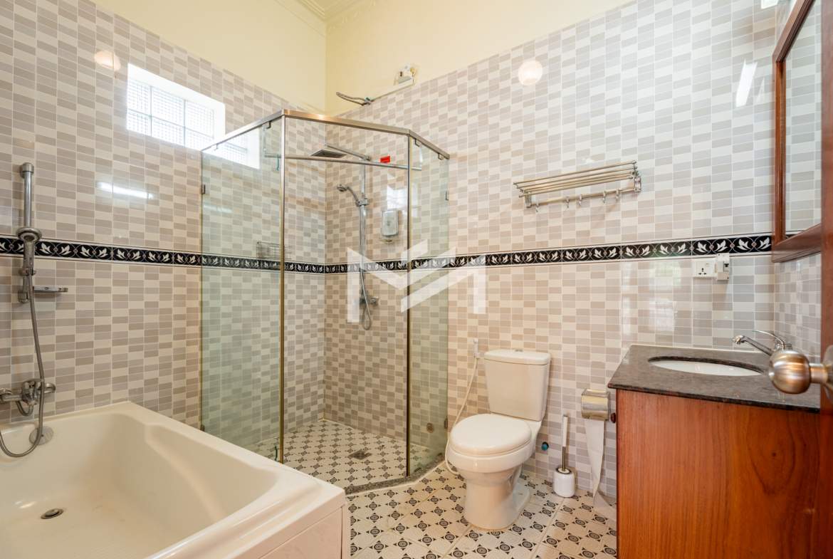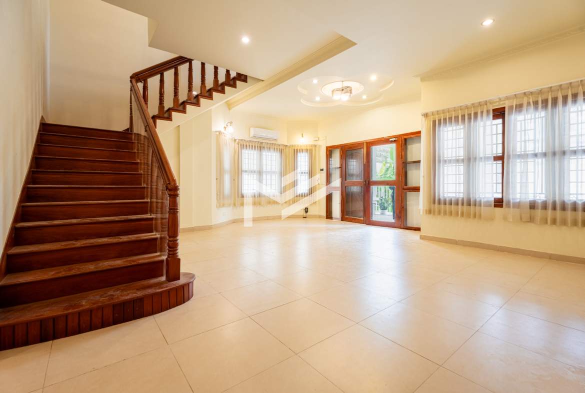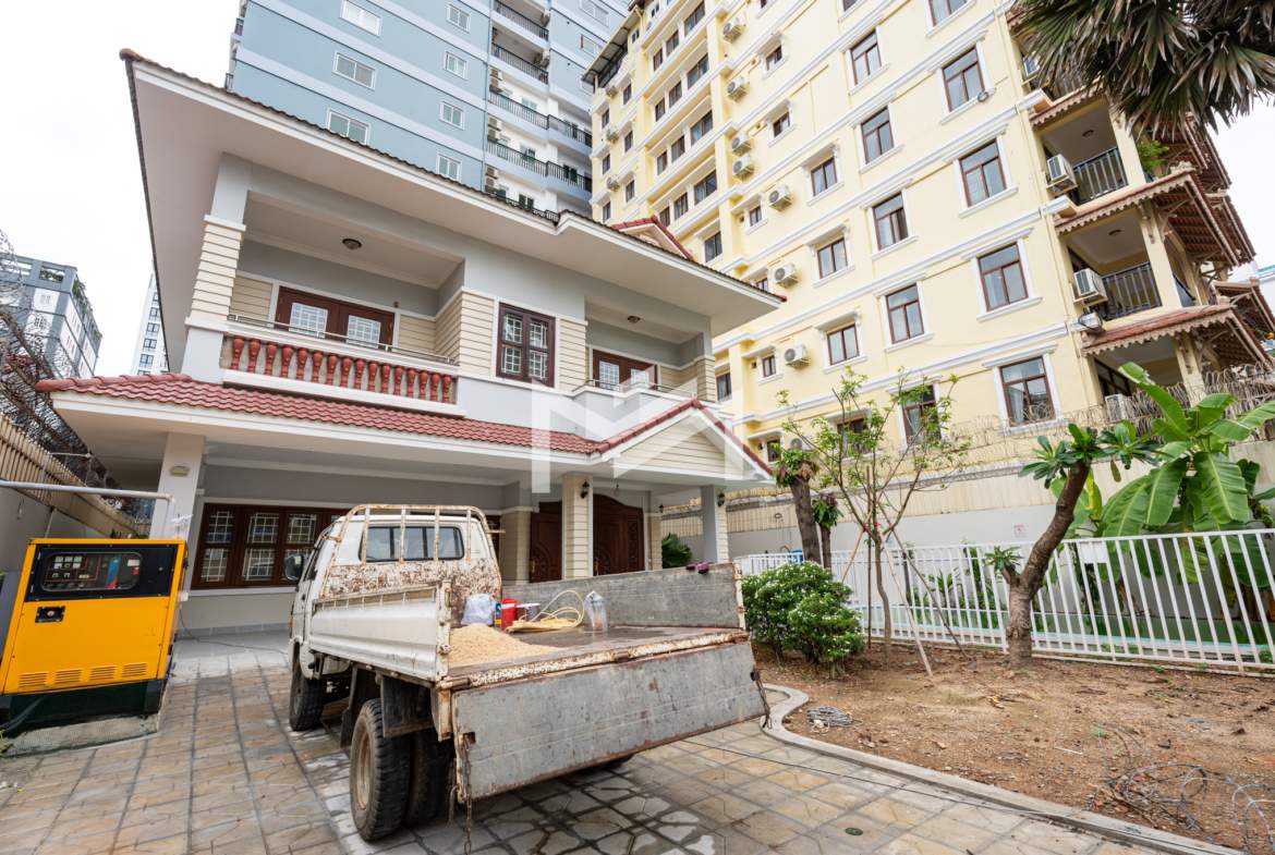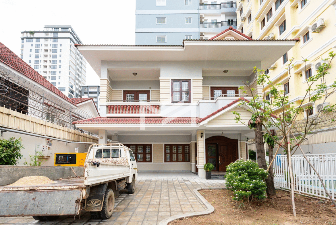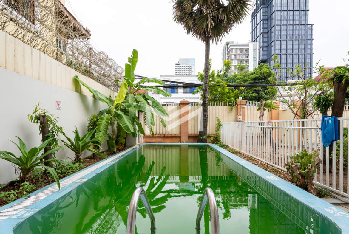 A rare private villa with a swimming pool, offered unfurnished—perfect for tenants who wish to bring their own furniture and design to their preference. The property is equipped with air conditioning, curtains, and a water heater. An excellent choice for expats or locals with children studying in the city and working nearby, providing the comfort of a home right in the city without the need for daily commuting. It is also a great option for rental conversion into a Montessori school, pet clinic, or other businesses that do not require major renovations—only minor touch-ups to get started. Located in expat-friendly BKK1.