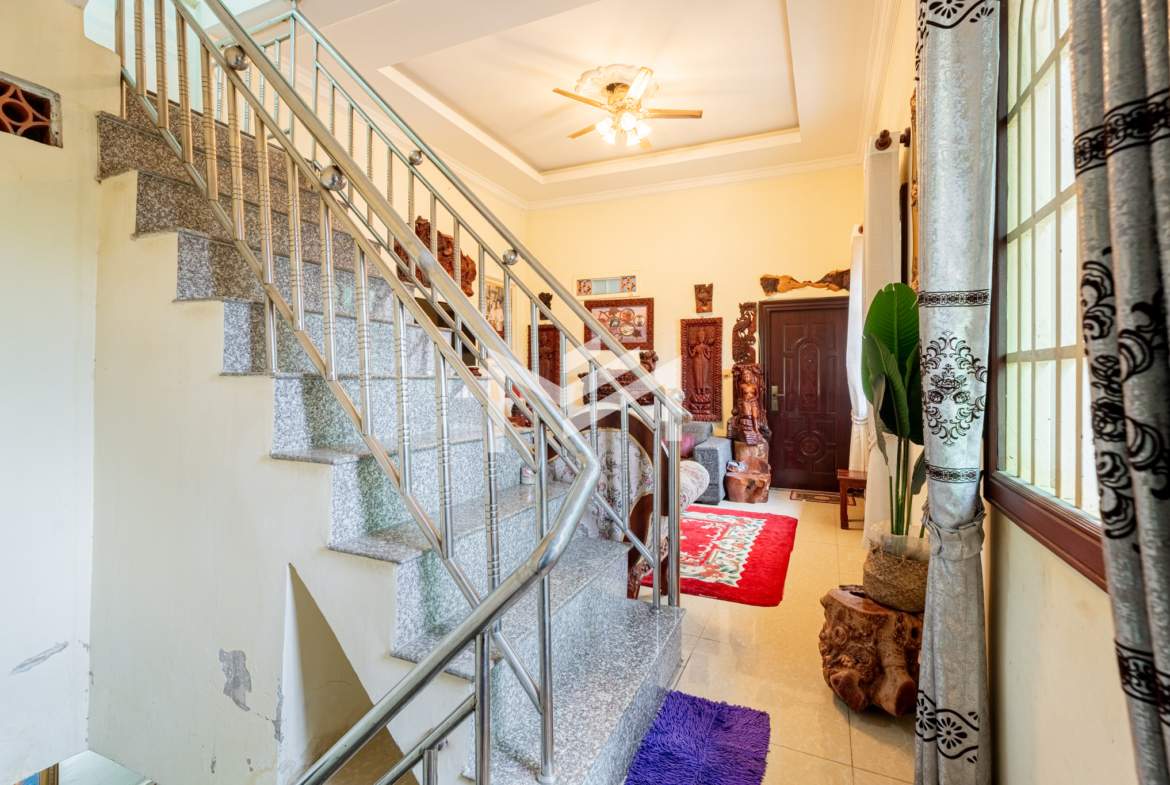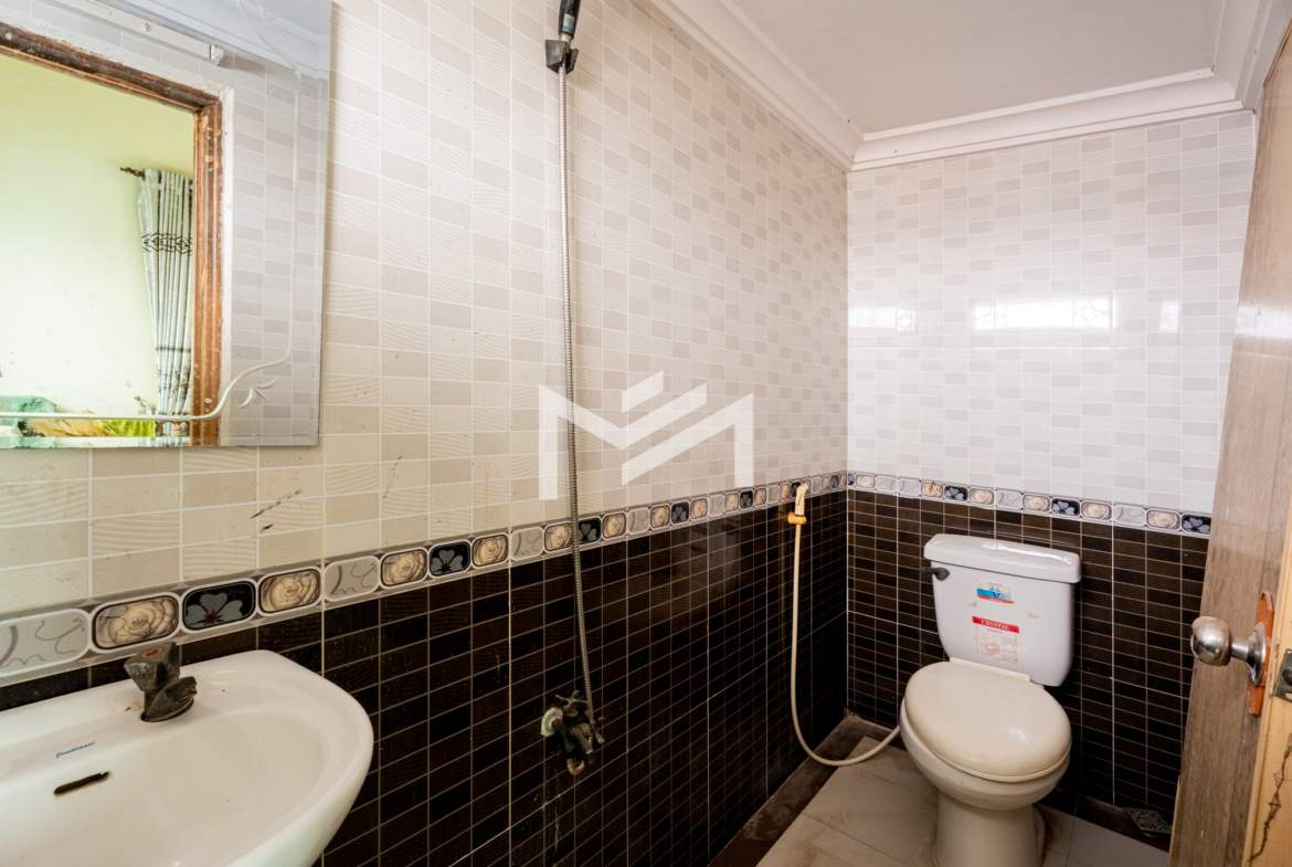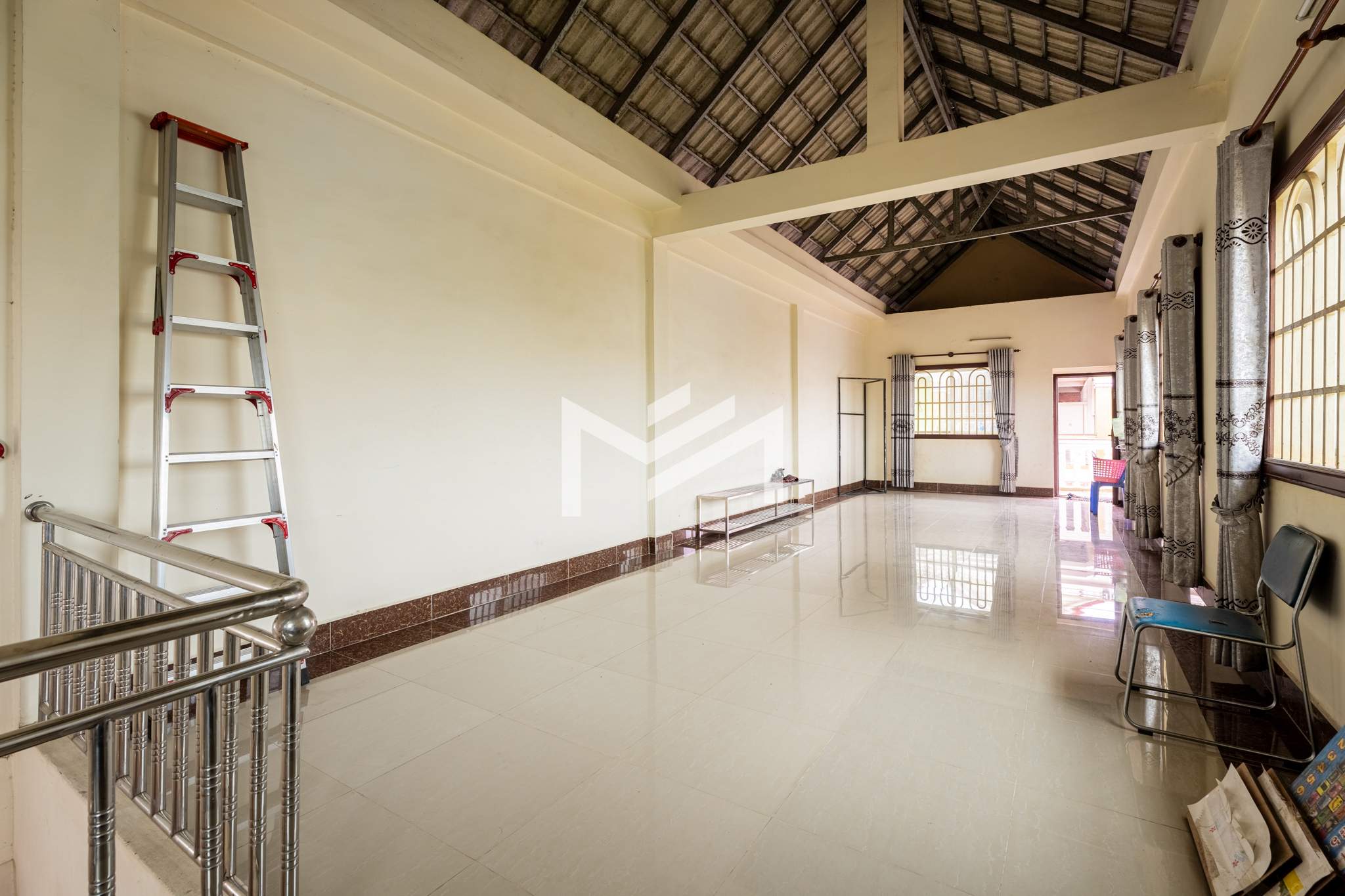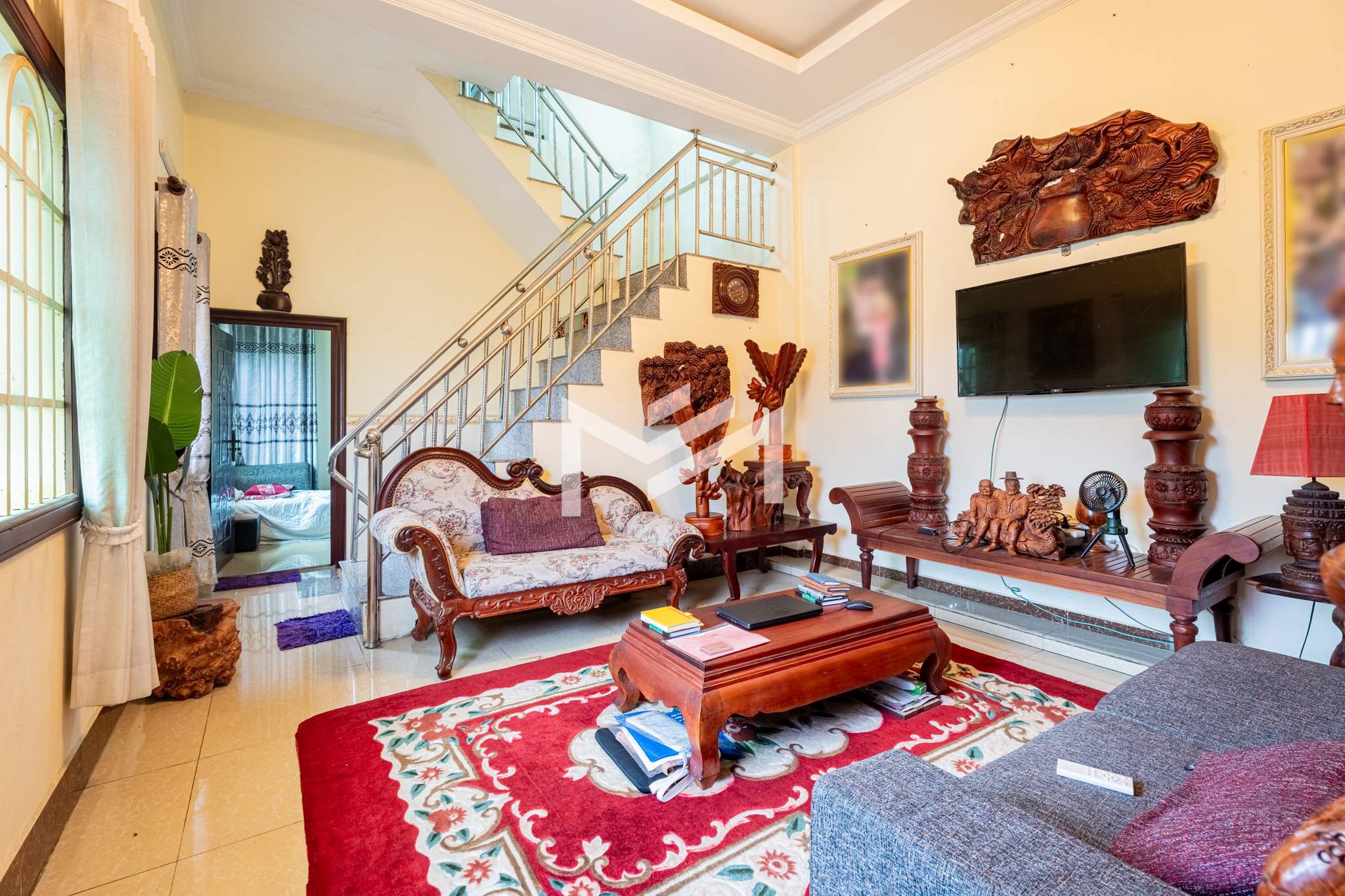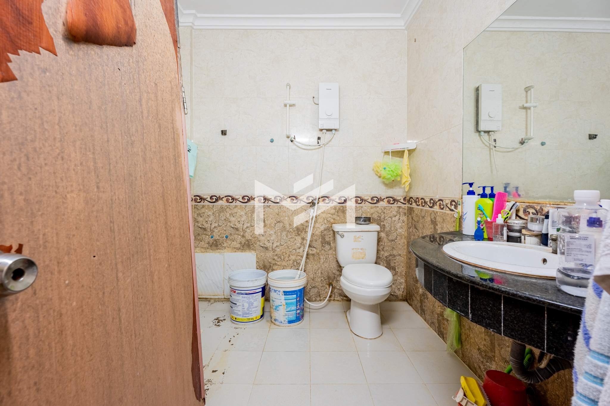 A Cambodian-style Pteas Lveng (Flat House) with the typical “I-shape” layout. The ground floor offers an open hall with a back kitchen and a small backyard. Additional levels include a mezzanine floor, first floor, second floor, and an open rooftop. There is about 2m of front yard space for parking. This is a great option for buyers looking for an affordable house to renovate and live in, located close to the city yet within a quiet, low-density, and purely local neighborhood. The property comes with a hard title and is conveniently situated near the Russian Market area.