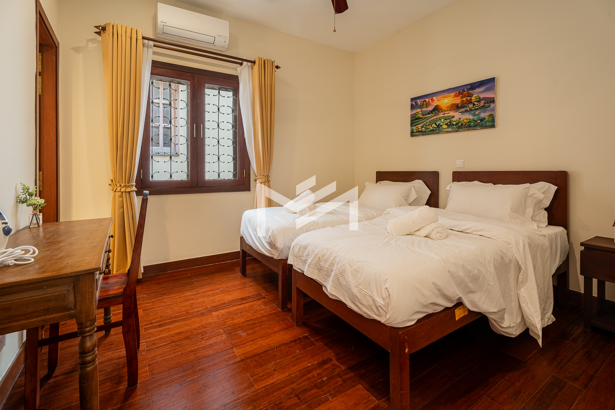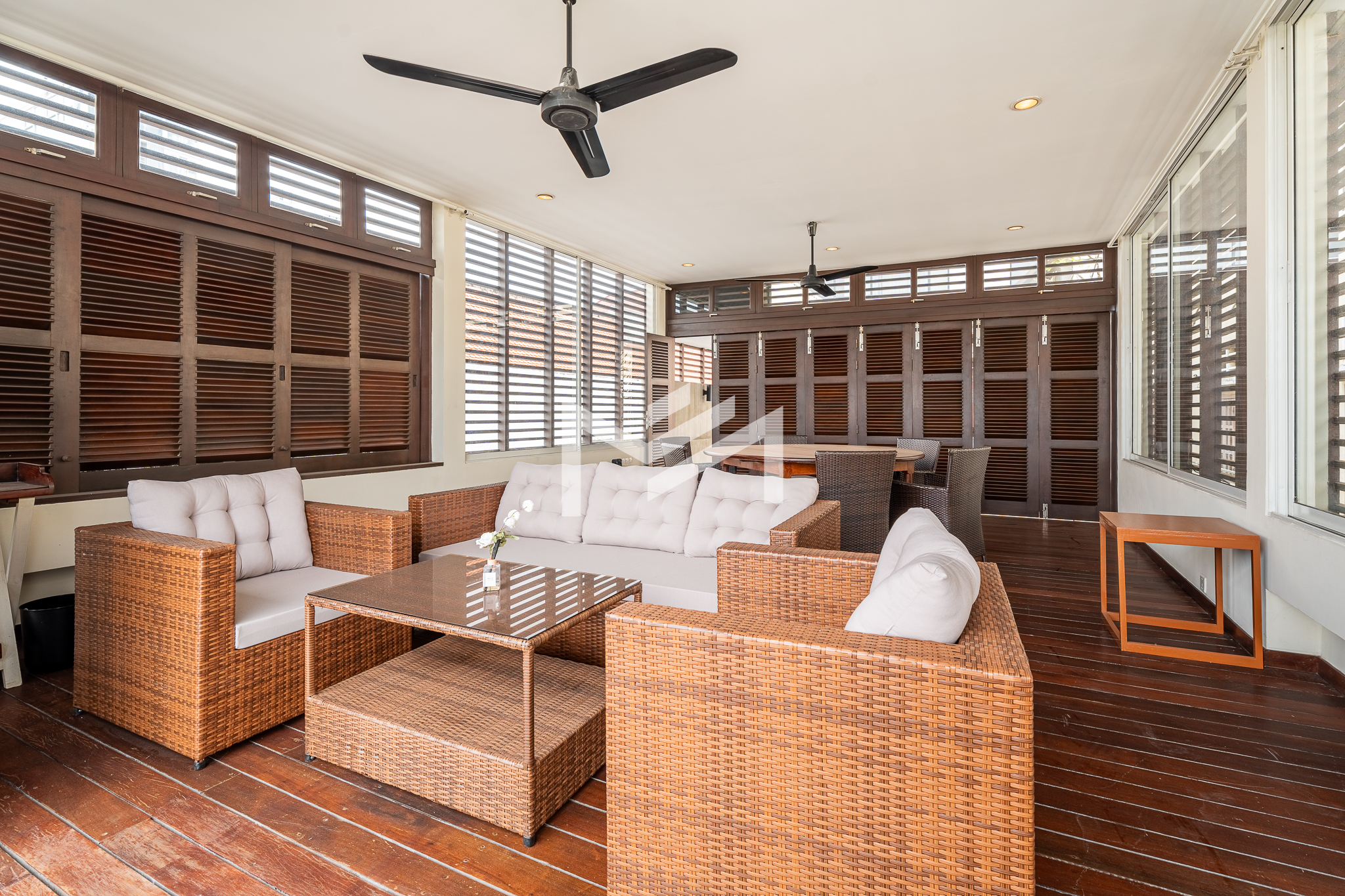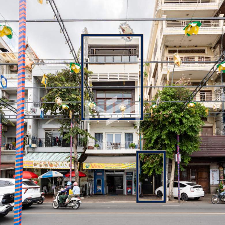 A rare opportunity along Sisowath Quay (Riverside), this charming side-unit flat is now available for rent. The property enjoys abundant natural light and excellent cross ventilation from both the front and side. With direct street access through a private front gate, it offers the rare convenience of secure motorbike parking right at your doorstep. Recently renovated and well maintained with regular weekly cleaning, it stands out as a unique rental option in one of Phnom Penh’s most sought-after riverside locations, full of charm and character. The lower floor features two ensuite bedrooms, an open-concept living room and kitchen, and a balcony with river views. The mezzanine level includes a third ensuite bedroom and an office area, while the top floor offers a laundry and utility space at the back, a mini garden in the middle, and a front terrace overlooking the Mekong River—creating a distinctive multi-level living experience ideal for comfortable riverside living.