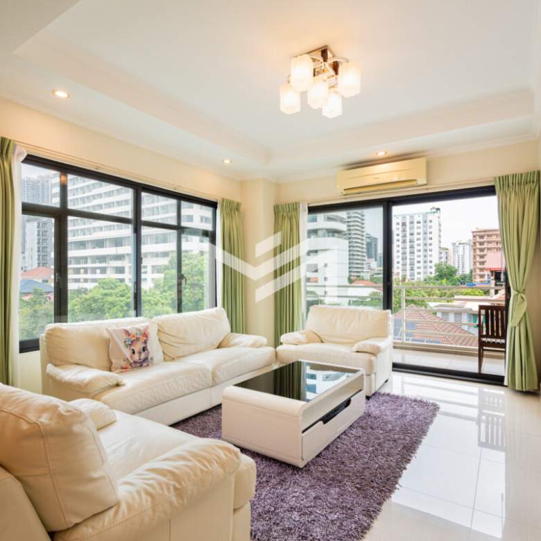 Spacious apartment featuring a large living room, big balcony with plenty of natural airflow, and a generously sized kitchen ideal for comfortable cooking. Residents can enjoy rooftop facilities including a gym and swimming pool, all in a prime BKK1 location well-known for its expat-friendly community.