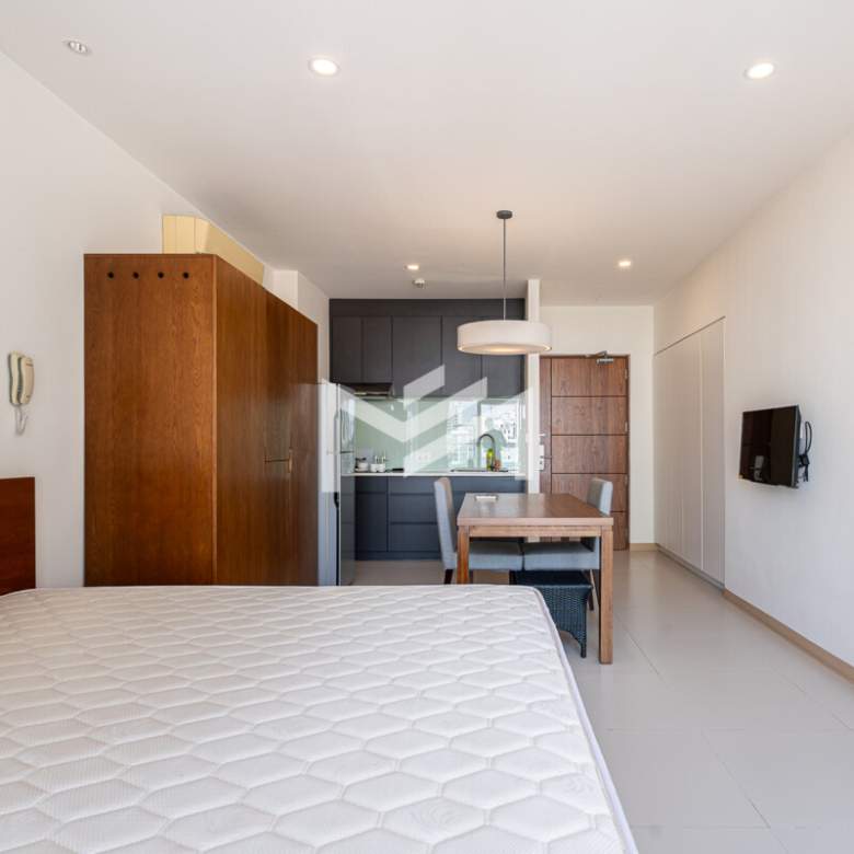 This compact yet warm unit features a modern gray color style with Japanese management, ensuring a neat and professional living experience. It includes a well-sized kitchen, a big closet, a private balcony, and elegant wood flooring for added comfort.Drinking water is available at $1.22 per 20L. Located in expat-friendly BKK1, all amenities are within walking distance, providing both convenience and accessibility.