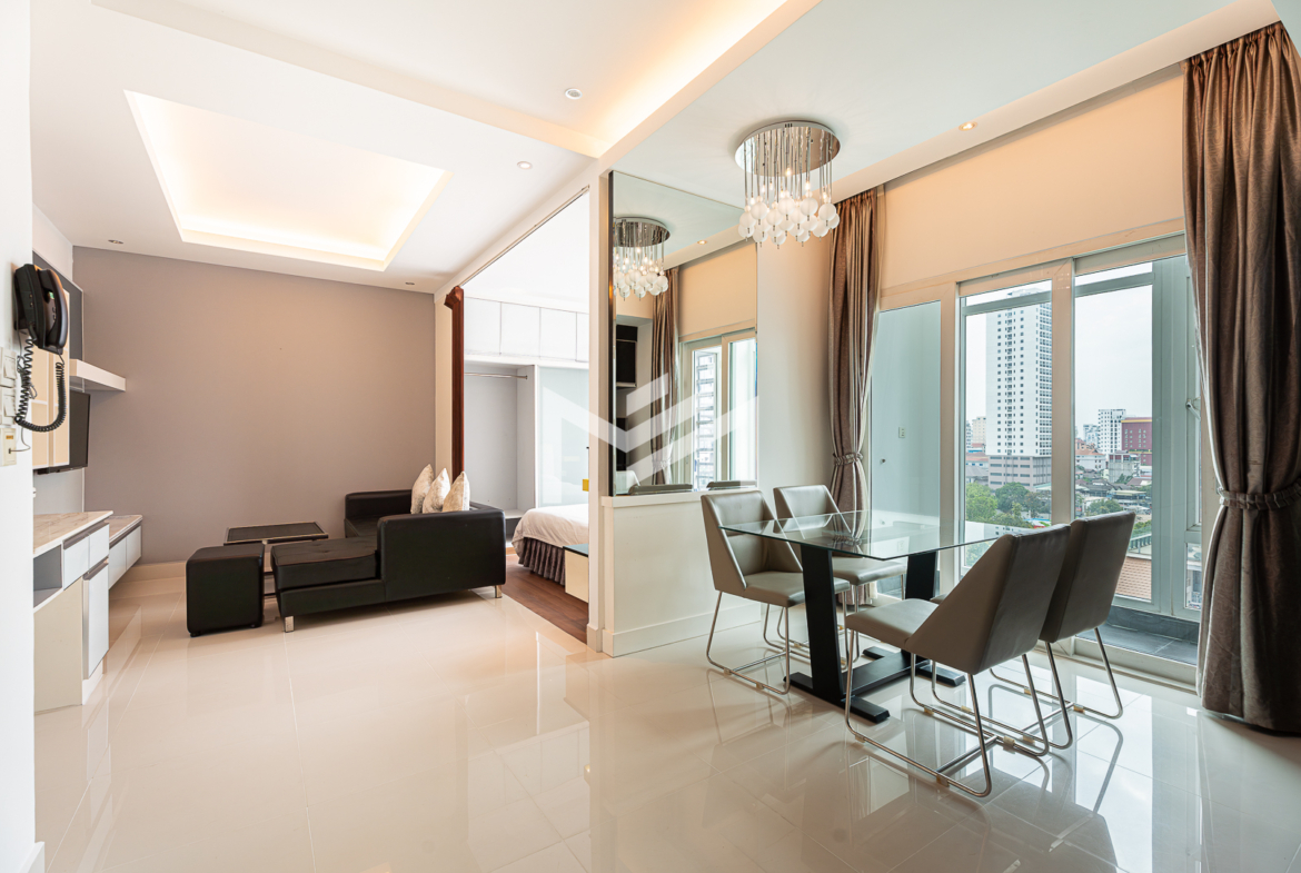 This spacious studio apartment offers the perfect combination of comfort and convenience in the sought-after BKK1 area. Situated in a low-rise condominium building, this fully furnished corner unit boasts a bright and airy atmosphere with large windows that let in plenty of natural light. Designed with singles or couples in mind, the apartment features a proper-sized kitchen, ample wardrobe space, and a functional layout that feels as spacious as a one-bedroom condo. Perfectly suited for those seeking a stylish and cozy home in the heart of the city, this property is ready to move in and enjoy.