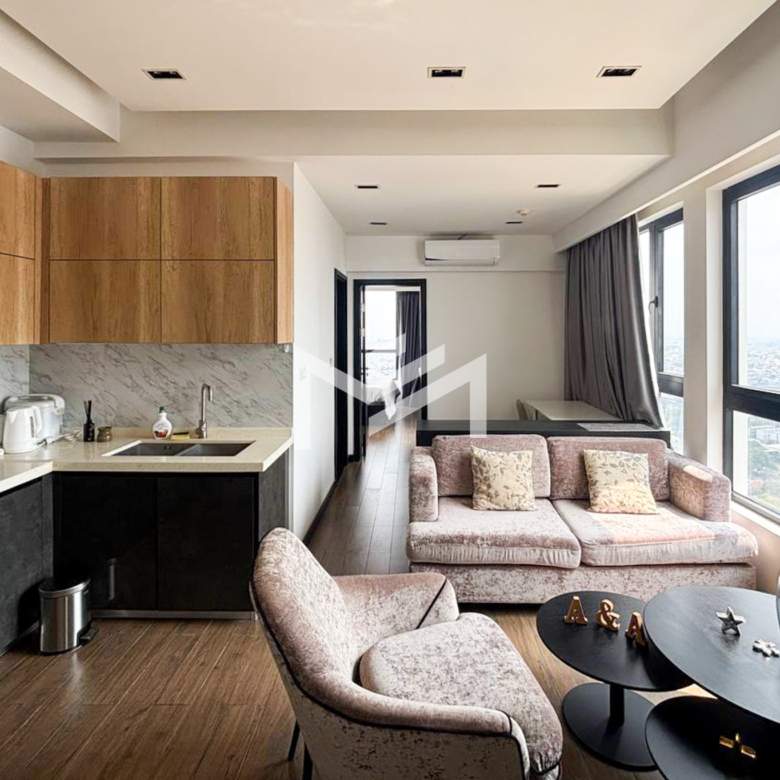 Developed by Hokong Developer, this condominium is located just south of BKK1 in a quiet residential alley off Norodom Boulevard. Peaceful and away from the crowds, the corner unit enjoys a southeast orientation with excellent natural light and airflow. Fully furnished and currently tenanted, it offers a ready opportunity to purchase and start receiving rental income immediately.