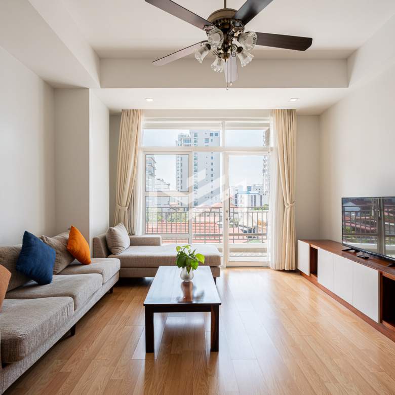 This extra-large one-bedroom unit offers a spacious open living area with a big kitchen equipped with a built-in oven. The living room opens to a balcony, providing fresh air and natural light. A separate utility room includes a washing machine for added convenience. The large bedroom features a big closet and an attached bathroom for privacy and comfort. Located just 2 minutes from Aeon Mall 1, Bassac Lane, and BKK1, and near Independence Monument, this home offers both space and prime city convenience.
