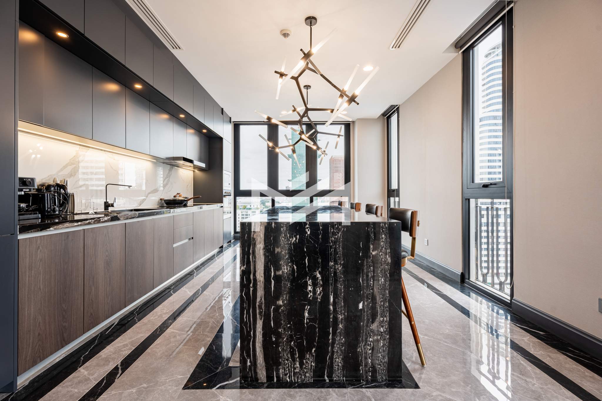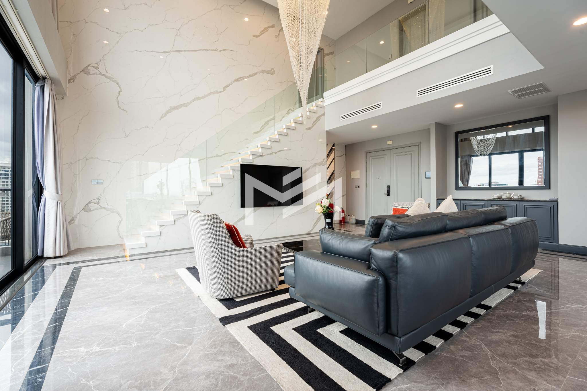 This stunning northeast-facing duplex penthouse occupies the 19th and 20th floors, featuring high ceilings, abundant natural light, and excellent airflow. The unit is fully furnished with premium fittings and finishes, including a luxury kitchen with ample storage space. Each bedroom is generously sized with well-designed closets for maximum comfort.