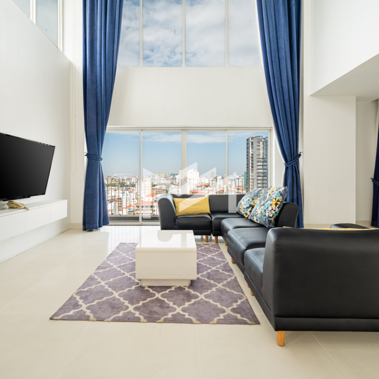 A beautifully furnished home, ready for you to move in with ease. Step into a bright and modern living space featuring a western-standard kitchen with built-in oven and electronic stove, ample wardrobe storage, and a sun-lit balcony. The high ceiling in the living room enhances the sense of space, while the duplex layout offers comfort and privacy. Enjoy an excellent view from your own large private terrace—perfect for relaxing or entertaining. Residents can access resort-style amenities, including a rooftop swimming pool, fully equipped gym, professional cleaning service, and 24/7 security. Ideally positioned near the Chinese Embassy in the Olympic area, this home is perfect for anyone seeking a stylish and comfortable lifestyle in the west of Phnom Penh.