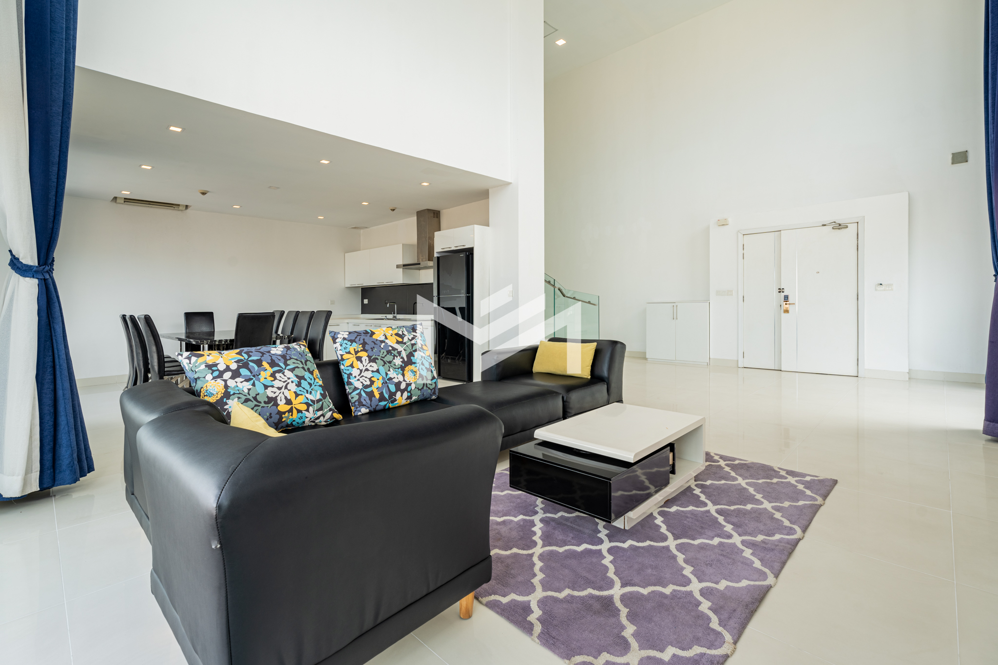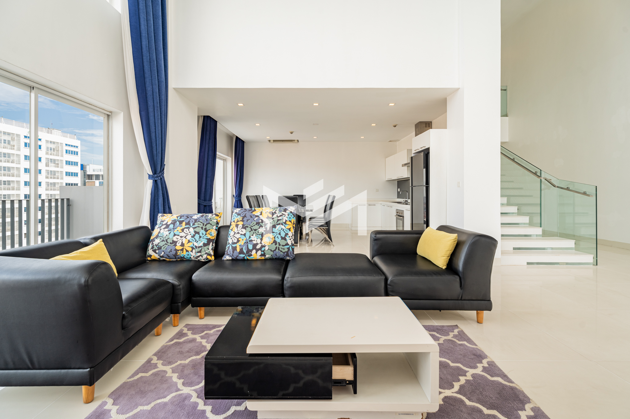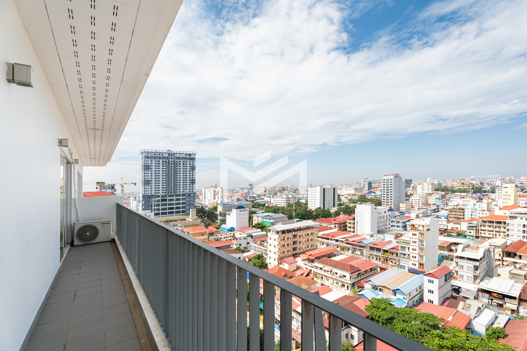 A beautifully furnished home, ready for you to move in with ease. Step into a bright and modern living space featuring a western-standard kitchen with built-in oven and electronic stove, ample wardrobe storage, and a sun-lit balcony. The high ceiling in the living room enhances the sense of space, while the duplex layout offers comfort and privacy. Enjoy an excellent view from your own large private terrace—perfect for relaxing or entertaining. Residents can access resort-style amenities, including a rooftop swimming pool, fully equipped gym, professional cleaning service, and 24/7 security. Ideally positioned near the Chinese Embassy in the Olympic area, this home is perfect for anyone seeking a stylish and comfortable lifestyle in the west of Phnom Penh.