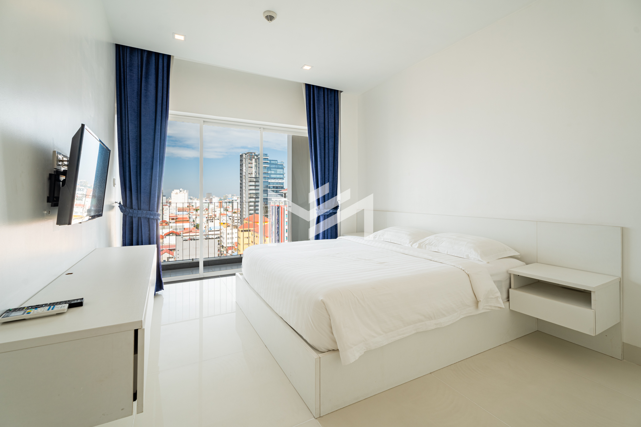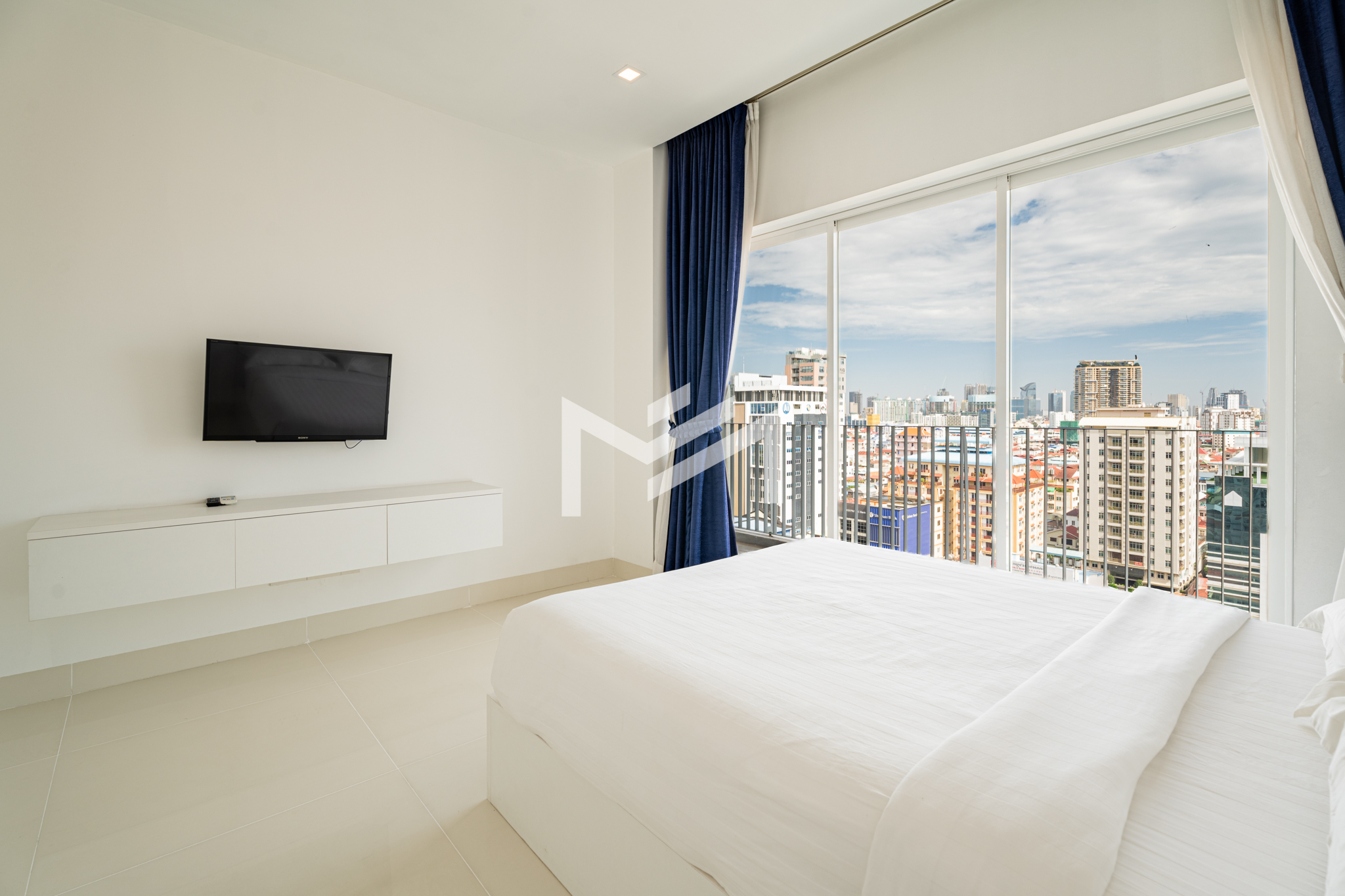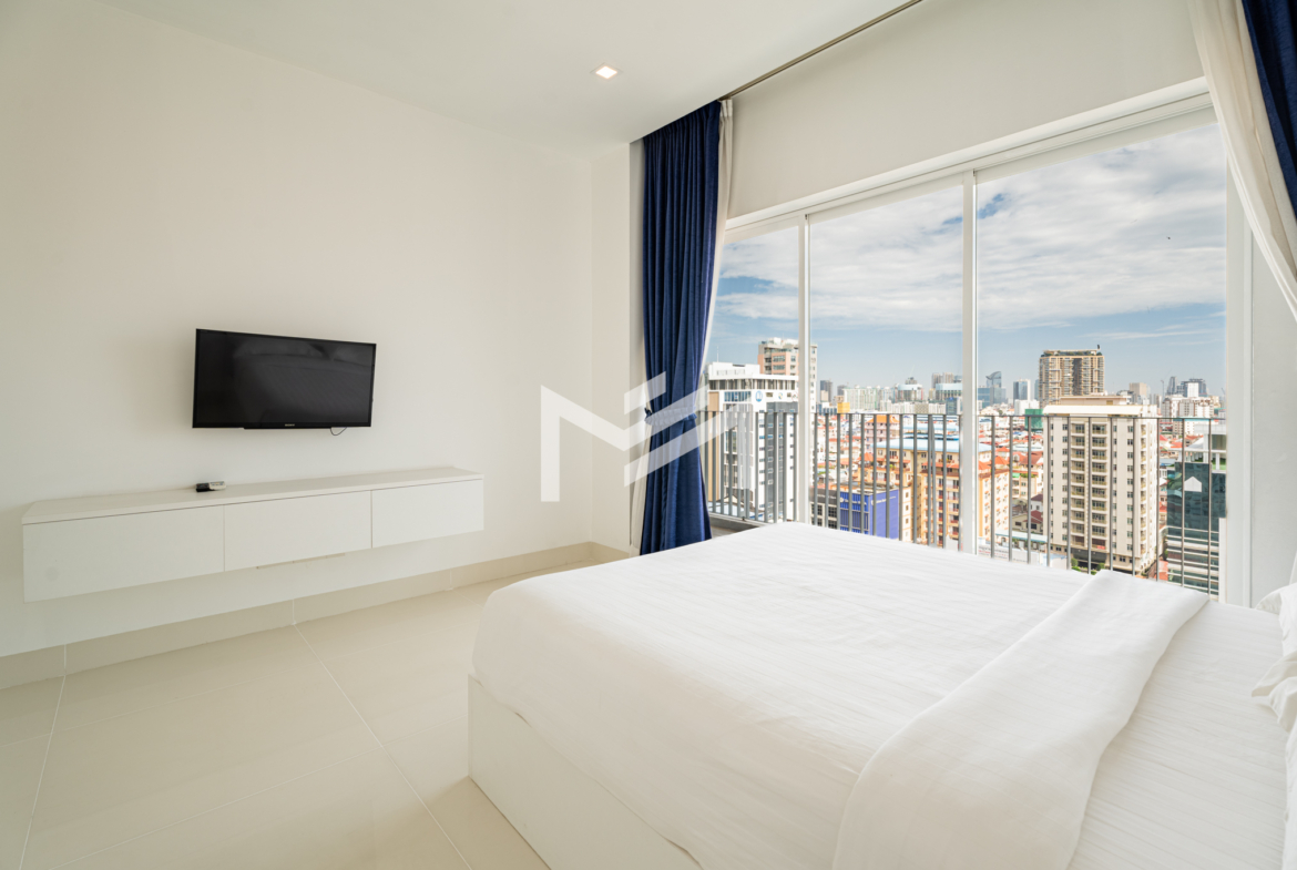 A beautifully furnished home, ready for you to move in with ease. Step into a bright and modern living space featuring a western-standard kitchen with built-in oven and electronic stove, ample wardrobe storage, and a sun-lit balcony. The high ceiling in the living room enhances the sense of space, while the duplex layout offers comfort and privacy. Enjoy an excellent view from your own large private terrace—perfect for relaxing or entertaining. Residents can access resort-style amenities, including a rooftop swimming pool, fully equipped gym, professional cleaning service, and 24/7 security. Ideally positioned near the Chinese Embassy in the Olympic area, this home is perfect for anyone seeking a stylish and comfortable lifestyle in the west of Phnom Penh.