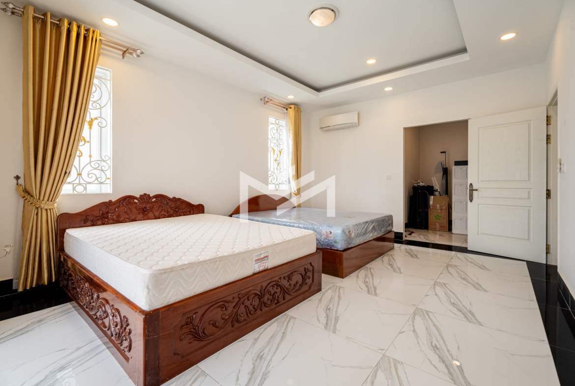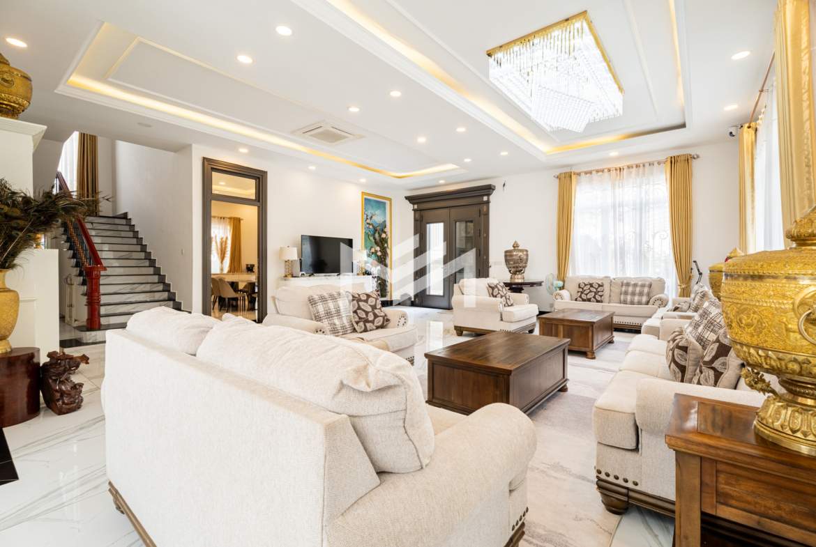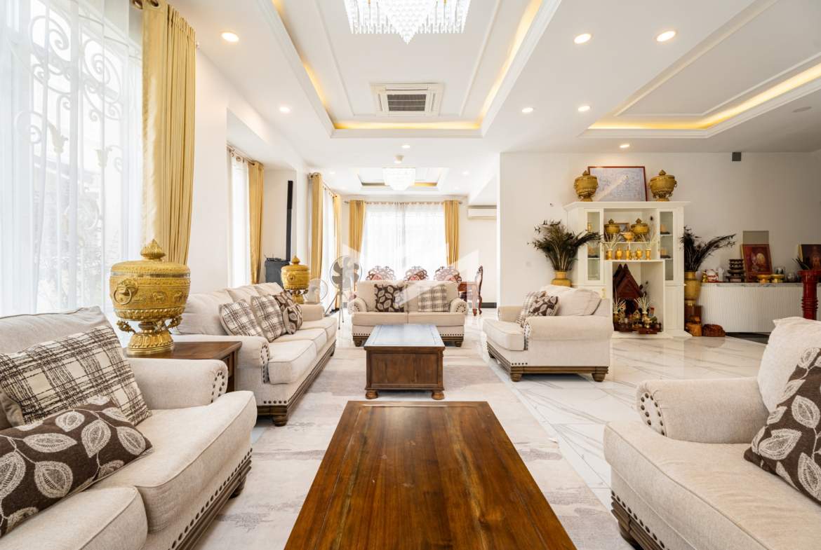 This king villa showcases a classic architectural design and comes fully furnished, offering both elegance and comfort. Situated within a secure gated community with 24-hour security, it ensures privacy and peace of mind. Conveniently located just 20 minutes from the CBD, the property features parking for up to seven cars and is fully air-conditioned throughout. It comprises seven bedrooms plus two maid rooms, two spacious living rooms, and both a dry and wet kitchen — making it an ideal choice for a large family or company residence.