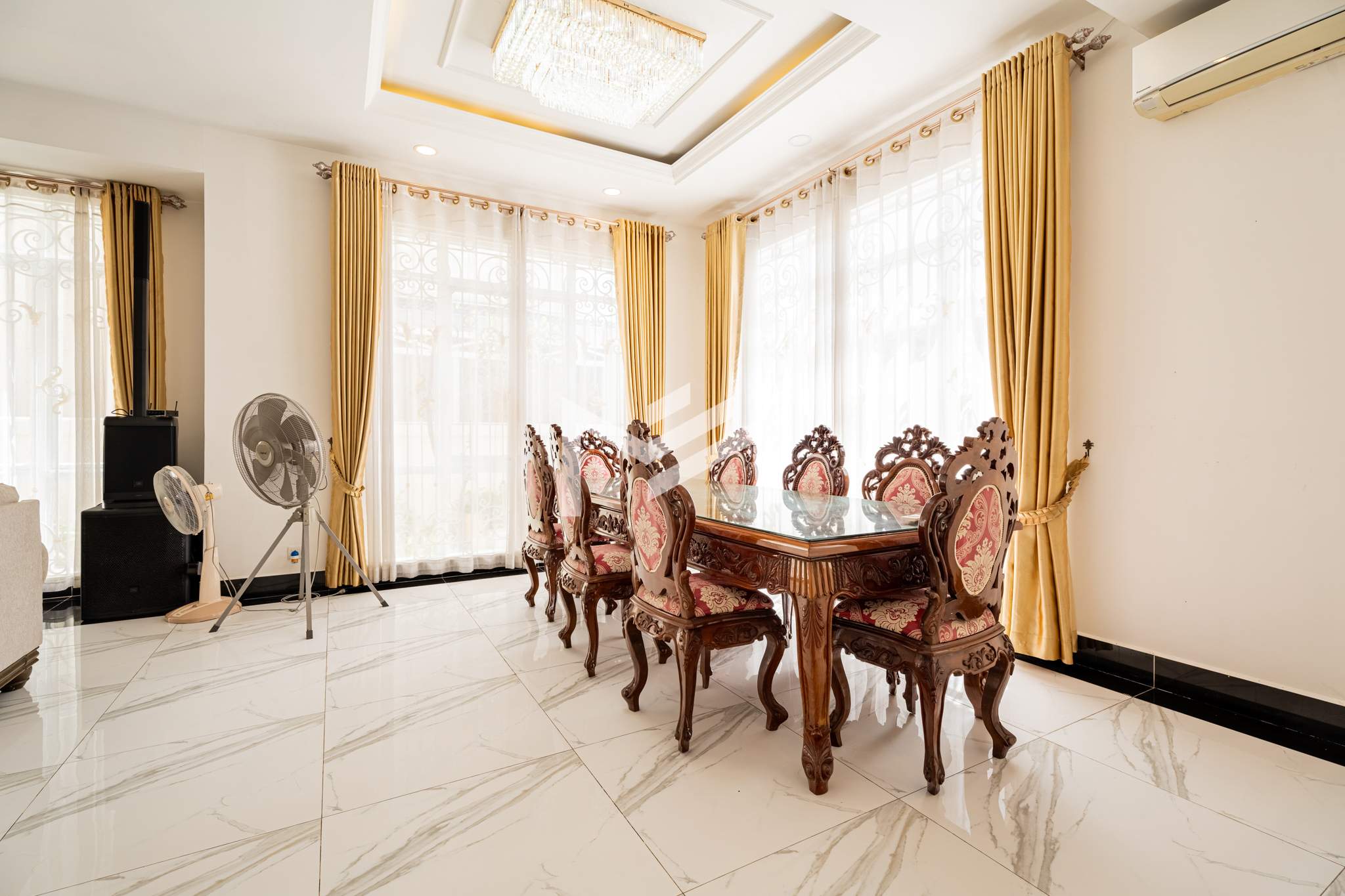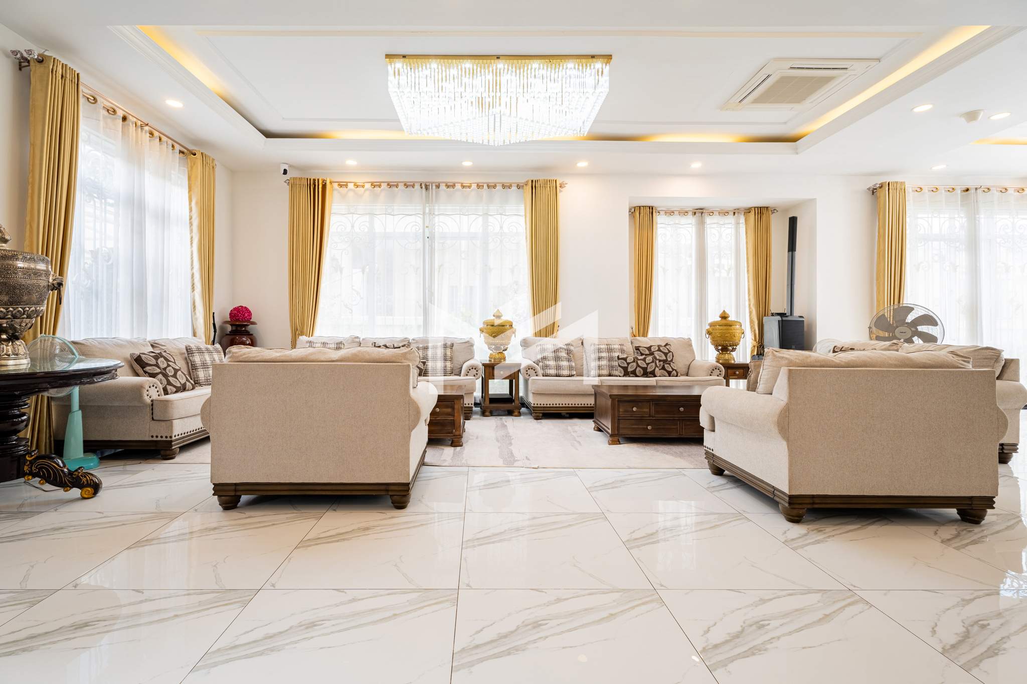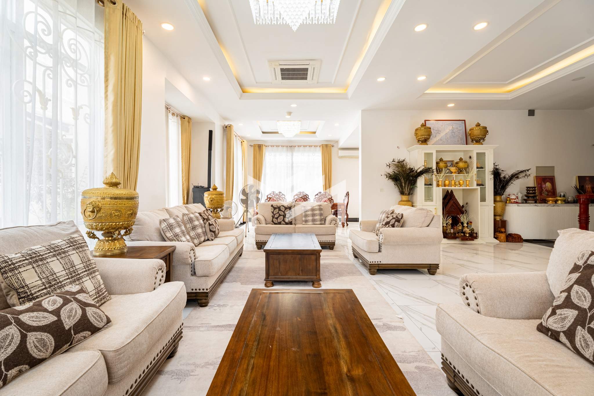This king villa showcases a classic architectural design and comes fully furnished, offering both elegance and comfort. Situated within a secure gated community with 24-hour security, it ensures privacy and peace of mind. Conveniently located just 20 minutes from the CBD, the property features parking for up to seven cars and is fully air-conditioned throughout. It comprises seven bedrooms plus two maid rooms, two spacious living rooms, and both a dry and wet kitchen — making it an ideal choice for a large family or company residence.