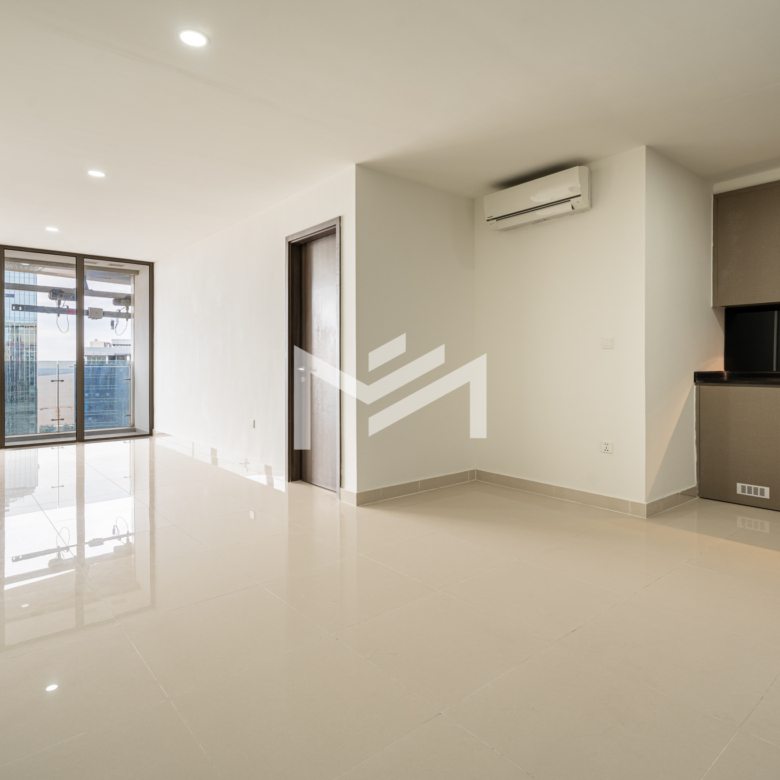 Semi-furnished 2-bedroom unit with additional study room that can function as a third bedroom, enclosed with a sliding glass door. Layout features two spacious bedrooms separated by a central living room, offering privacy and balance. Balcony opens to river views. Ideal for personal customization. Prime location near the Australian Embassy, NagaWorld, and just a 5-minute walk to Aeon Mall.