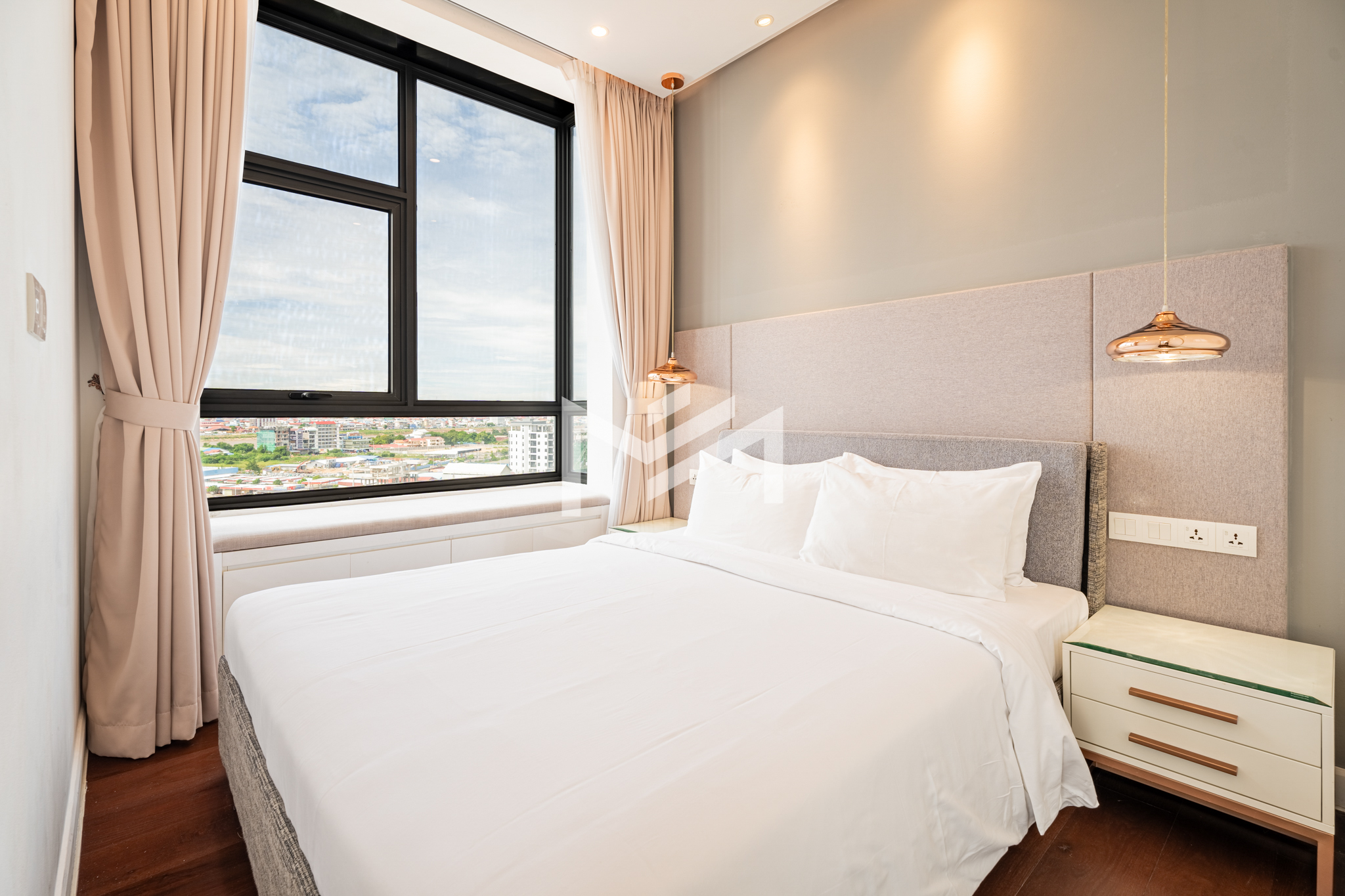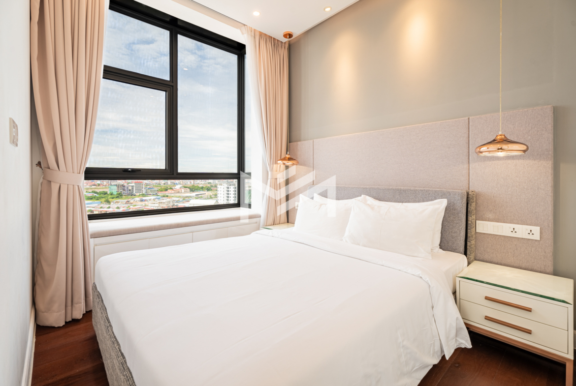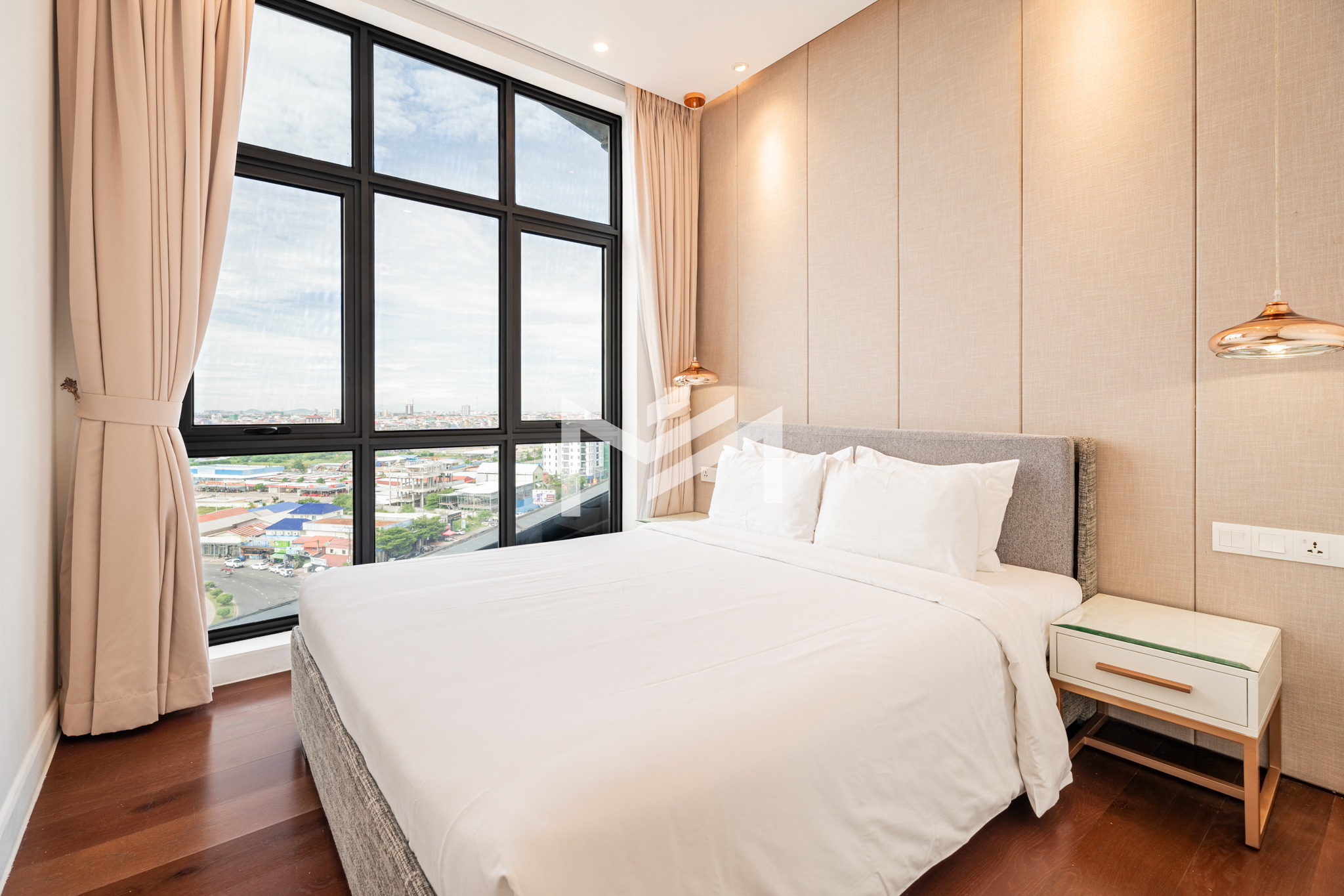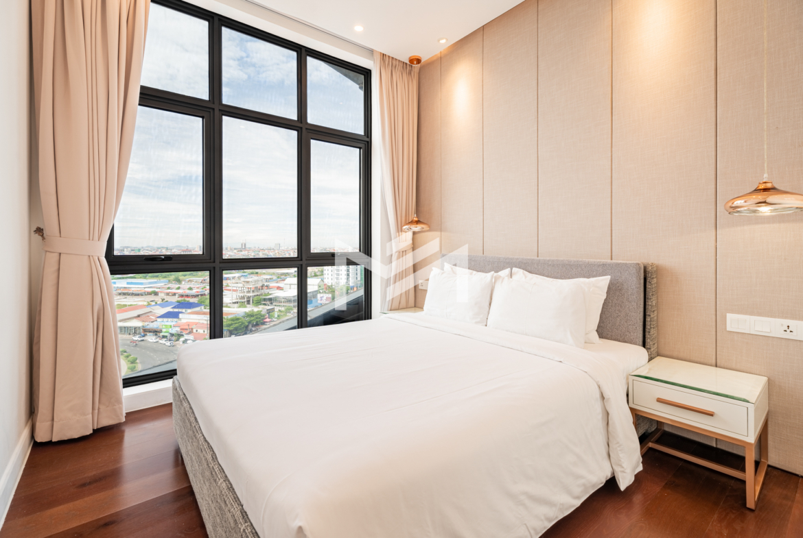 Experience modern city living in this luxury condo located just 5 minutes from the CBD, near the Chroy Changvar roundabout. The unit features a fully equipped western-style kitchen with a built-in oven, generous cabinet space, and a front-load washing machine. Large windows allow natural light to flood the space while offering an excellent city view. The building is well managed and provides residents with premium facilities including a rooftop gym, swimming pool, sauna, and a kids' playground. Perfect for professionals, couples, or investors seeking convenience, lifestyle, and value in a high-growth area.