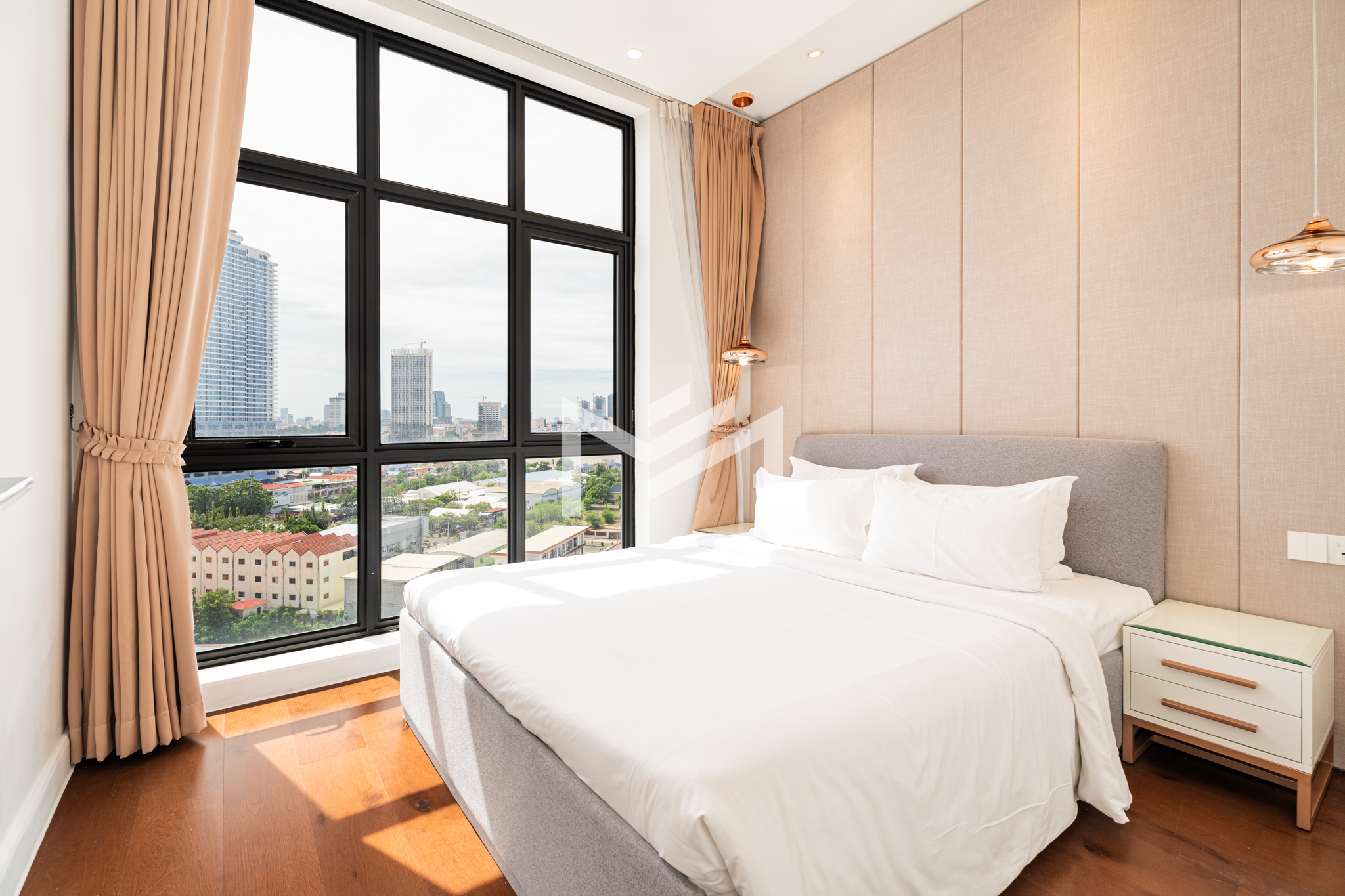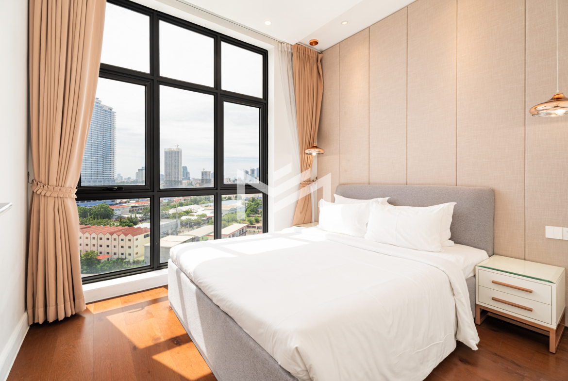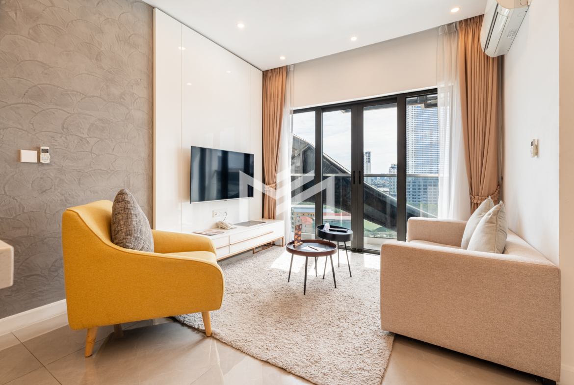 Experience modern city living in this luxury condo located just 5 minutes from the CBD, near the Chroy Changvar roundabout. The unit features a fully equipped western-style kitchen with a built-in oven, generous cabinet space, and a front-load washing machine. Large windows allow natural light to flood the space while offering an excellent city view. The building is well managed and provides residents with premium facilities including a rooftop gym, swimming pool, sauna, and a kids' playground. Perfect for professionals, couples, or investors seeking convenience, lifestyle, and value in a high-growth area.