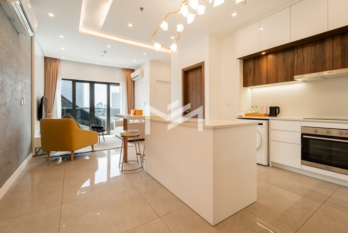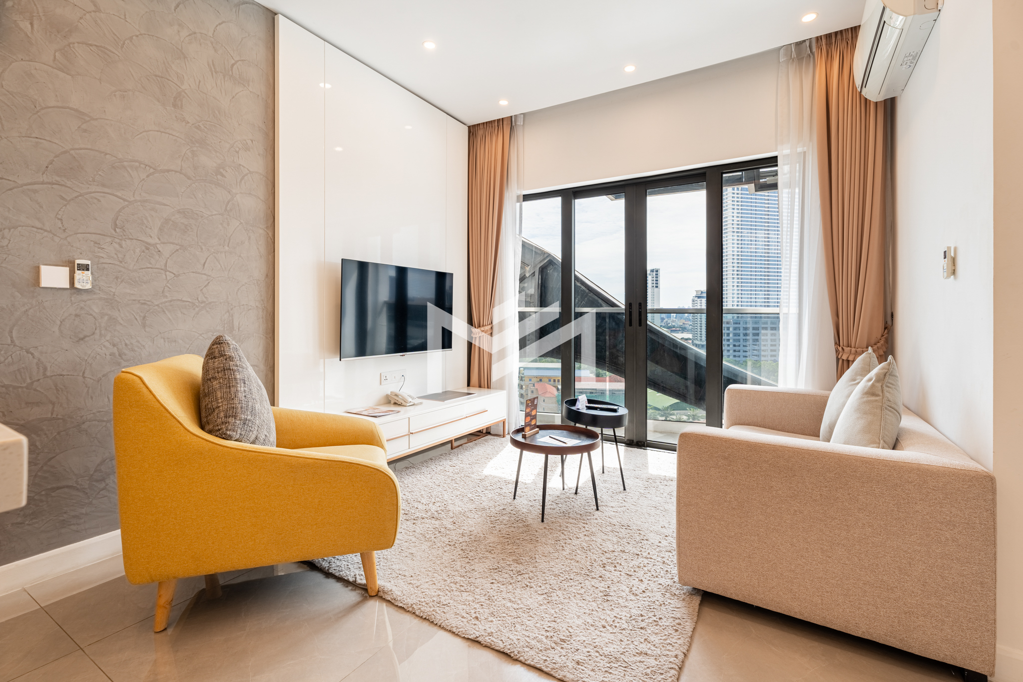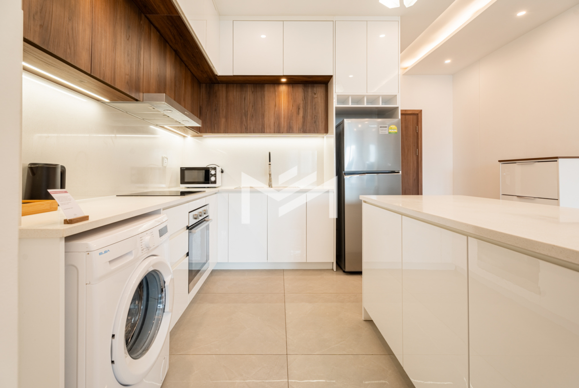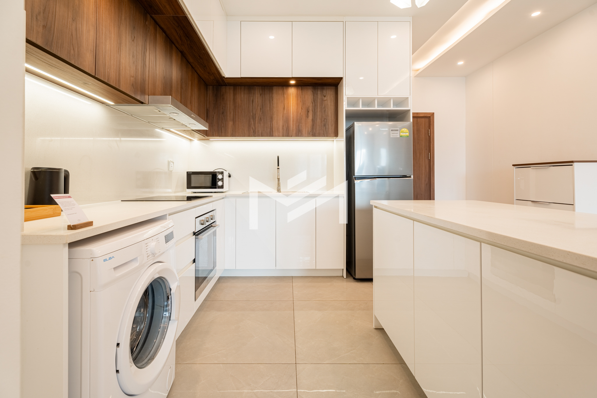 Experience modern city living in this luxury condo located just 5 minutes from the CBD, near the Chroy Changvar roundabout. The unit features a fully equipped western-style kitchen with a built-in oven, generous cabinet space, and a front-load washing machine. Large windows allow natural light to flood the space while offering an excellent city view. The building is well managed and provides residents with premium facilities including a rooftop gym, swimming pool, sauna, and a kids' playground. Perfect for professionals, couples, or investors seeking convenience, lifestyle, and value in a high-growth area.