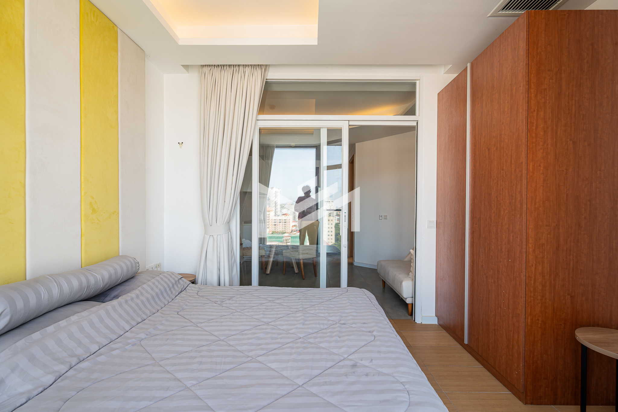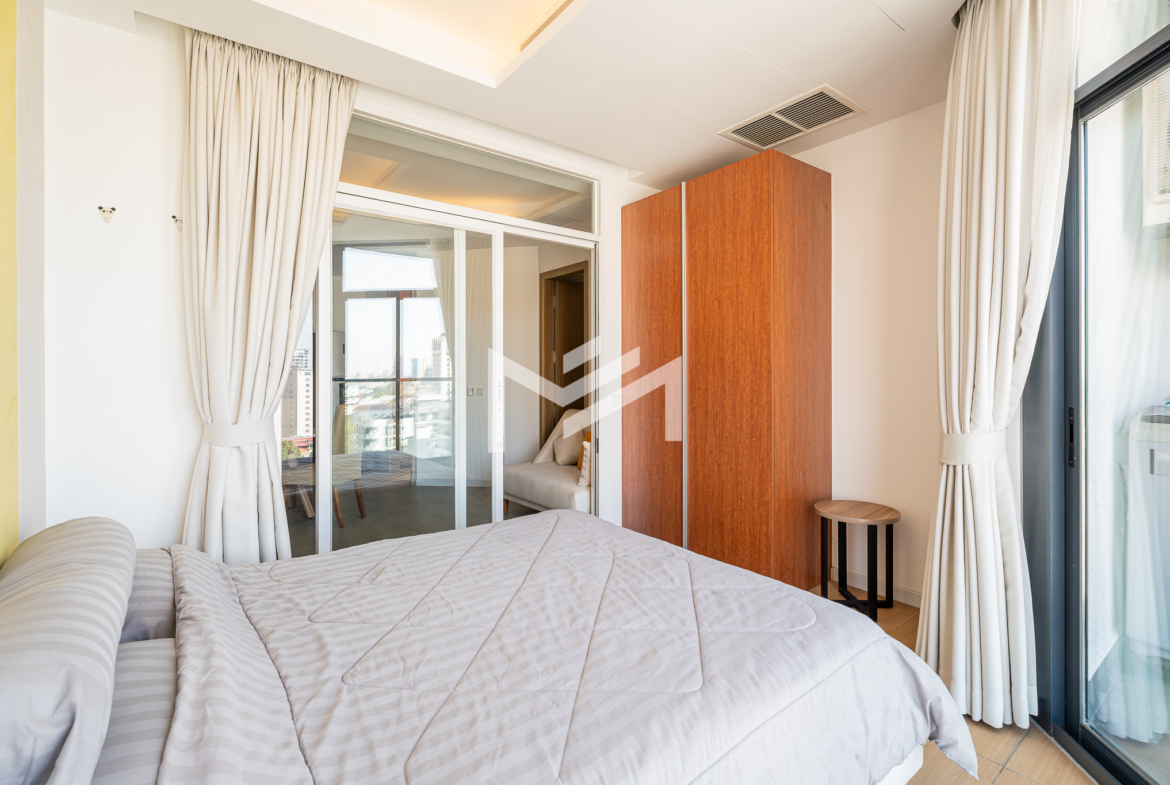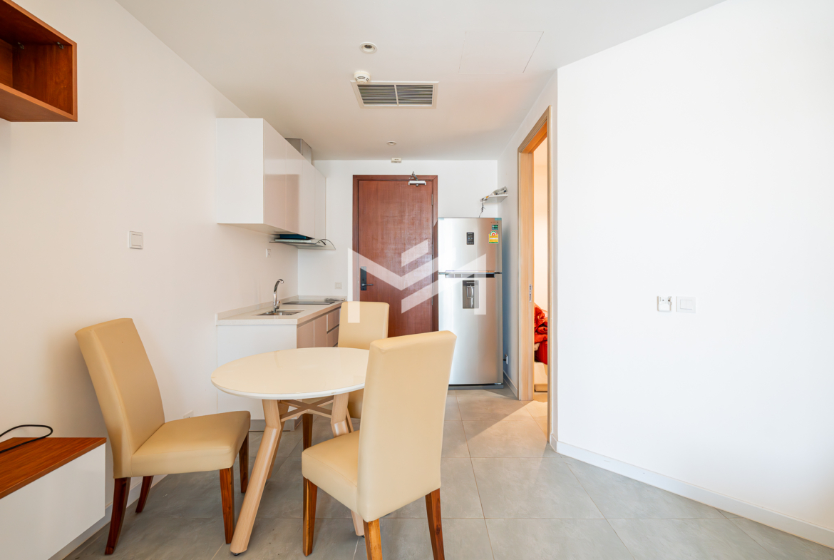 Fully furnished, compact, and warm, this cozy unit is thoughtfully designed to function either as a two-bedroom layout or a one-bedroom with a dedicated office room. The interior is tastefully finished with high-quality materials and smart space planning, creating a comfortable and welcoming living environment. The unit is ready to move in, ideal for professionals or couples seeking convenience and comfort. Residents can enjoy rooftop facilities including a swimming pool, gym, steam room, and sauna, available with an additional usage charge. The property is located directly opposite Aeon Mall, tucked away in a quiet residential alley, offering a peaceful and private living atmosphere while remaining close to shopping, dining, and daily conveniences.