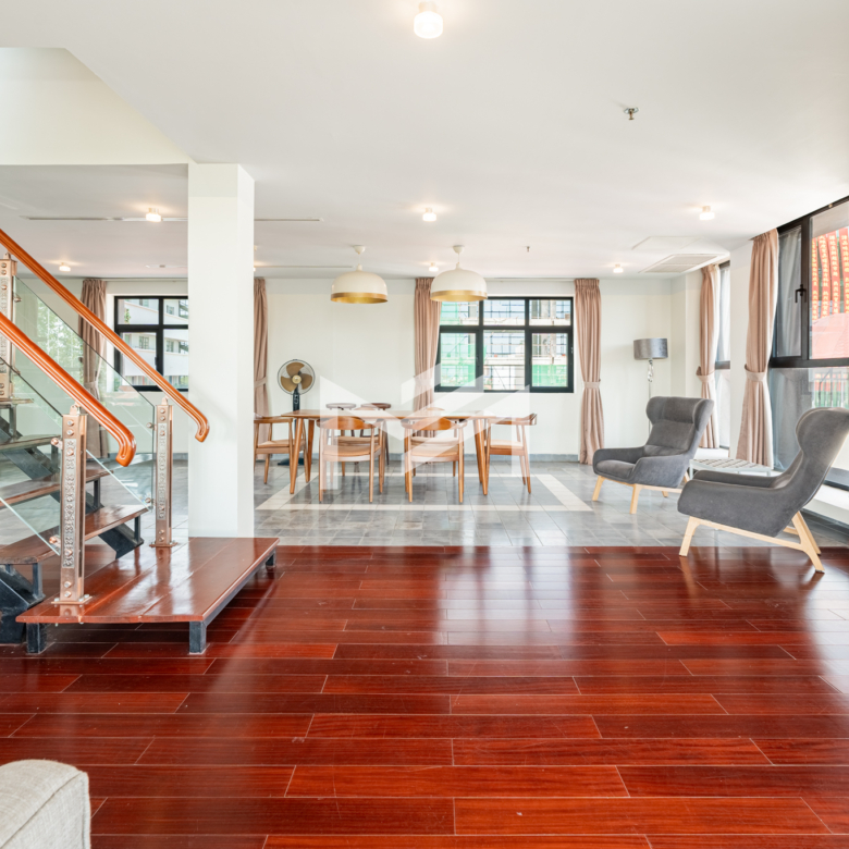 Discover this exceptional duplex corner penthouse, perfectly positioned to enjoy morning sunrise, panoramic river views, and a truly calm, peaceful atmosphere. Designed for comfort and luxury, the home features a large terrace, expansive living room, and elegant wood flooring throughout. This beautiful low-rise building feels like a private sanctuary in the heart of the city. Enjoy a refreshing swim in the serene pool, shaded by mature trees, giving you the feeling of being in a resort. Cleaning service and bed-linen change are included, ensuring a hassle-free lifestyle, along with 24-hour security for complete peace of mind. Located in the CBD near Wat Phnom, steps away from Exchange Square, Vattanac Capital, and less than 5 minutes to Central Market, this penthouse offers unmatched convenience in one of Phnom Penh’s most vibrant and historic districts.