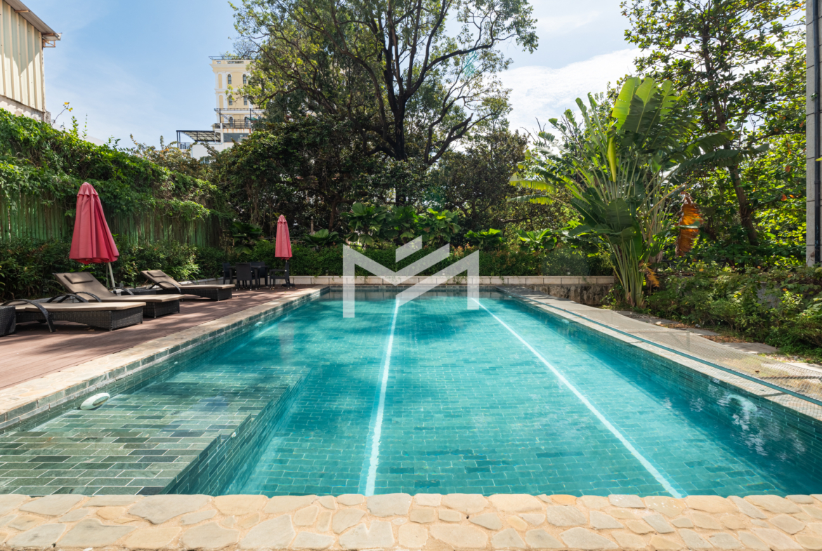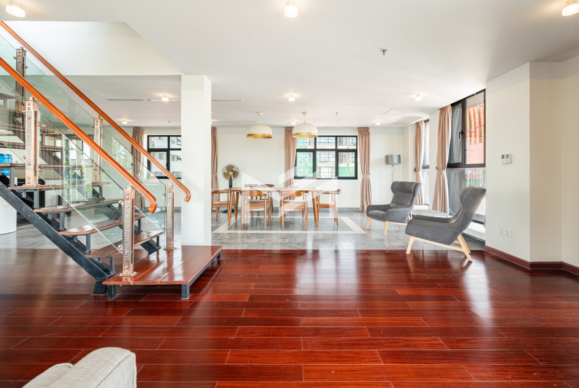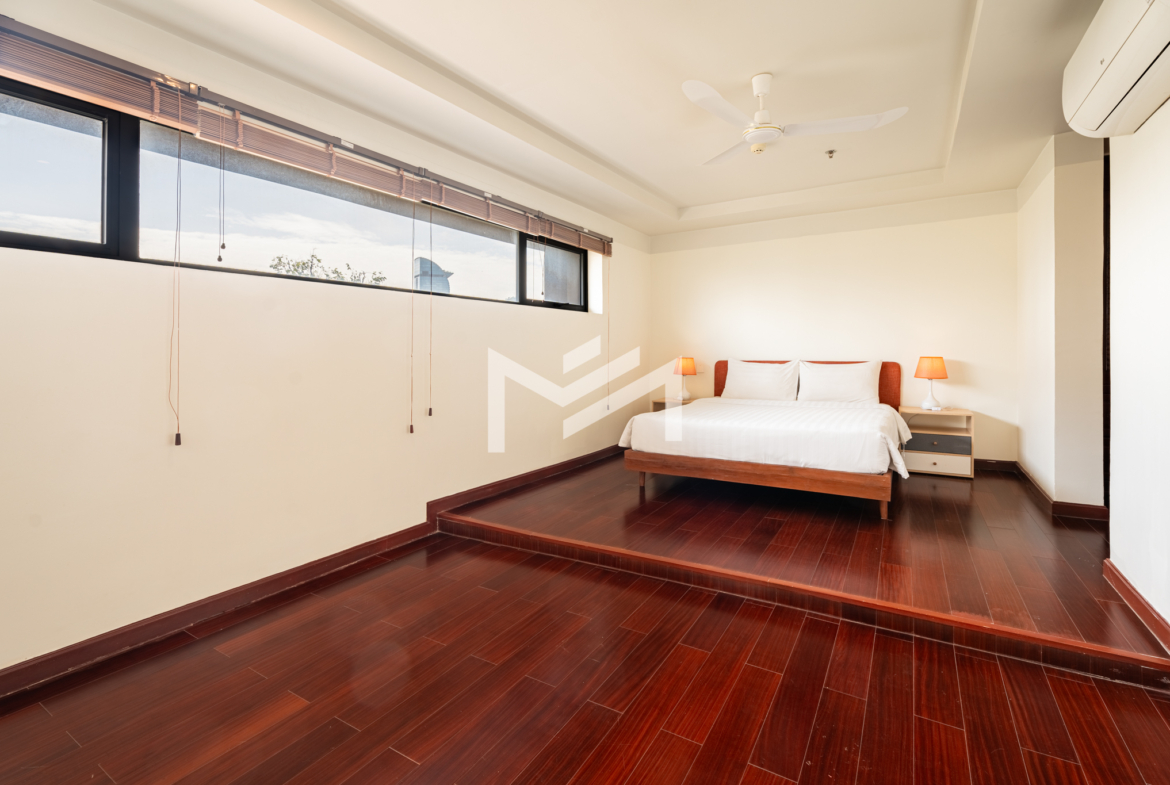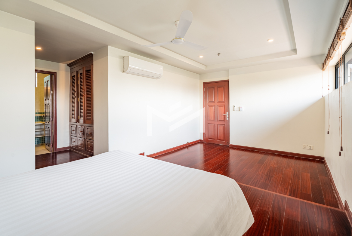 Discover this exceptional duplex corner penthouse, perfectly positioned to enjoy morning sunrise, panoramic river views, and a truly calm, peaceful atmosphere. Designed for comfort and luxury, the home features a large terrace, expansive living room, and elegant wood flooring throughout. This beautiful low-rise building feels like a private sanctuary in the heart of the city. Enjoy a refreshing swim in the serene pool, shaded by mature trees, giving you the feeling of being in a resort. Cleaning service and bed-linen change are included, ensuring a hassle-free lifestyle, along with 24-hour security for complete peace of mind. Located in the CBD near Wat Phnom, steps away from Exchange Square, Vattanac Capital, and less than 5 minutes to Central Market, this penthouse offers unmatched convenience in one of Phnom Penh’s most vibrant and historic districts.