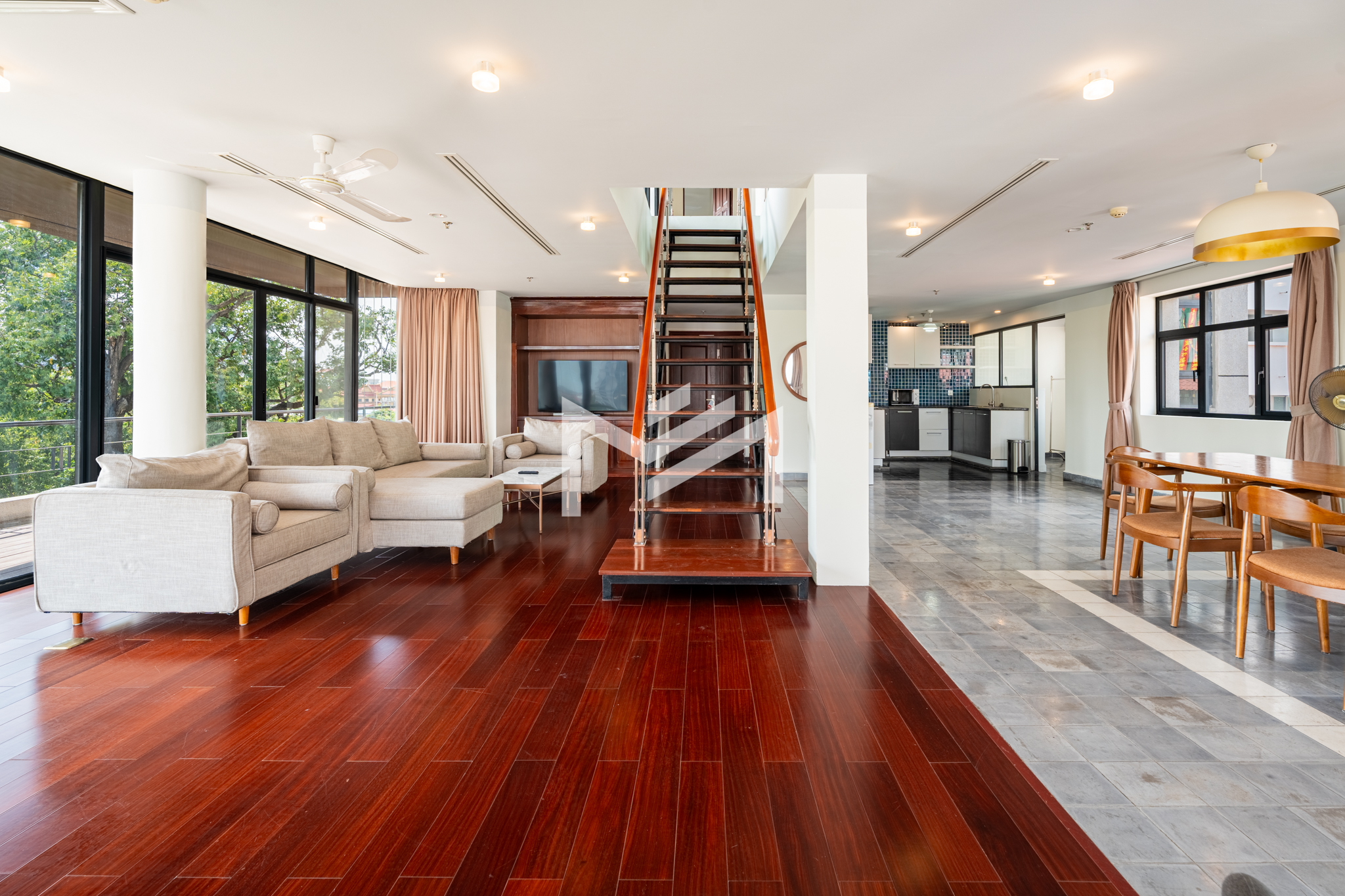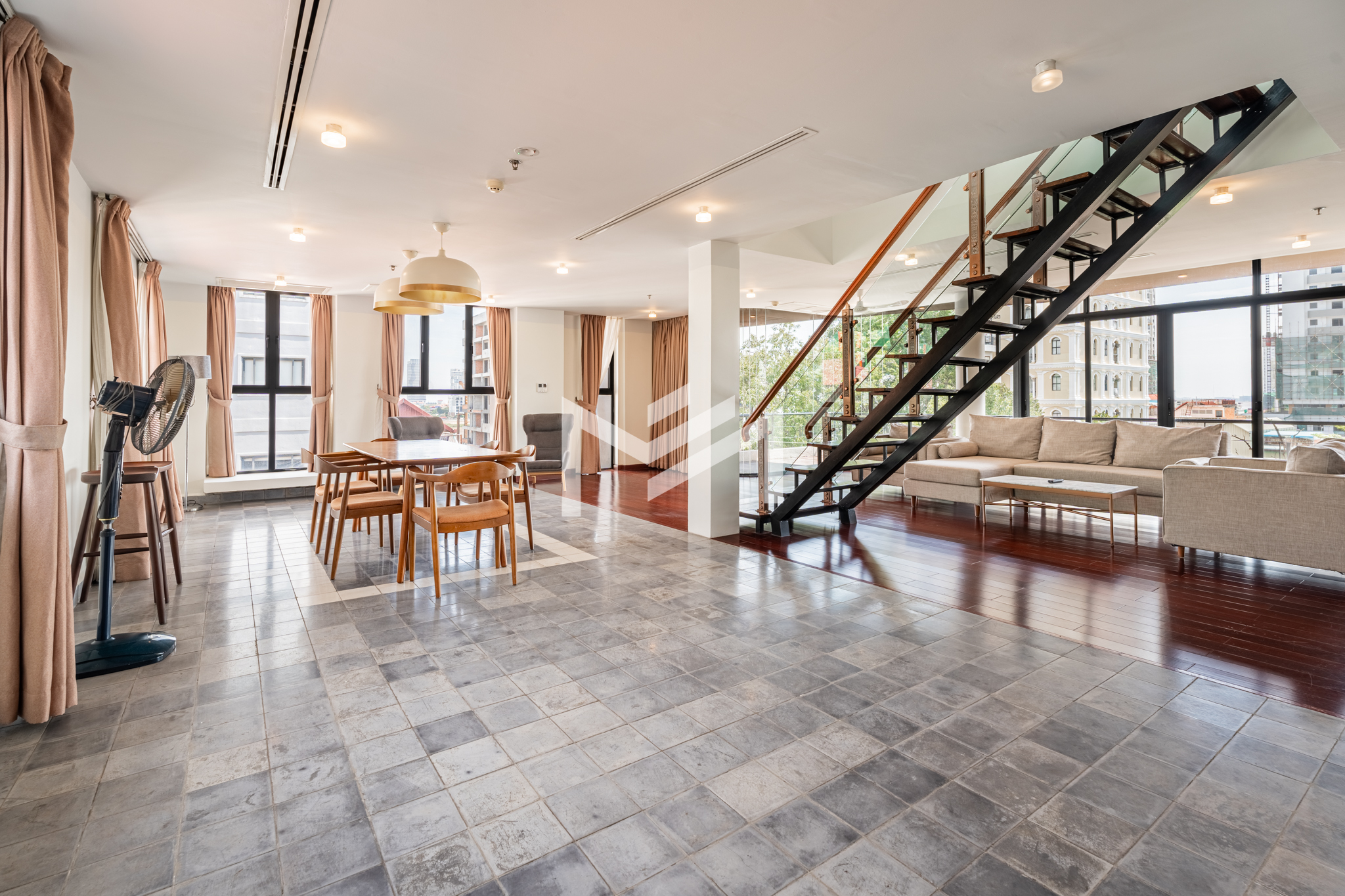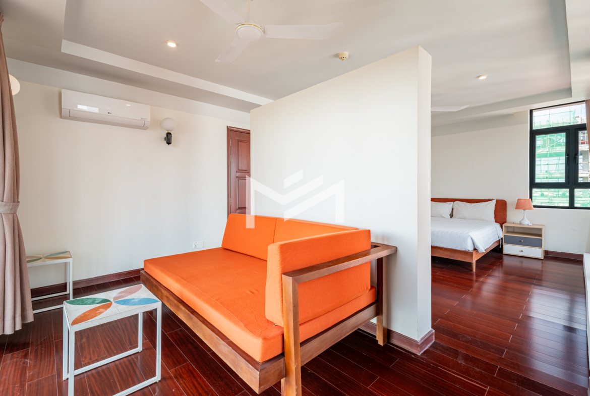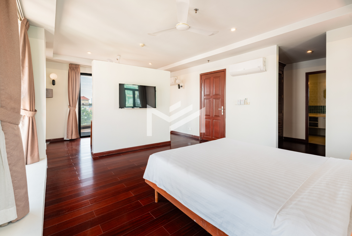 Discover this exceptional duplex corner penthouse, perfectly positioned to enjoy morning sunrise, panoramic river views, and a truly calm, peaceful atmosphere. Designed for comfort and luxury, the home features a large terrace, expansive living room, and elegant wood flooring throughout. This beautiful low-rise building feels like a private sanctuary in the heart of the city. Enjoy a refreshing swim in the serene pool, shaded by mature trees, giving you the feeling of being in a resort. Cleaning service and bed-linen change are included, ensuring a hassle-free lifestyle, along with 24-hour security for complete peace of mind. Located in the CBD near Wat Phnom, steps away from Exchange Square, Vattanac Capital, and less than 5 minutes to Central Market, this penthouse offers unmatched convenience in one of Phnom Penh’s most vibrant and historic districts.