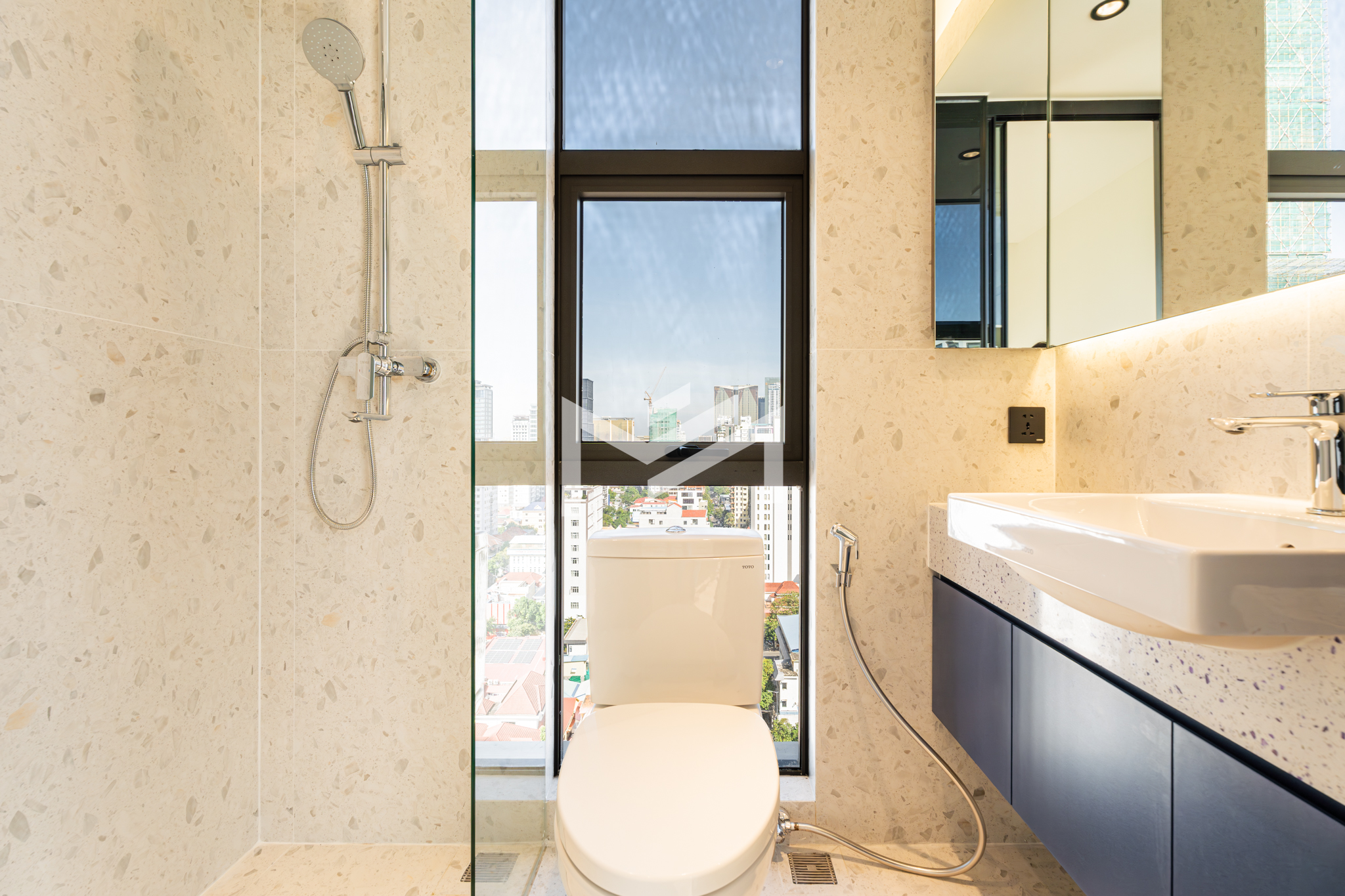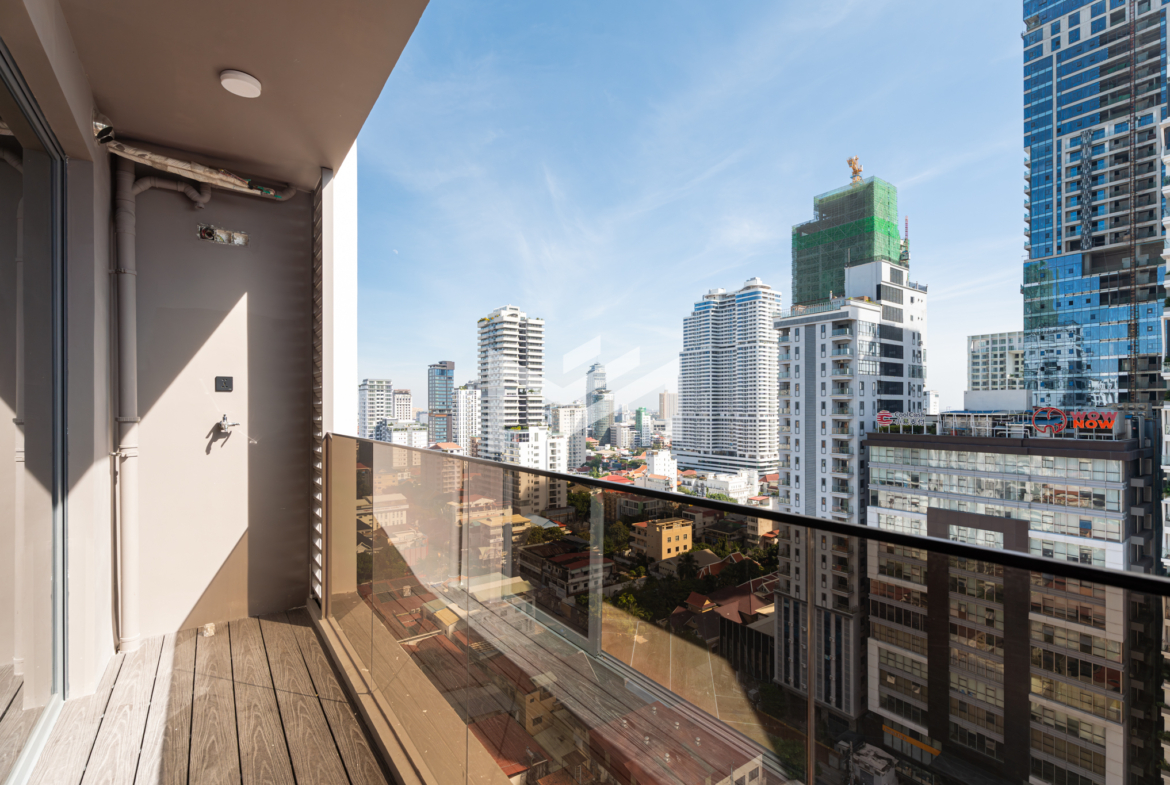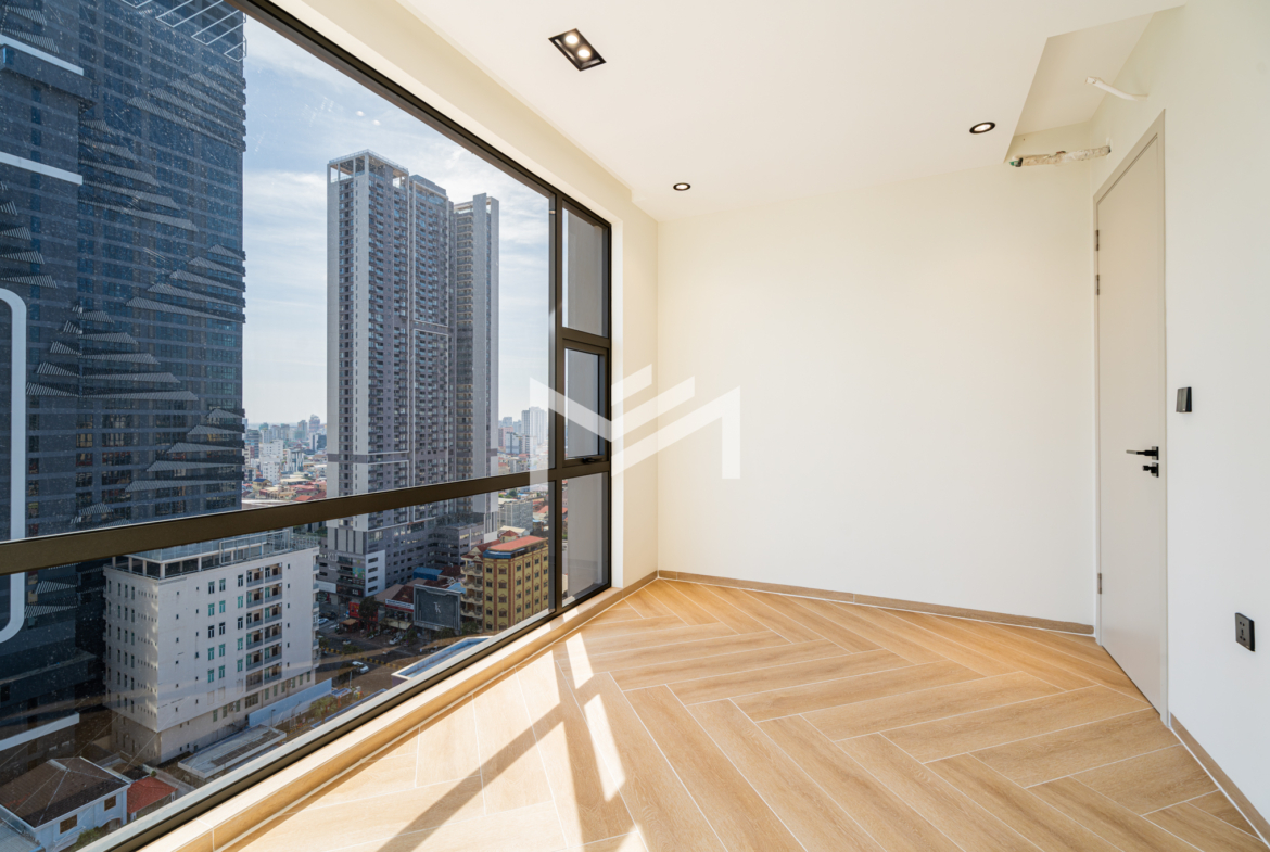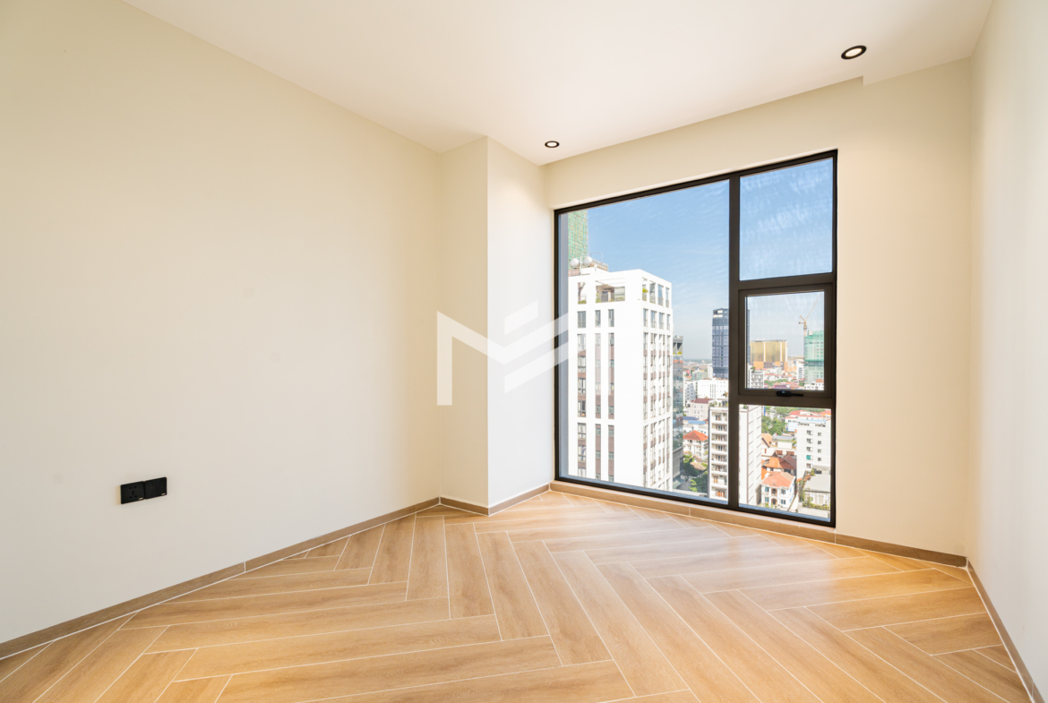 Brand new, freshly handed over and ready for furnishing—perfect for either personal move-in or securing your first tenant. This excellent corner unit faces southeast, offering bright natural light, an open-plan layout, and stylish flooring that makes decorating effortless. The unit includes a good-size kitchen and a clean, modern interior. Residents enjoy premium building facilities including a welcoming lobby with front desk support, ground-floor café, rooftop swimming pool, gym, sky bar, and even a kids’ playground. Strata title included. Located in the heart of BKK1, one of Phnom Penh’s most sought-after expat neighborhoods, surrounded by cafes, restaurants, supermarkets, and essential amenities—all within walking distance.