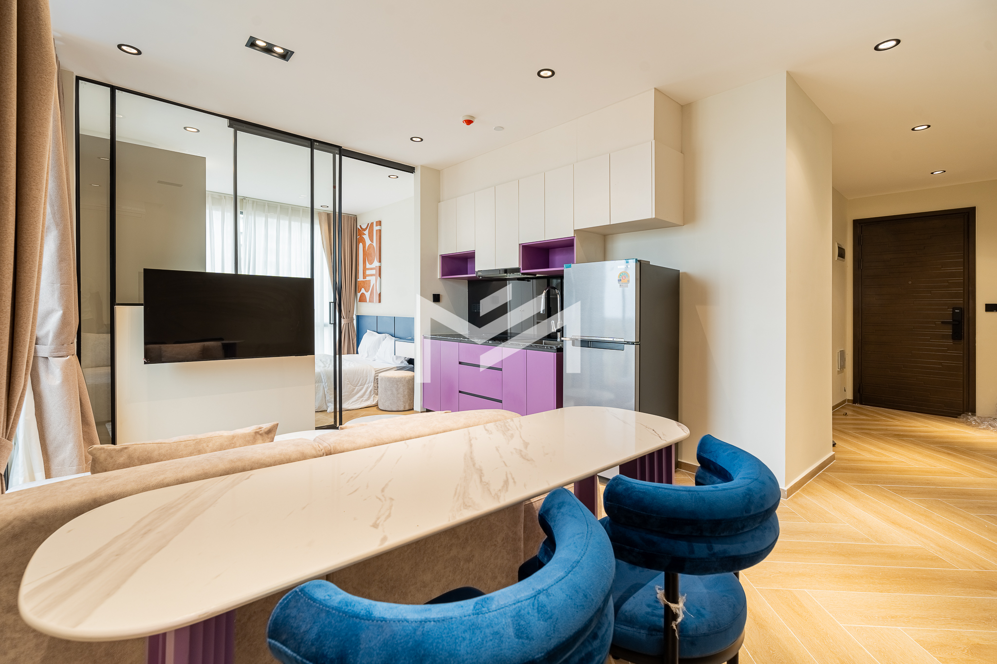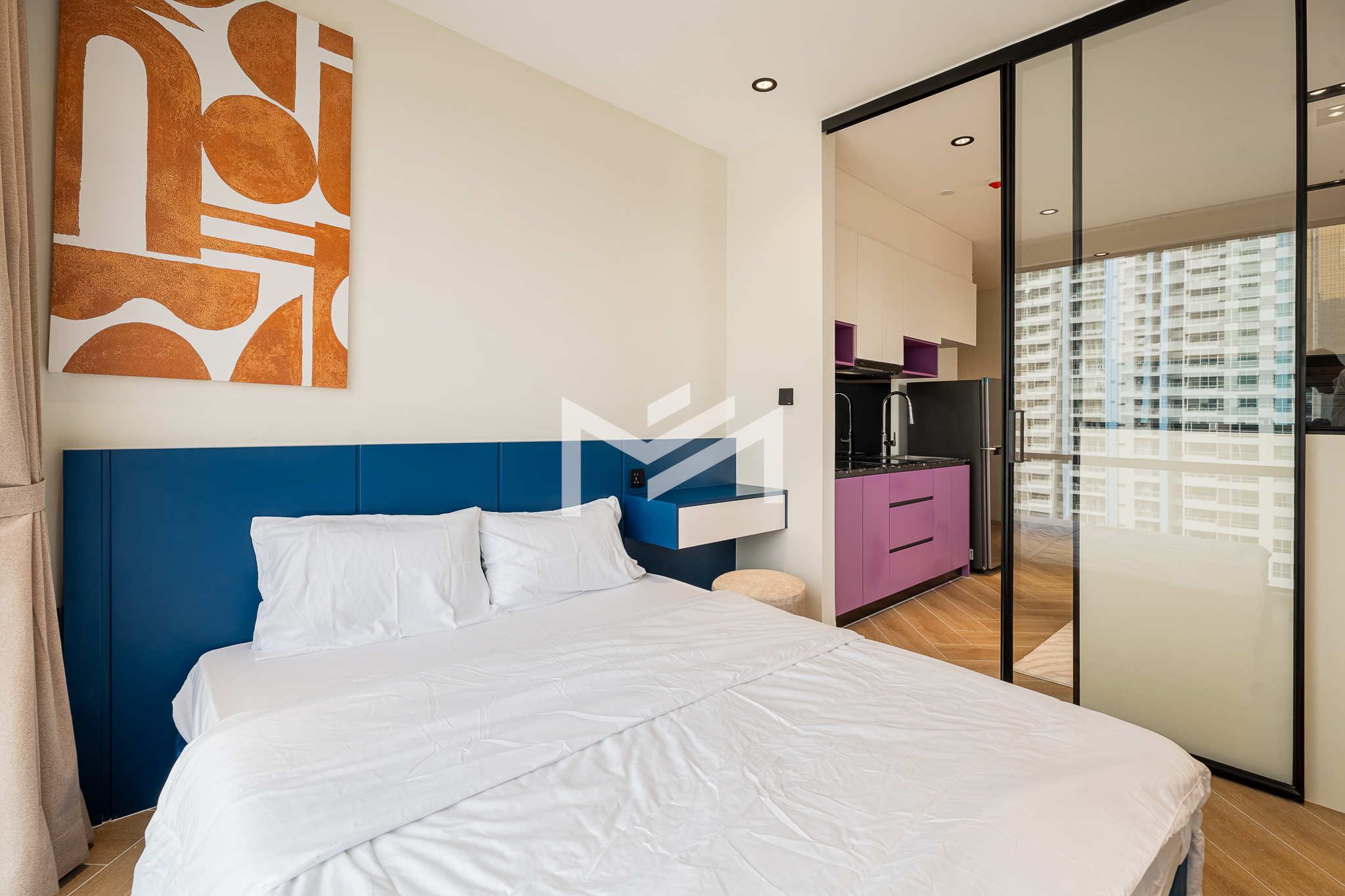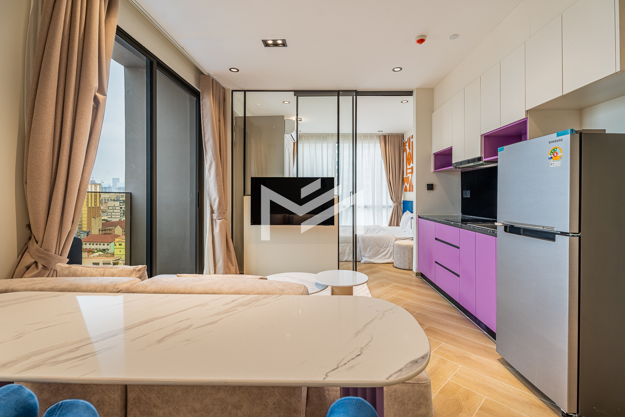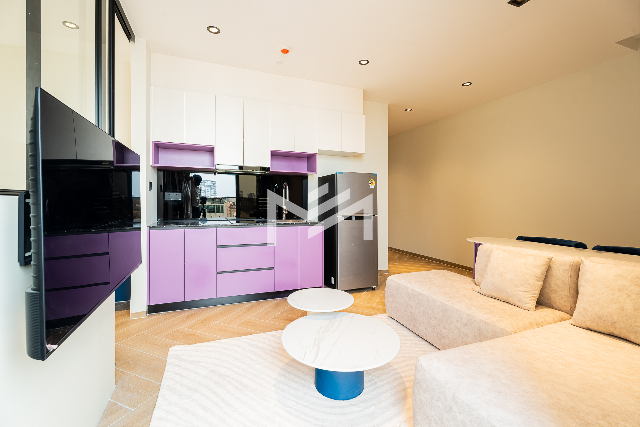 Corner unit, cozy one-bedroom unit filled with gentle evening sun, offering open city views. Thoughtfully designed with brand-new furniture and equipment, the living space opens seamlessly to a private balcony from the living room—perfect for relaxing or enjoying the view. Residents enjoy premium facilities including a welcoming lobby with front desk support, a ground-floor café, rooftop swimming pool, gym, sky bar, and a kids’ playground. Ideally located in the heart of BKK1, one of Phnom Penh’s most sought-after expat neighborhoods, surrounded by cafés, restaurants, supermarkets, and daily conveniences—all within walking distance.
