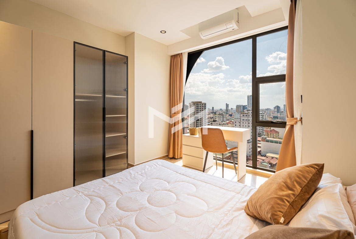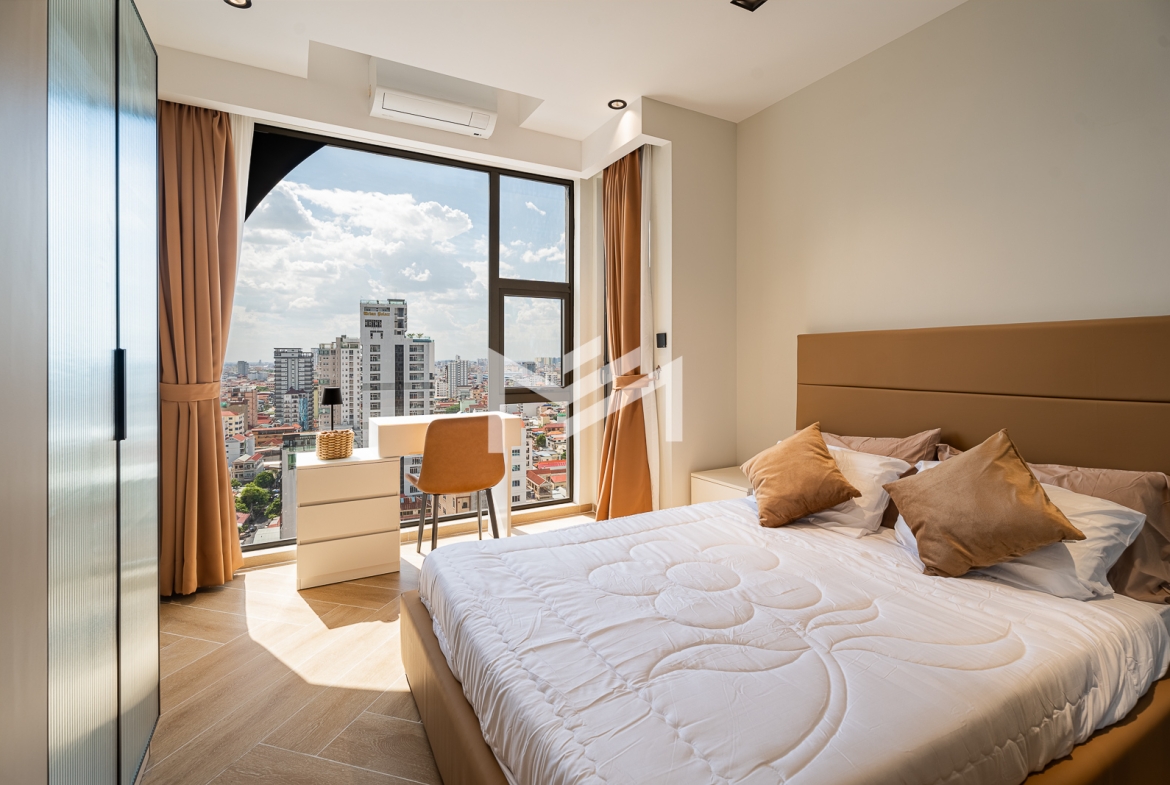 Cozy and fully furnished, this charming residence enjoys a beautiful sunset view and offers a comfortable living experience in the heart of BKK1. Residents benefit from premium facilities, including a welcoming lobby with front desk support, a ground-floor café, rooftop swimming pool, gym, sky bar, and a children’s playground. Ideally situated in one of Phnom Penh’s most sought-after expat neighborhoods, the property is surrounded by cafés, restaurants, supermarkets, and everyday conveniences, all within walking distance.
