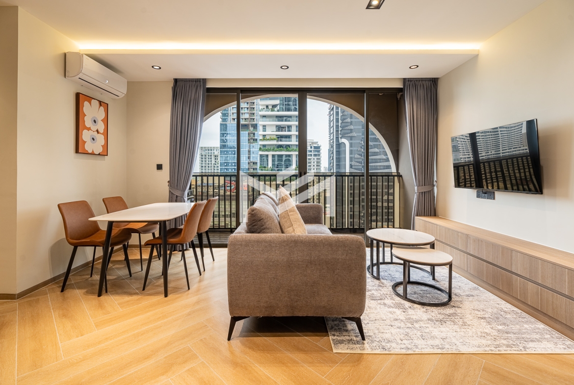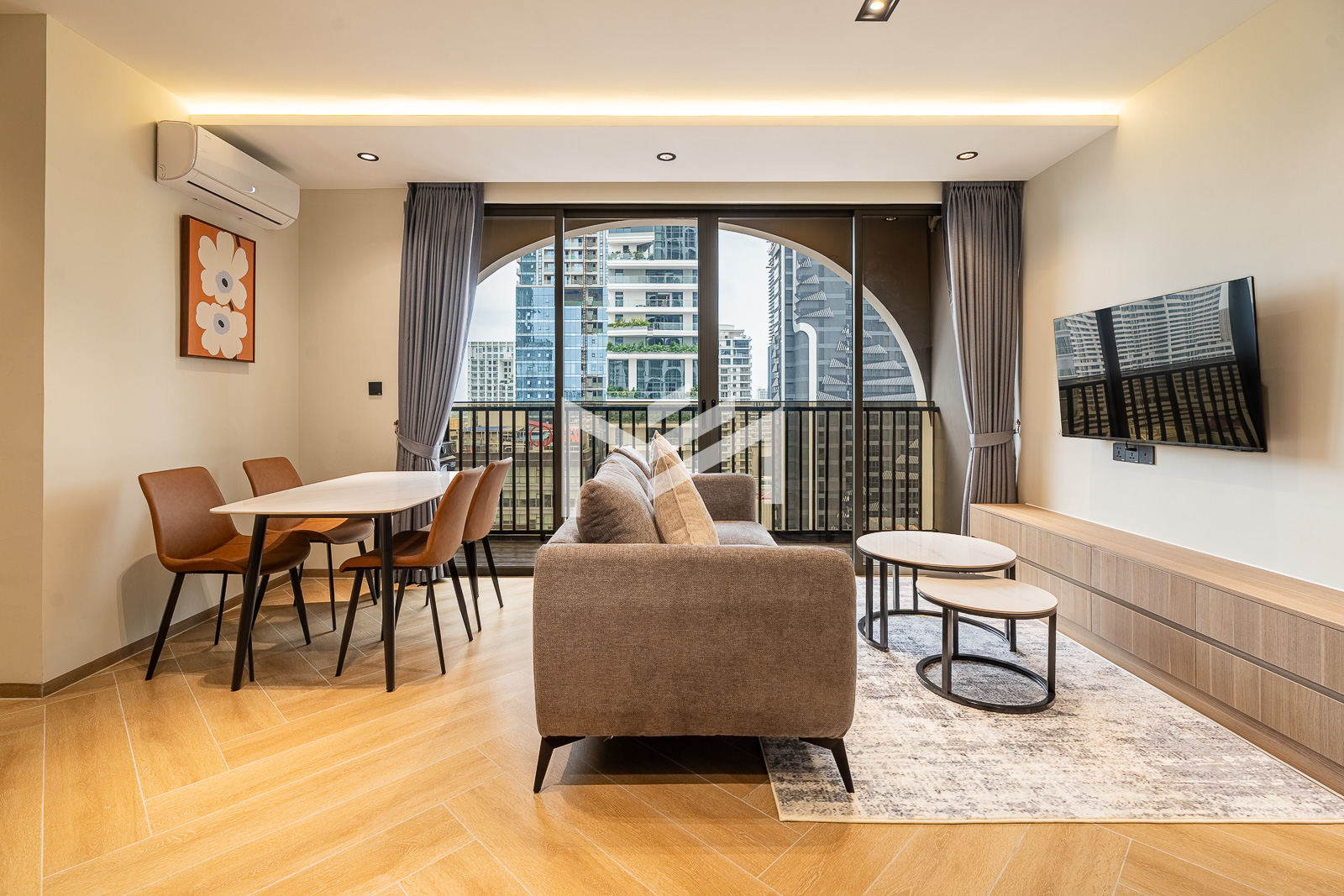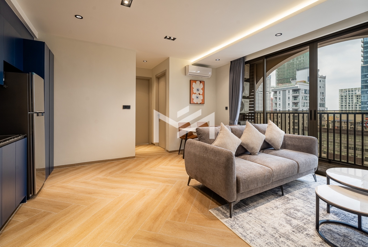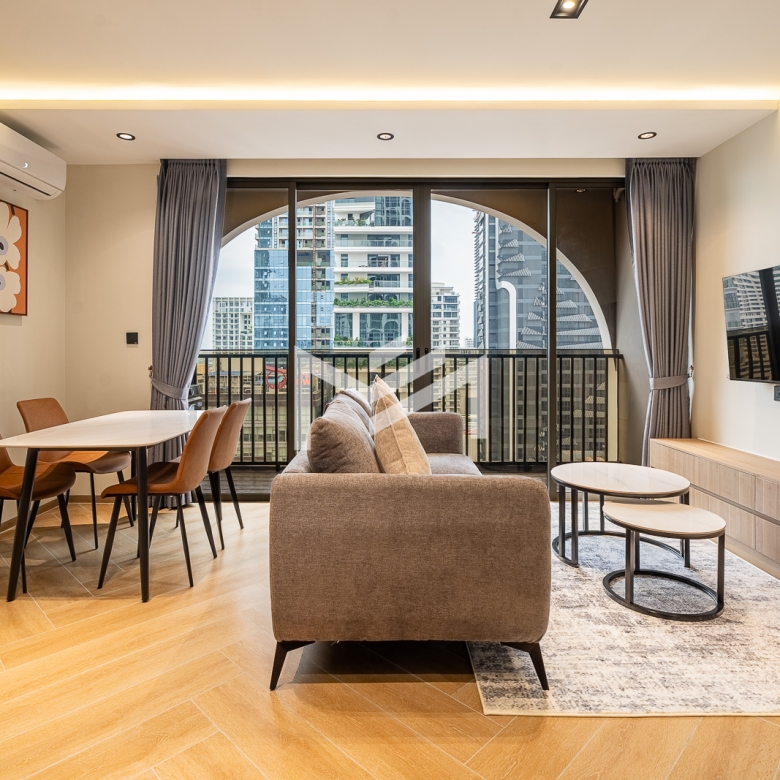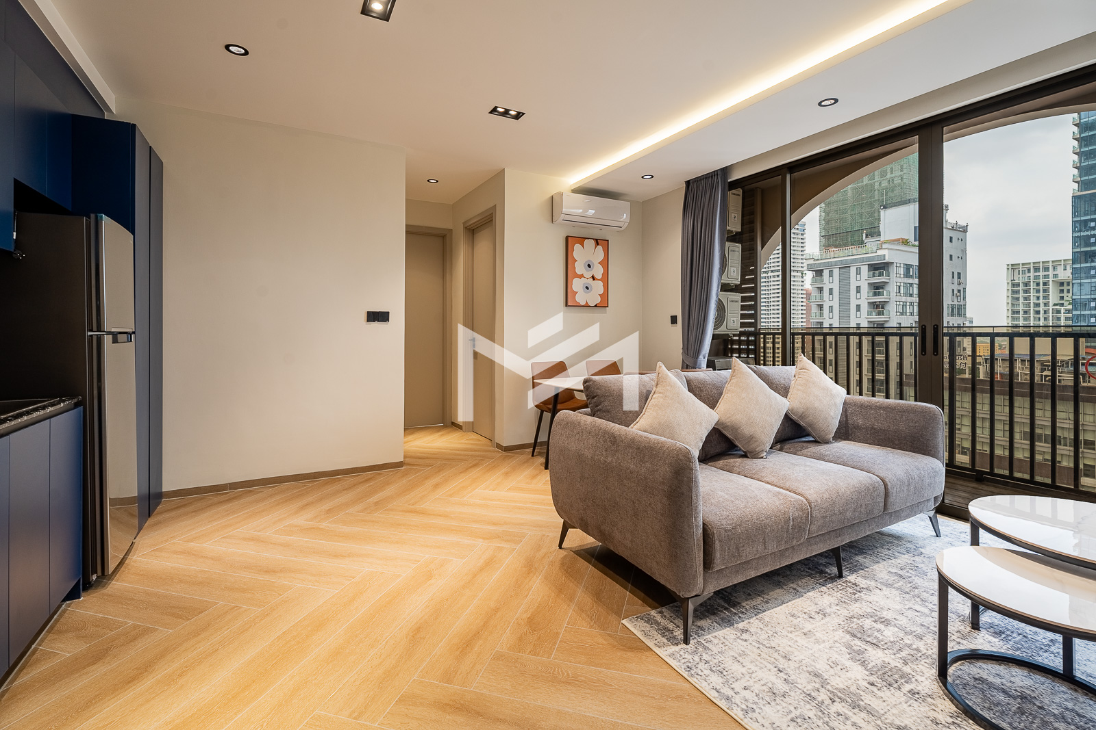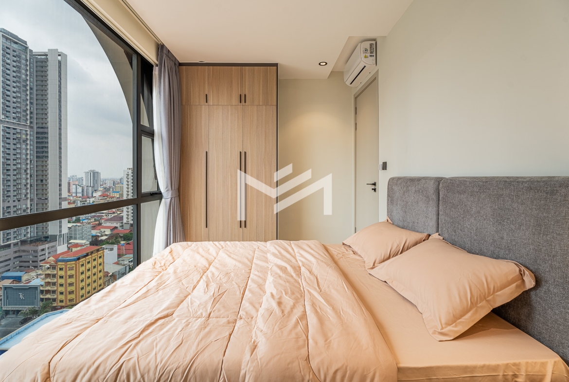 This corner unit is thoughtfully designed and furnished with brand-new furniture, creating a cozy and welcoming atmosphere. Ready to move in, the layout maximizes space and comfort while allowing plenty of natural light to flow throughout. With gentle morning sun and beautiful city views, the unit offers a bright and refreshing living environment, making it an excellent choice for living. Residents benefit from premium facilities including a welcoming lobby with front desk support, a ground-floor café, rooftop swimming pool, gym, sky bar, and a children’s playground. Ideally located in the heart of BKK1, one of Phnom Penh’s most sought-after expat neighborhoods, the property is surrounded by cafés, restaurants, supermarkets, and daily conveniences all within walking distance.