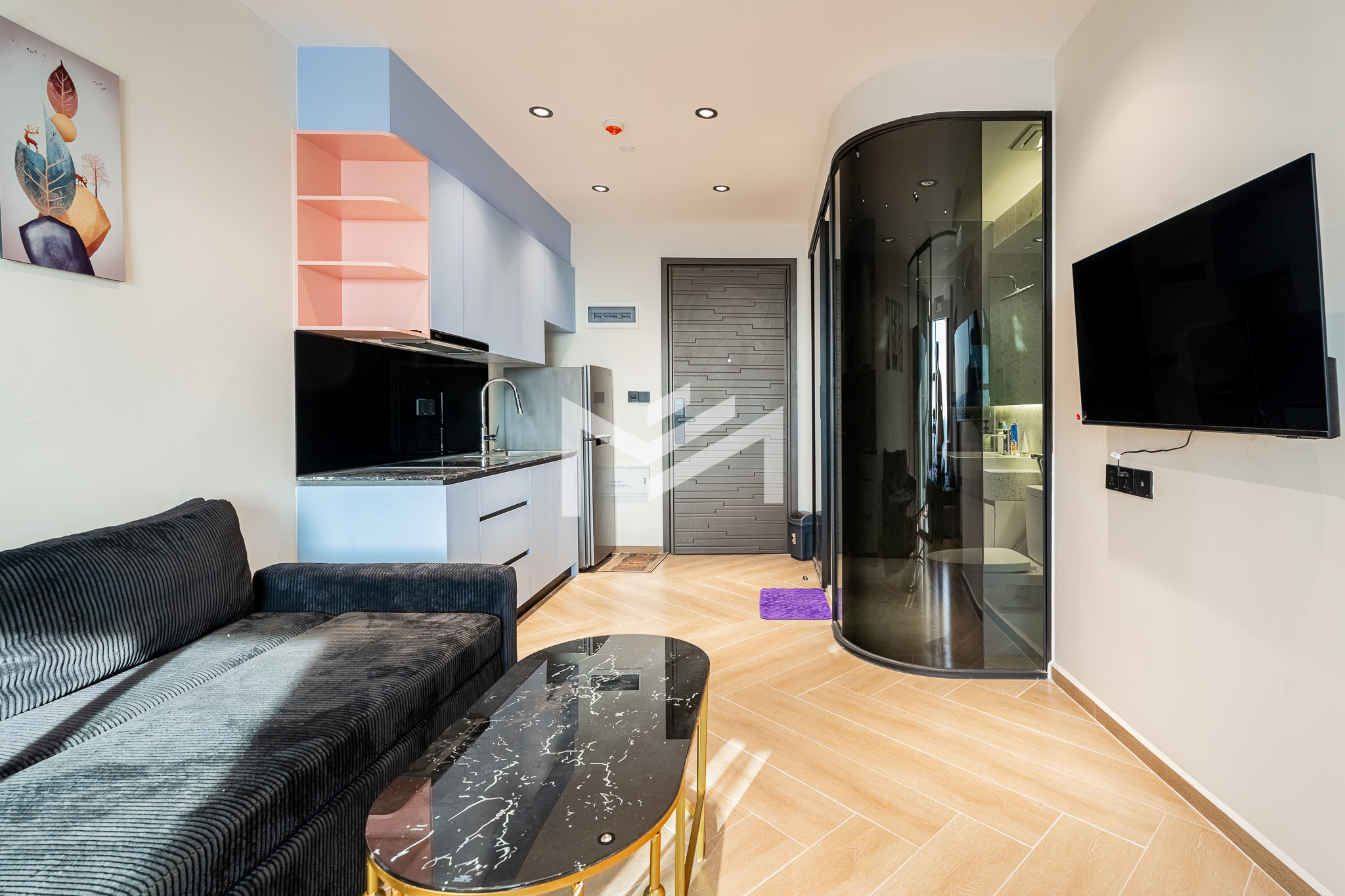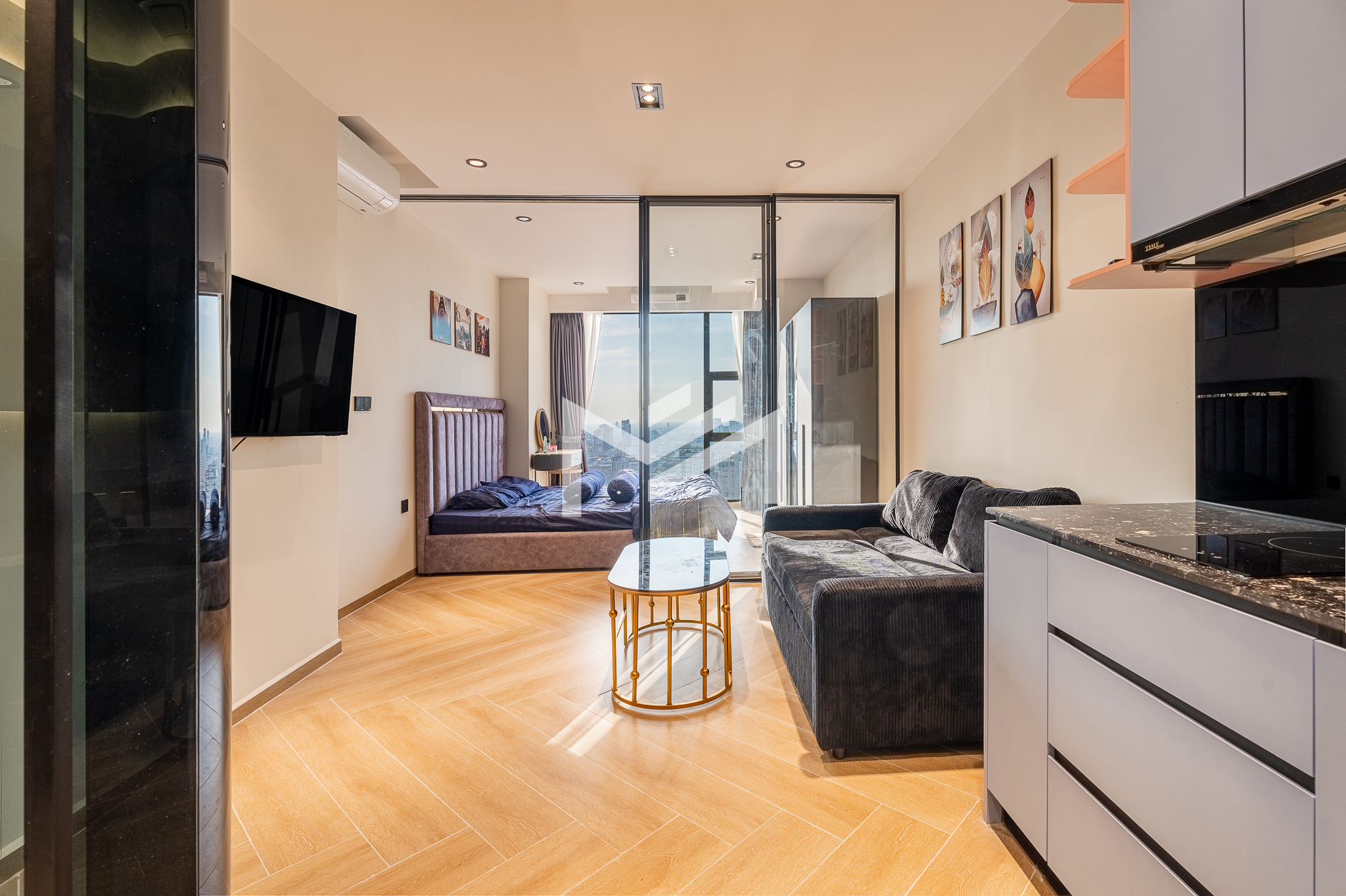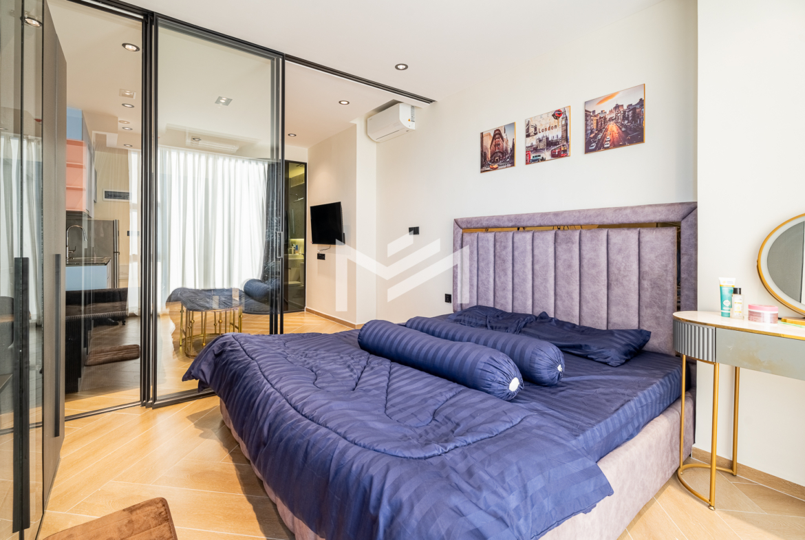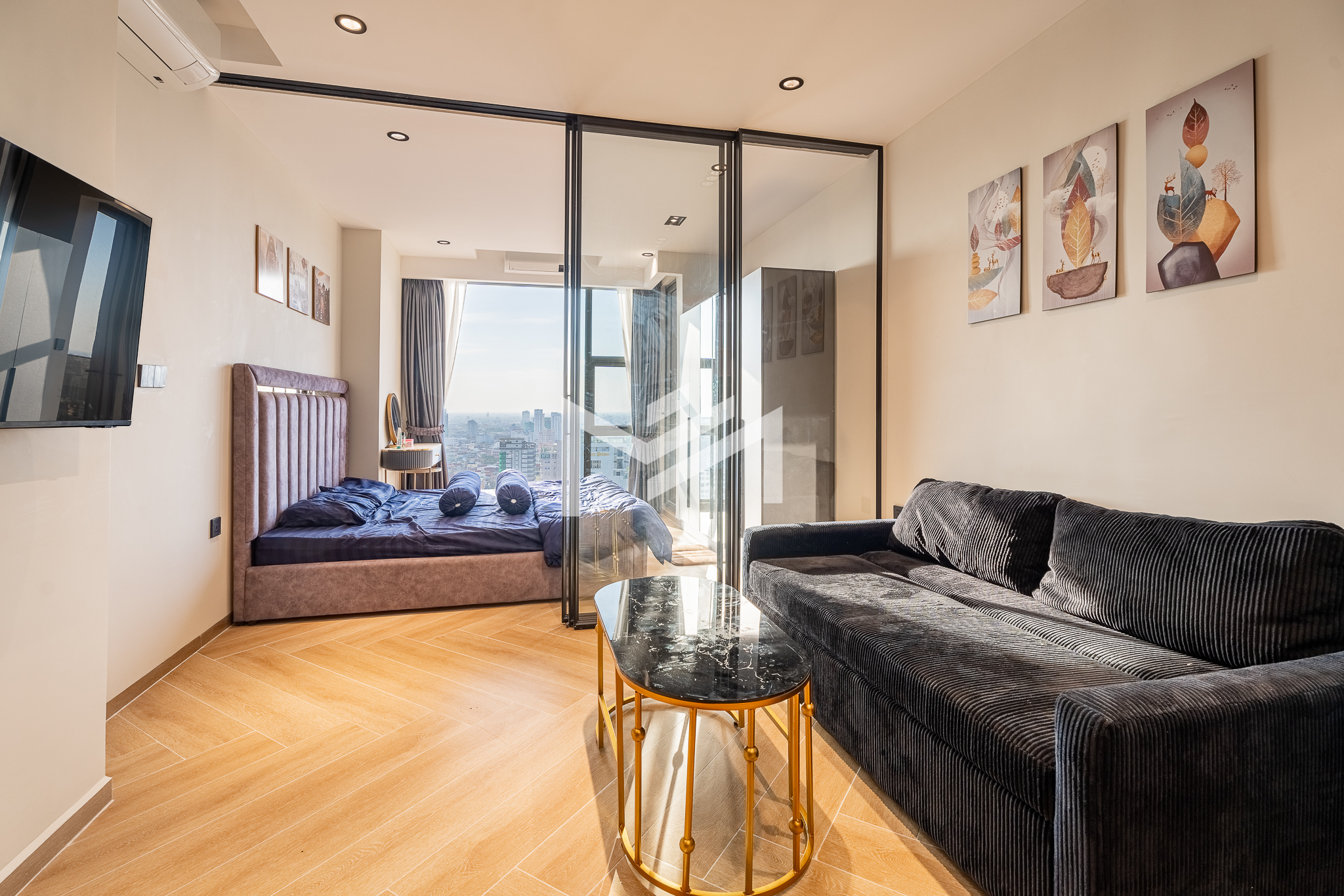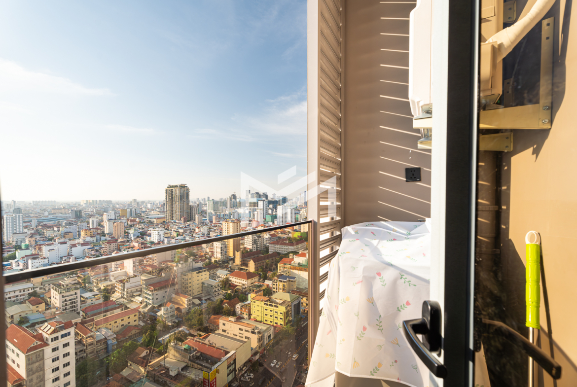 Brand new and freshly handed over, this unit is ready for move in. A cozy studio-size layout that is smartly designed with a glass wall to define a comfortable one-bedroom space, making it easy and cost-effective to fit out while maintaining a bright, modern feel. Residents enjoy premium building facilities including a welcoming lobby with front desk support, ground-floor café, rooftop swimming pool, gym, sky bar, and a kids’ playground. Strata title included. Perfectly located in the heart of BKK1, one of Phnom Penh’s most sought-after expat neighborhoods, surrounded by cafés, restaurants, supermarkets, and daily conveniences—all within walking distance.