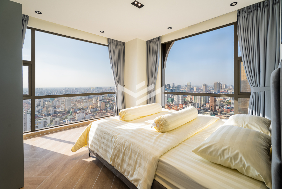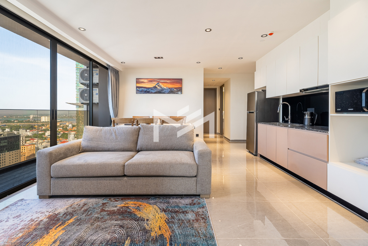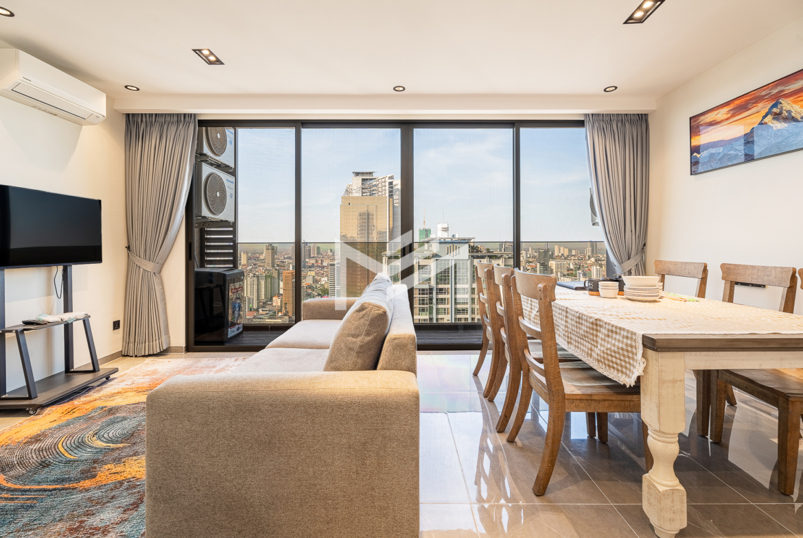 Well-designed corner unit with Northwest orientation, offering the rare advantage of both sunrise and sunset views along with excellent panoramic city views. The unit is fully furnished with brand-new, high-quality furniture and features a spacious living room that feels bright and airy throughout the day. The well-equipped modern kitchen is fitted with quality appliances, ideal for comfortable daily living. Located in a brand-new premium building, residents enjoy top-tier facilities, including a rooftop gym, swimming pool, sky bar, children’s playground, and an on-site café. Situated in expat-friendly BKK1, with convenient access to international restaurants, cafés, offices, and lifestyle amenities—making it an ideal home for professionals and families alike.
