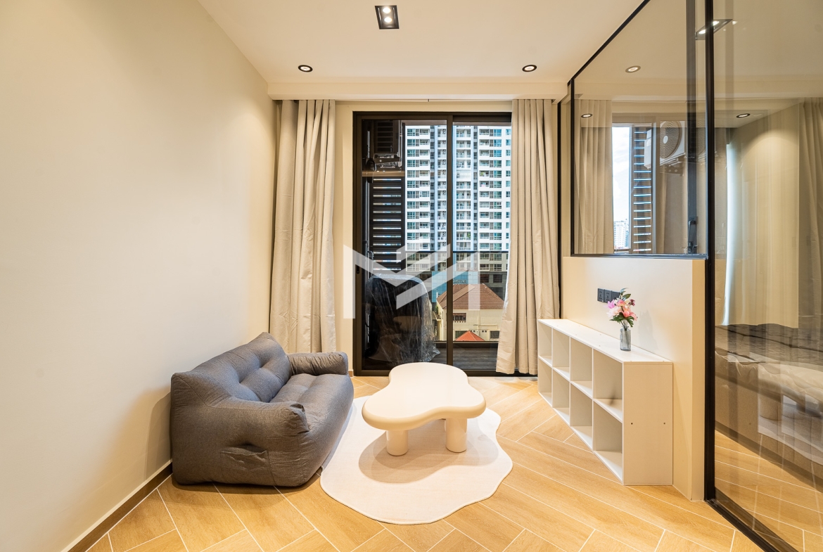 This well-designed unit features a desirable north-facing orientation and comes fully furnished with brand-new, high-quality furniture. The layout creates a cozy yet bright and airy atmosphere throughout the day, offering both comfort and practicality for modern living. Located in a brand-new premium building, residents can enjoy top-tier facilities including a rooftop gym, swimming pool, sky bar, children’s playground, and an on-site café. Situated in the expat-friendly BKK1 area, the property provides excellent access to international restaurants, cafés, offices, and lifestyle amenities, making it an ideal home for both single or couple.